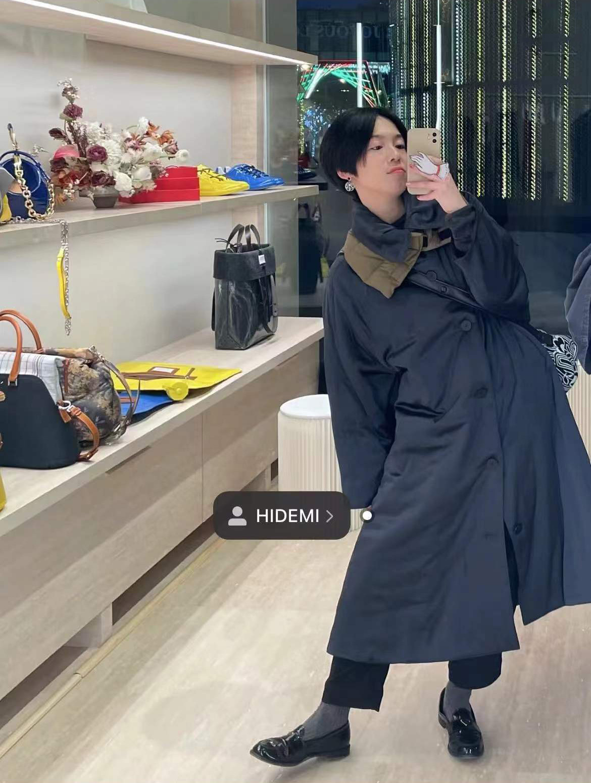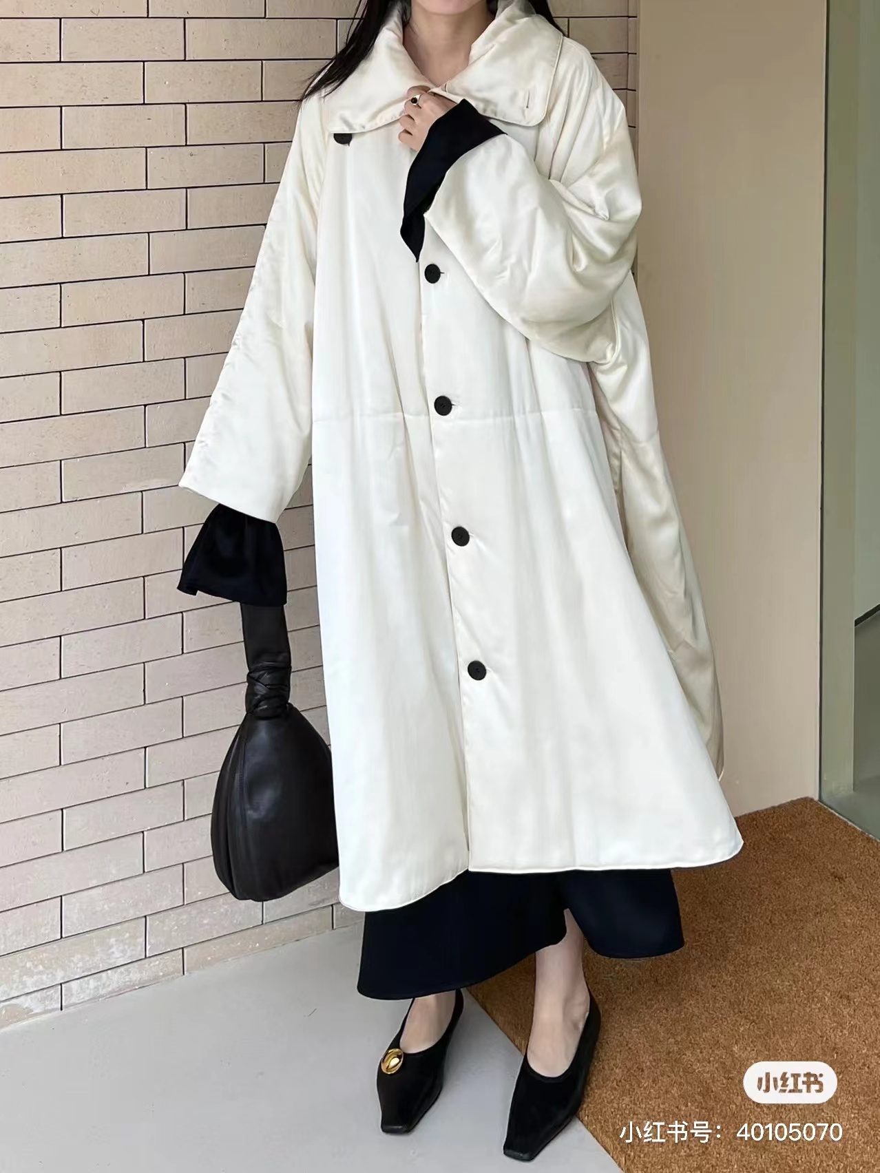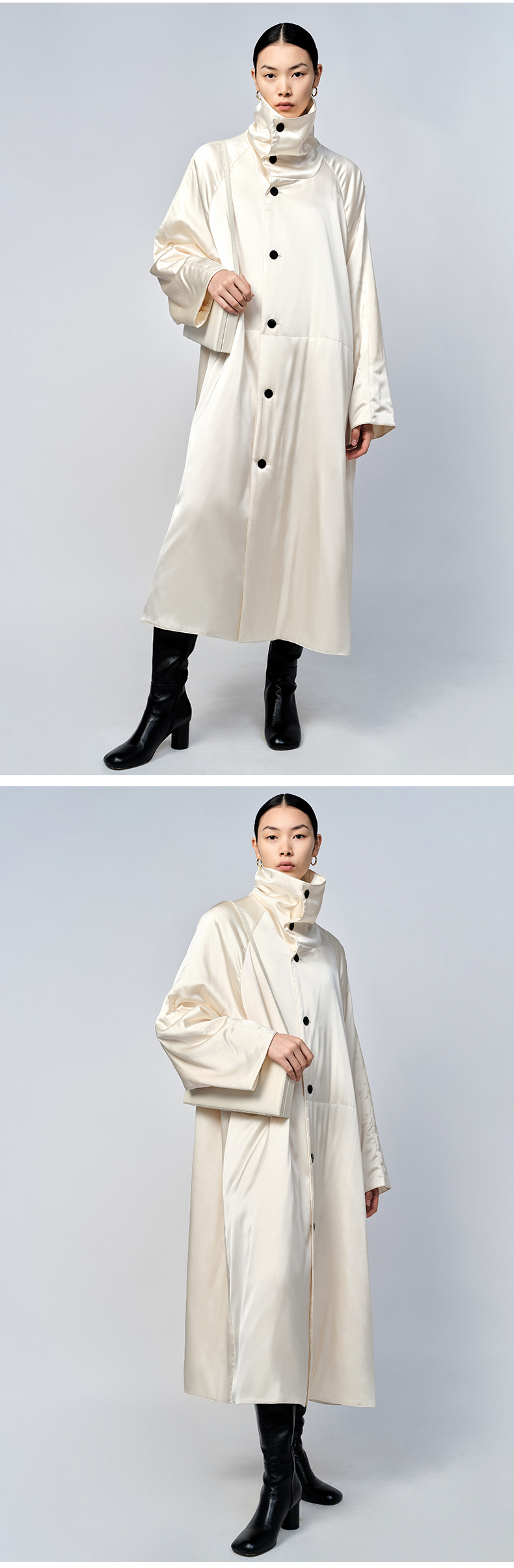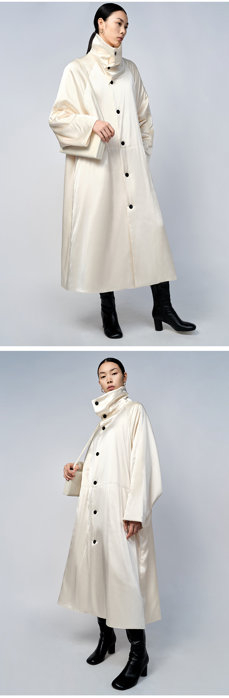 HIDEMI 行走的空气被 醋酸系列设计感长款棉服大衣 深海蓝/奶昔白