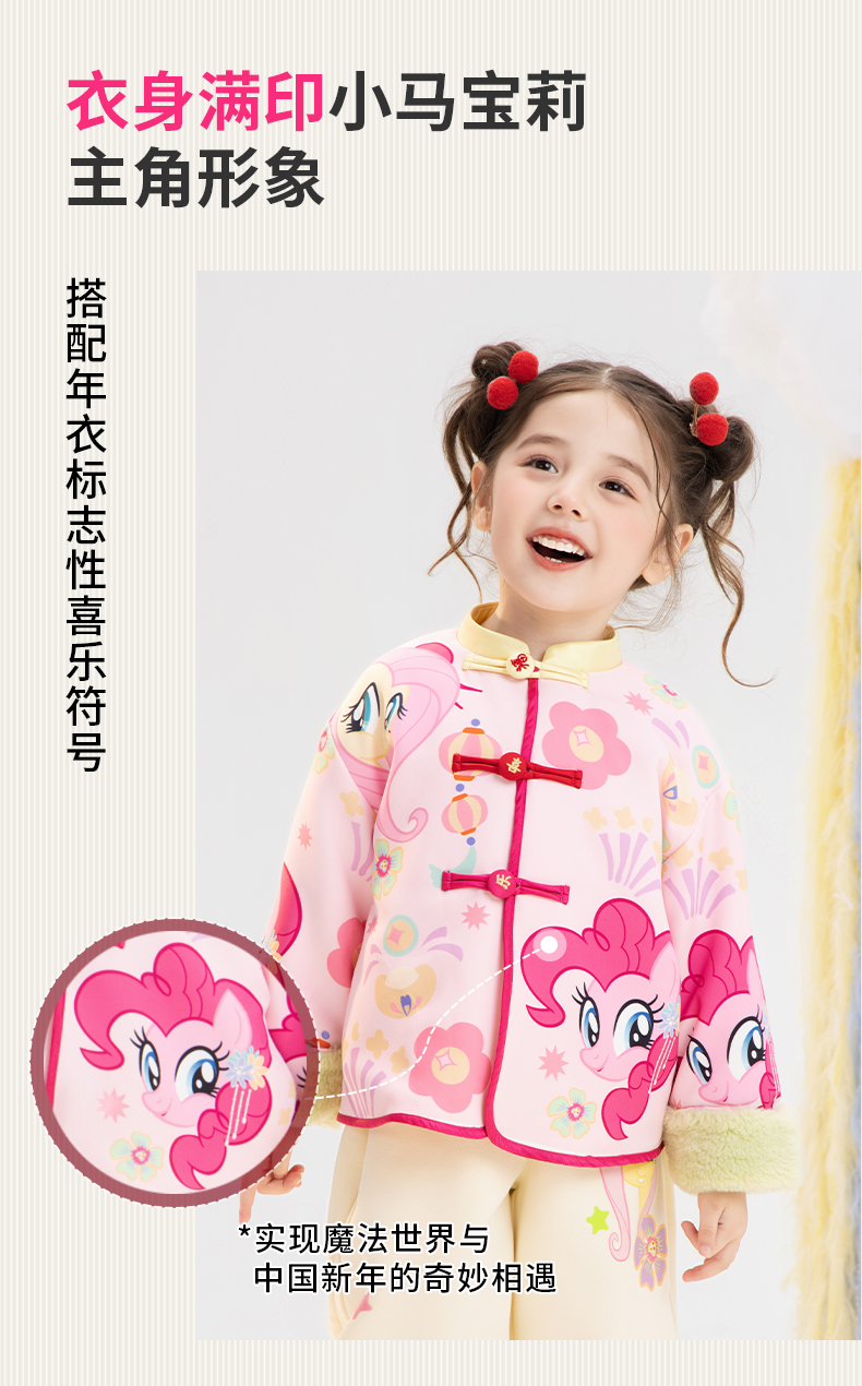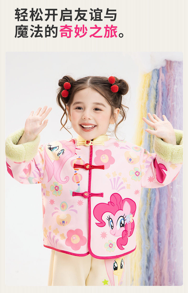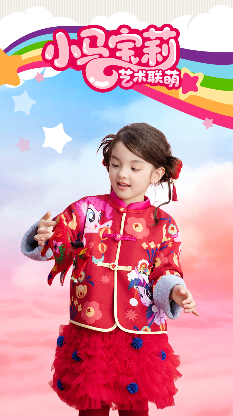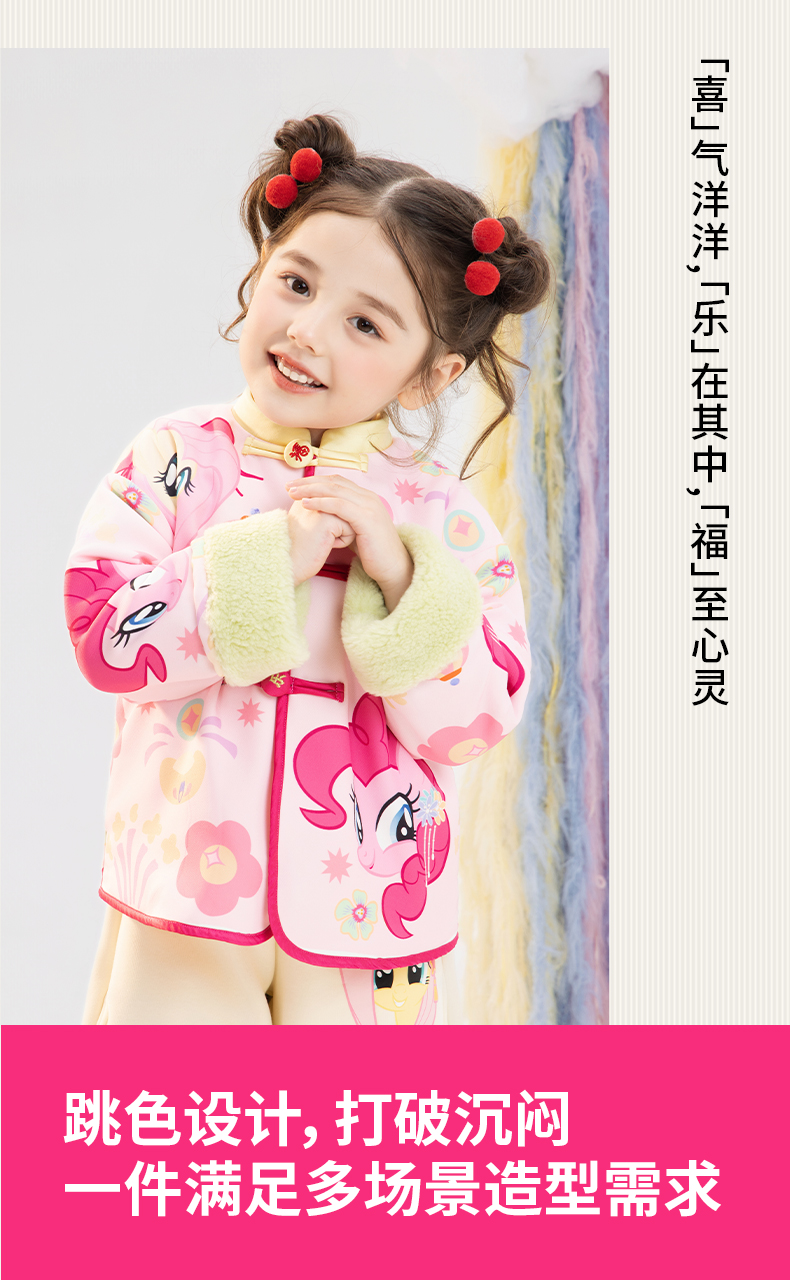 小马宝莉联名年衣童装唐装冬季新款女童卡通小马宝莉撞色满印唐装