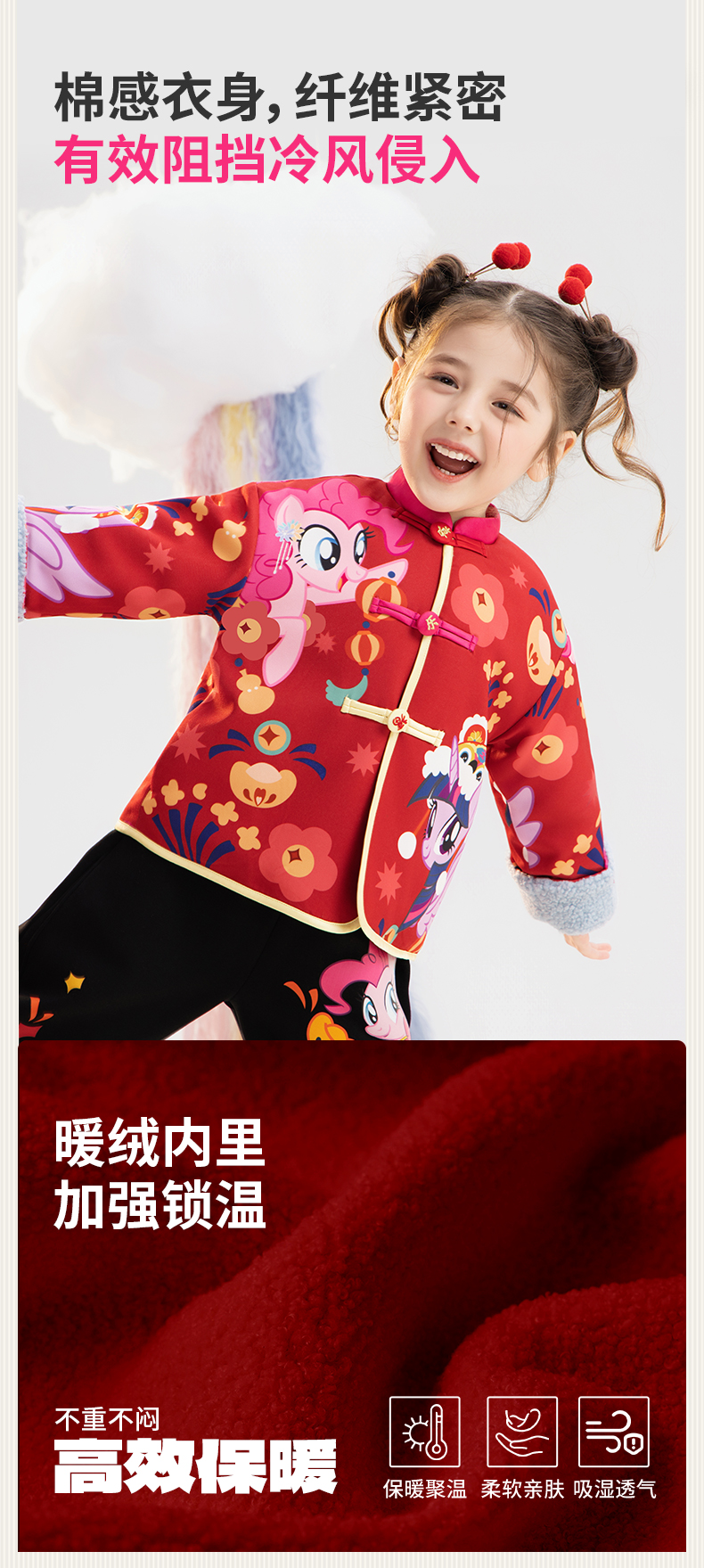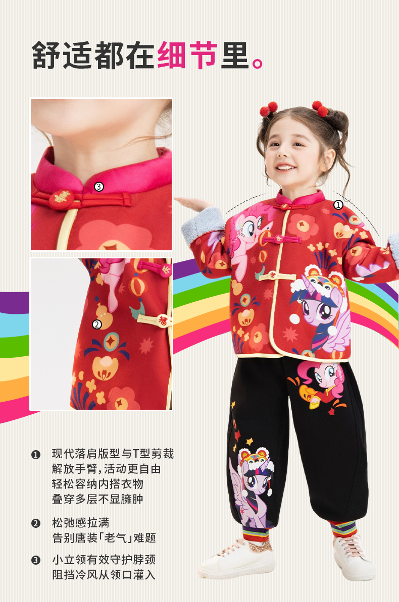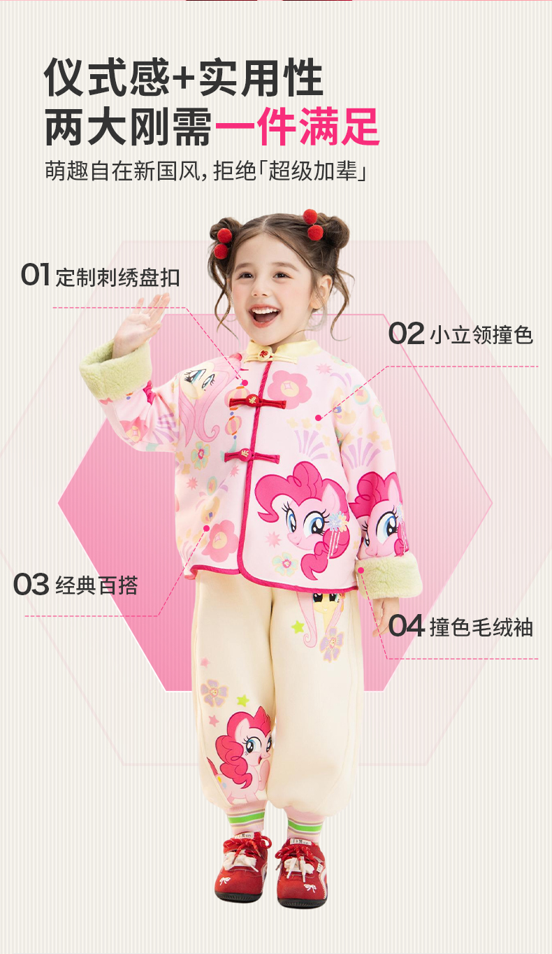 小马宝莉联名年衣童装唐装冬季新款女童卡通小马宝莉撞色满印唐装