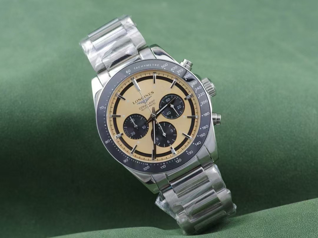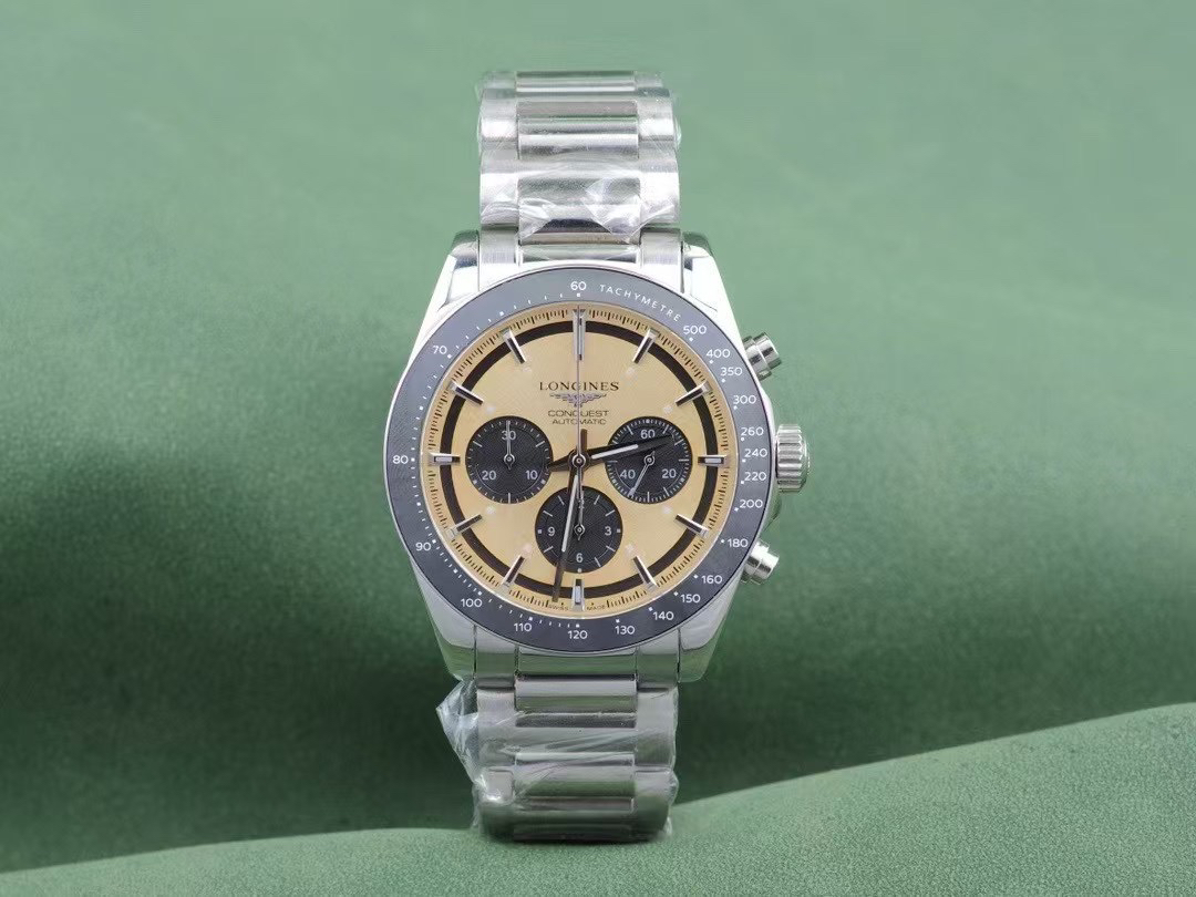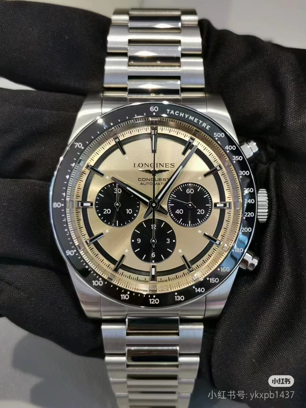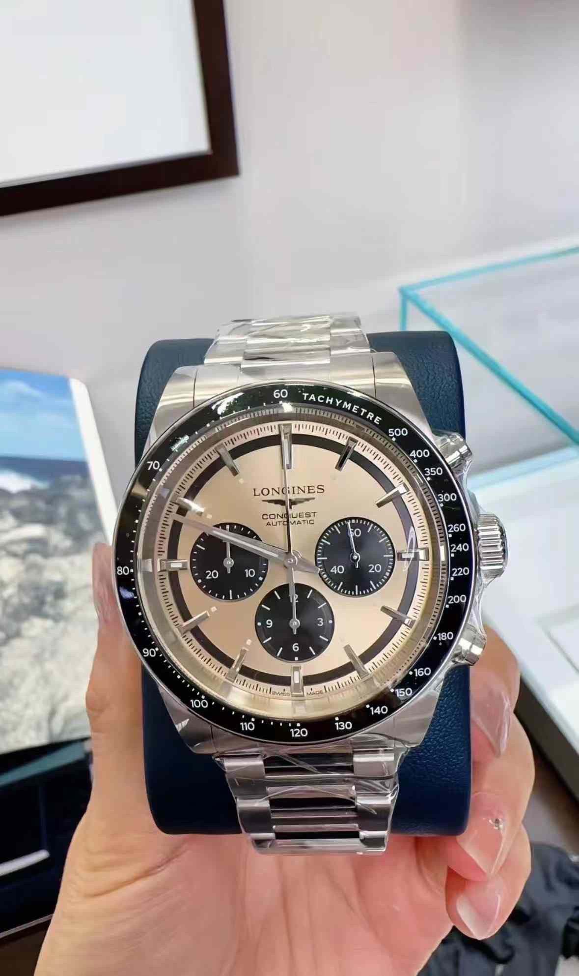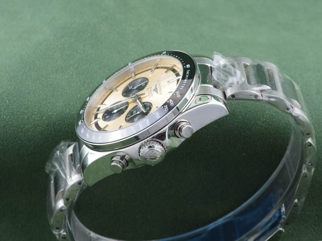 浪琴运动系列L3.835.4.32.6腕表2024新款浪琴康卡斯系列悦动计时腕表42毫米表径 厚度15.1毫米 正品为14.3毫米精钢材质 陶瓷全口香槟色盘面,搭配正品一致的定制版一体机芯进口316❕
