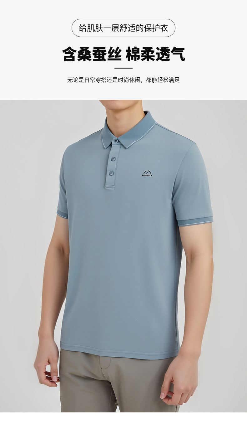 圣得西撞色翻领polo衫男2025春季新款亲肤柔软纯色易搭长袖t恤