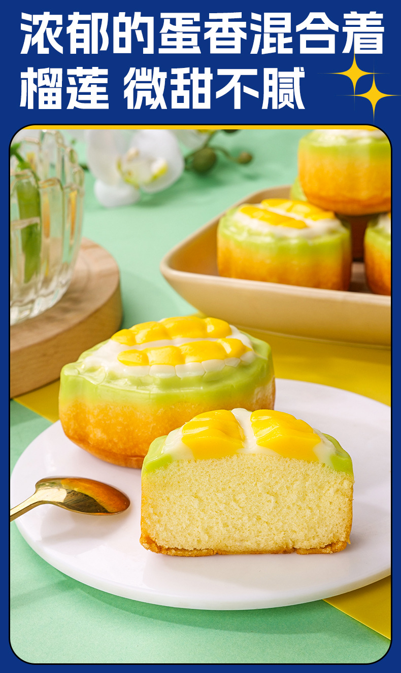 【浓郁榴莲香!榴莲布丁蛋糕】一口就爱上的榴莲蛋糕,松软绵密 Q弹香甜,浓郁的蛋香混合着榴莲 微甜不腻,西式饱腹美味早餐Y