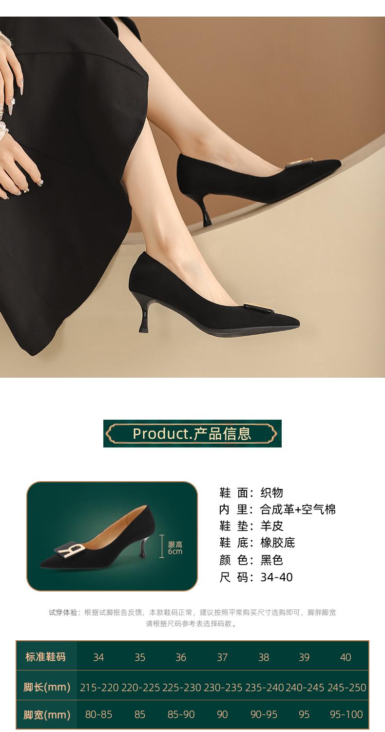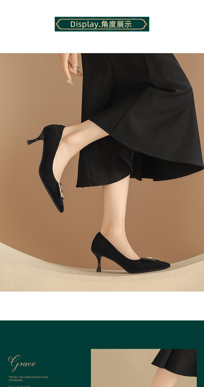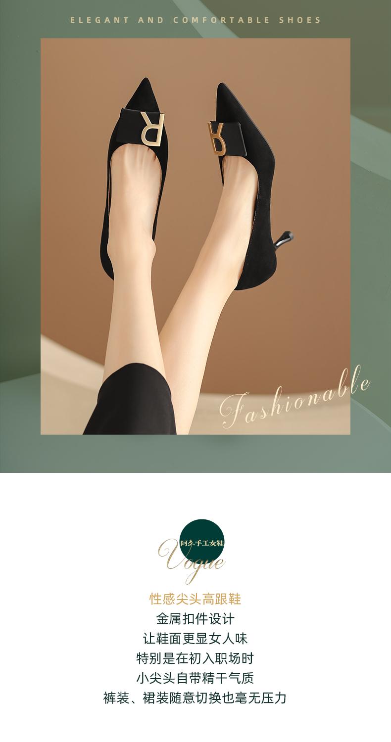 阿么手工女鞋一脚蹬法式金属扣单鞋女舒适职业新款气质高跟鞋6CM