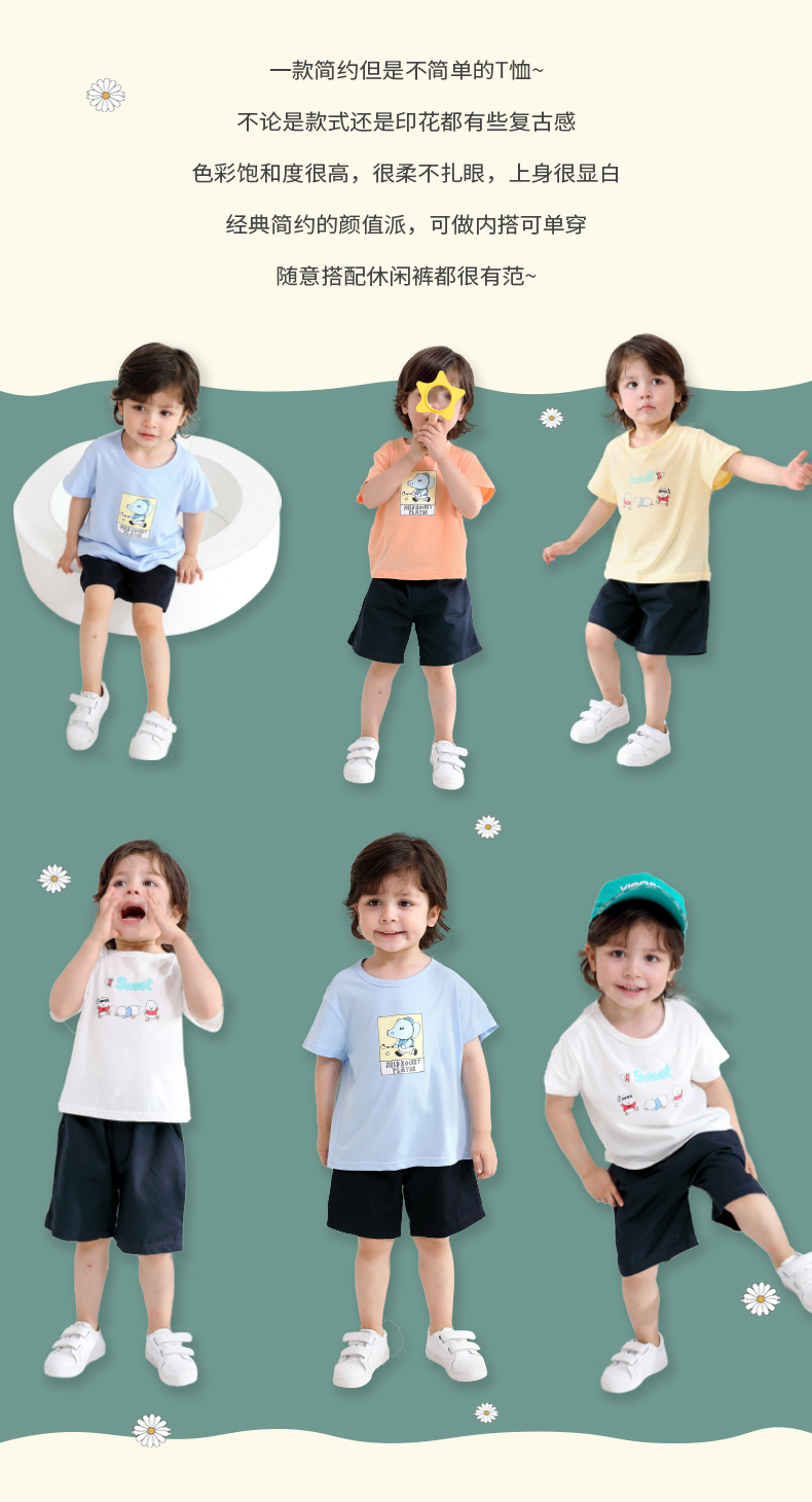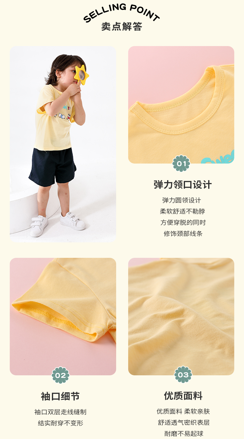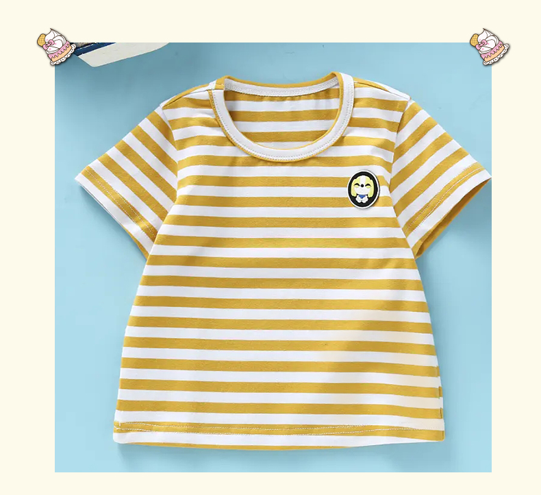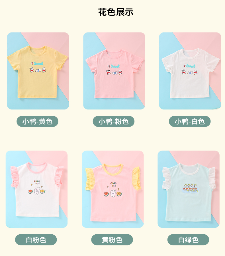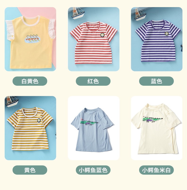 龙之涵中小童全棉印花短袖T恤 荷叶袖T恤 条纹T恤 短裤裙