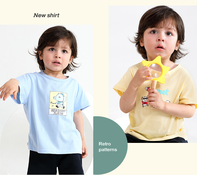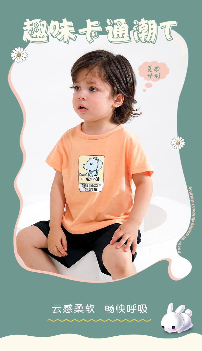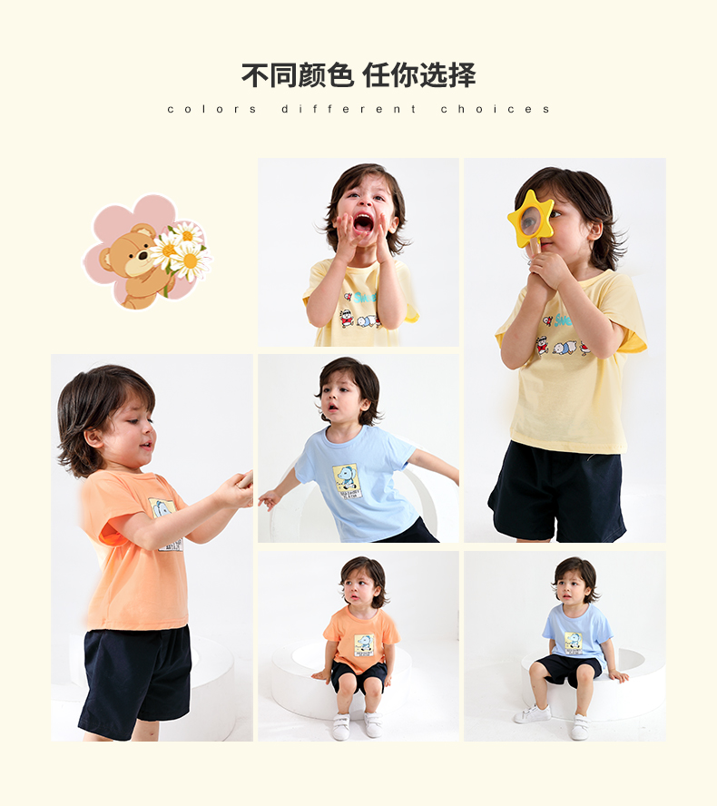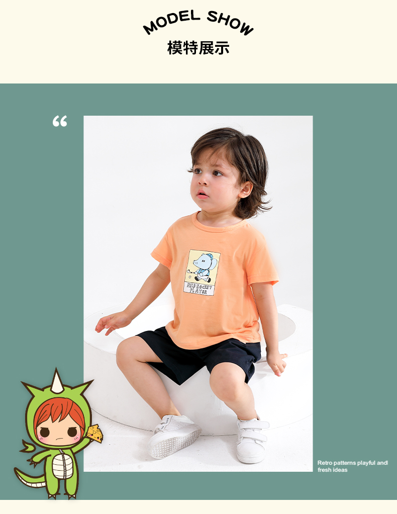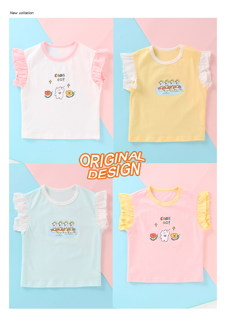 龙之涵中小童全棉印花短袖T恤 荷叶袖T恤 条纹T恤 短裤裙