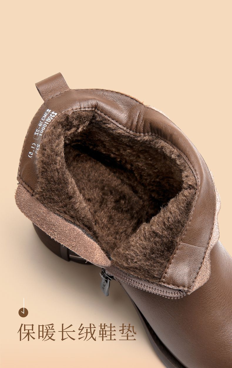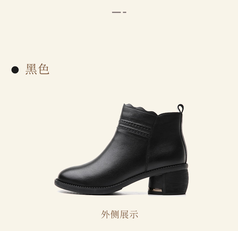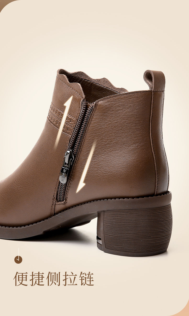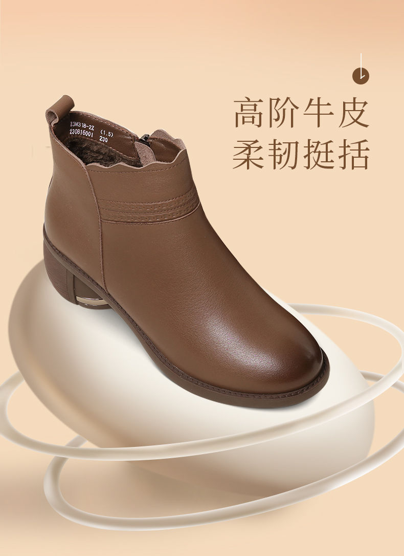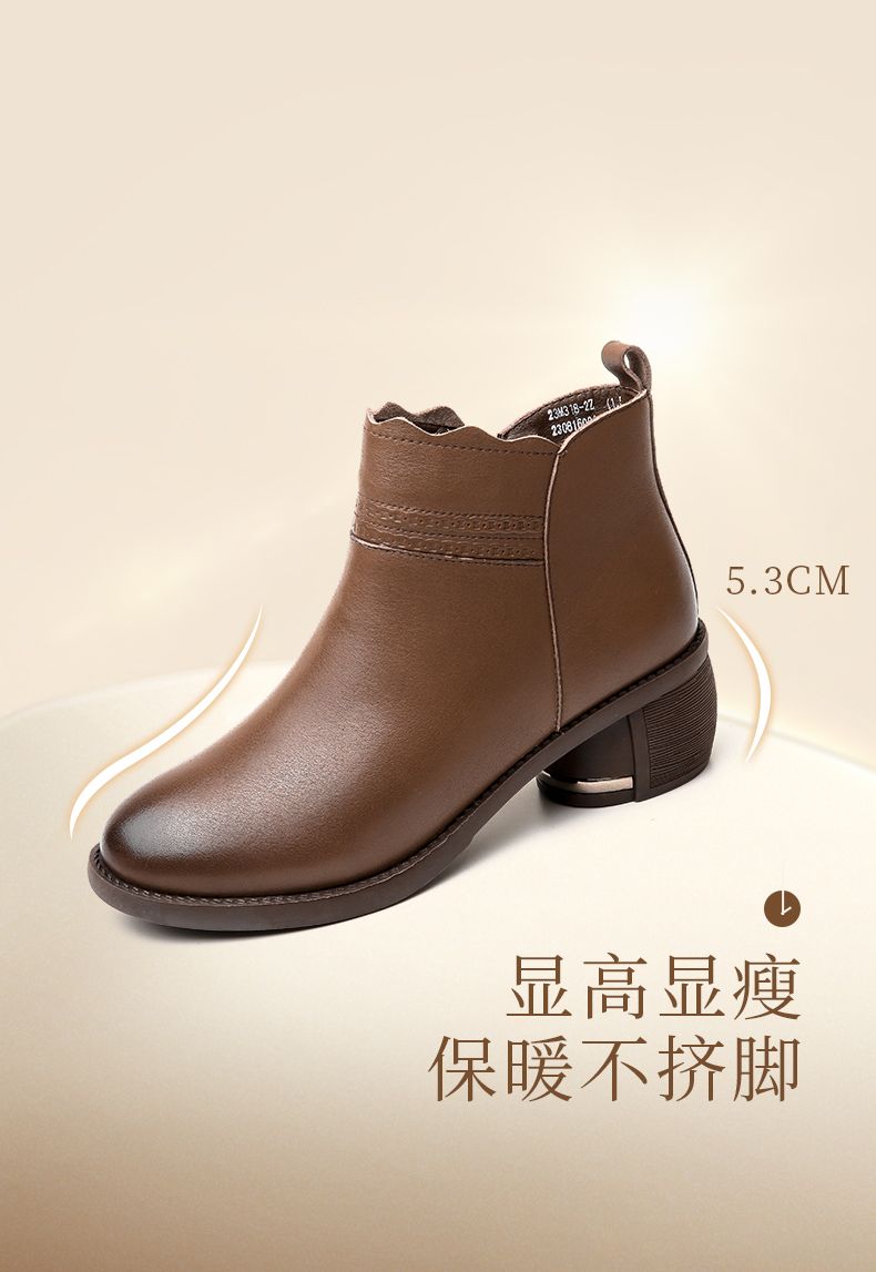 真皮粗跟短靴2023新款冬季女鞋中跟中年妈妈棉鞋软底加绒保暖皮鞋23M318-2Z
