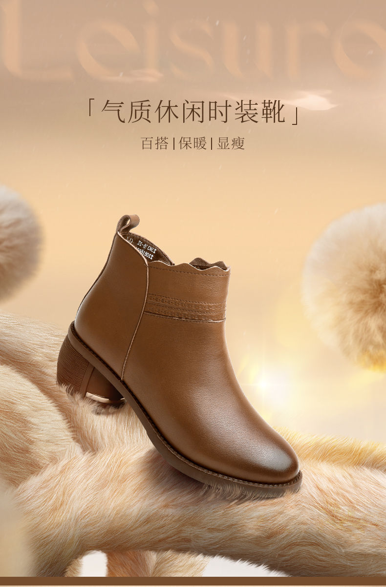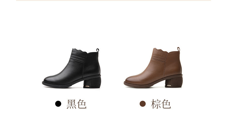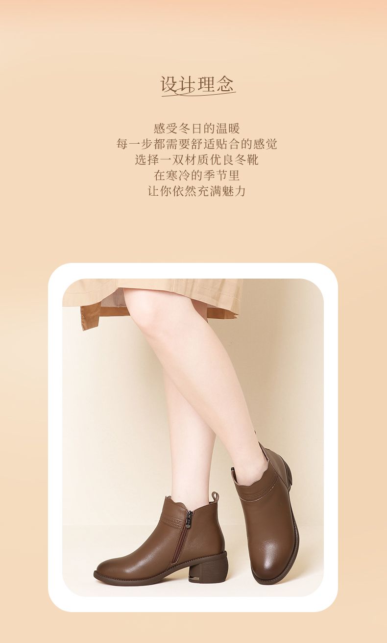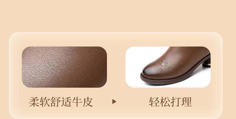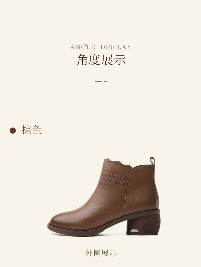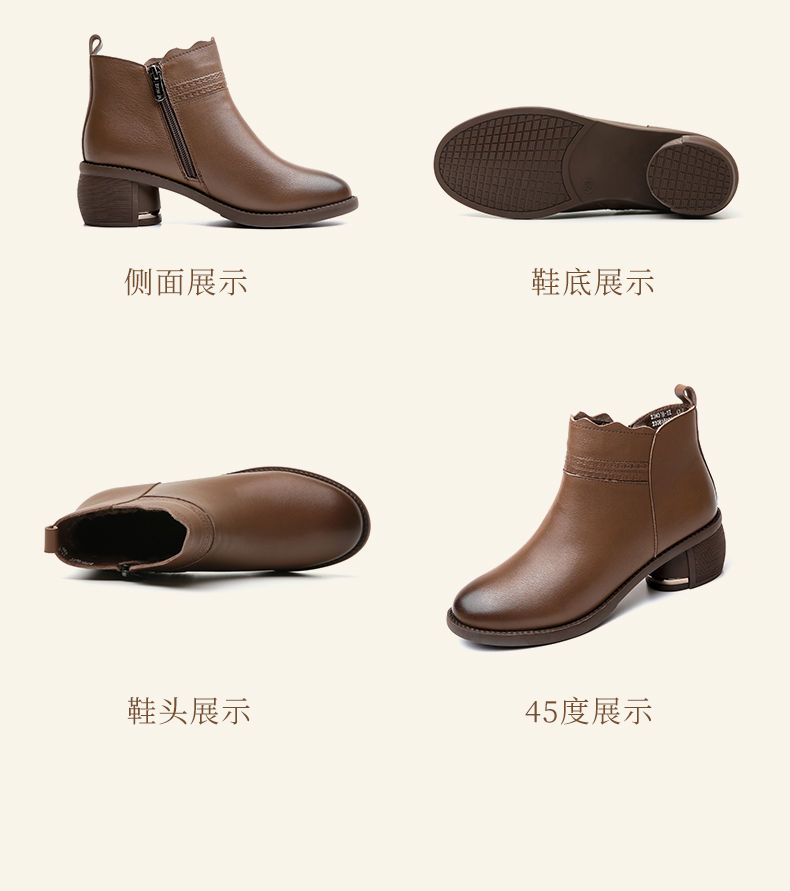 真皮粗跟短靴2023新款冬季女鞋中跟中年妈妈棉鞋软底加绒保暖皮鞋23M318-2Z