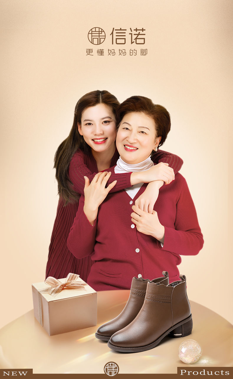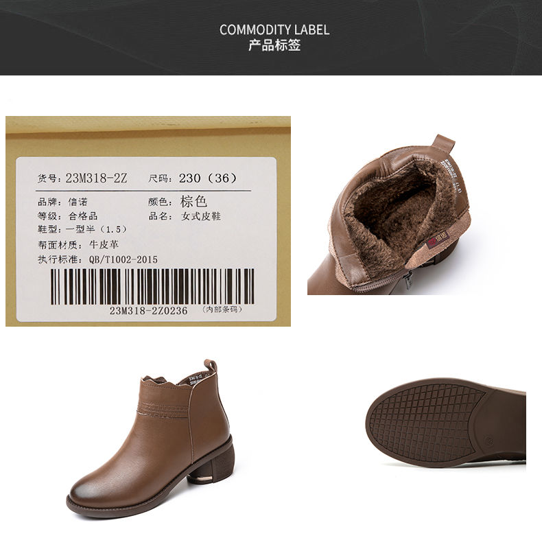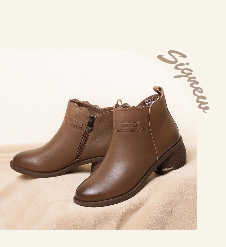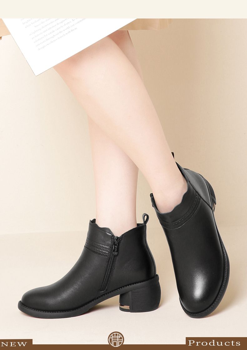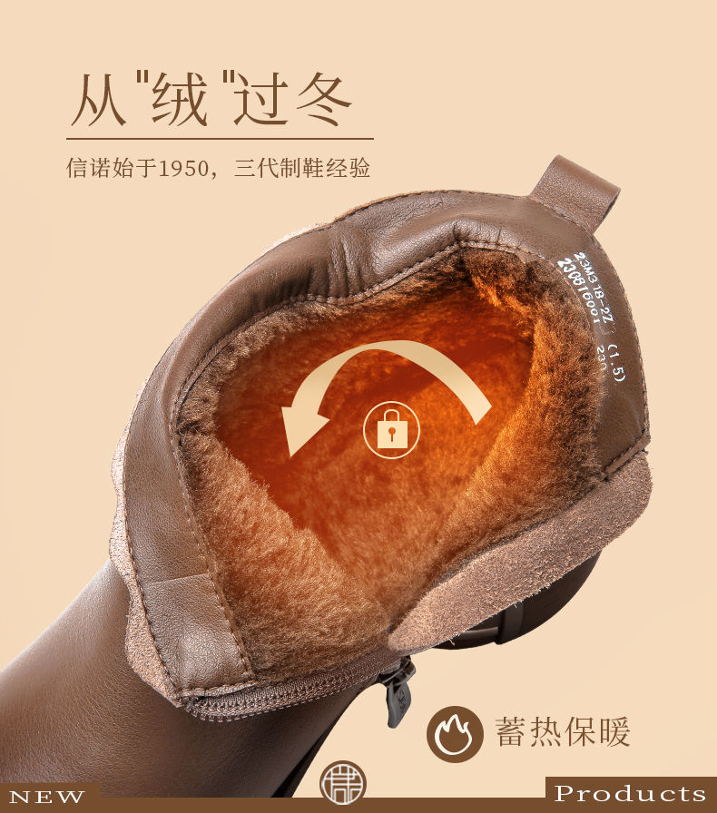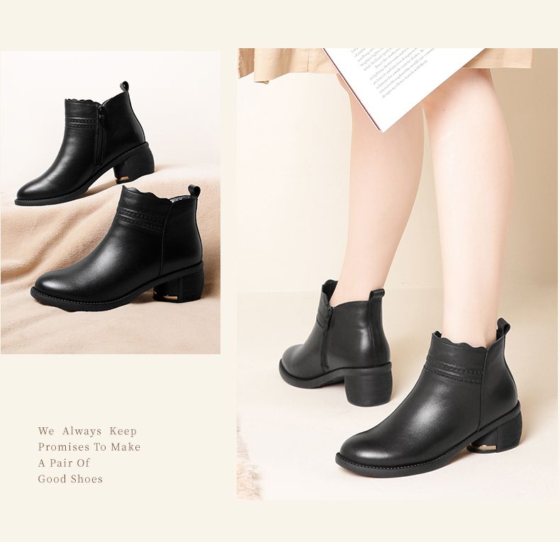真皮粗跟短靴2023新款冬季女鞋中跟中年妈妈棉鞋软底加绒保暖皮鞋23M318-2Z