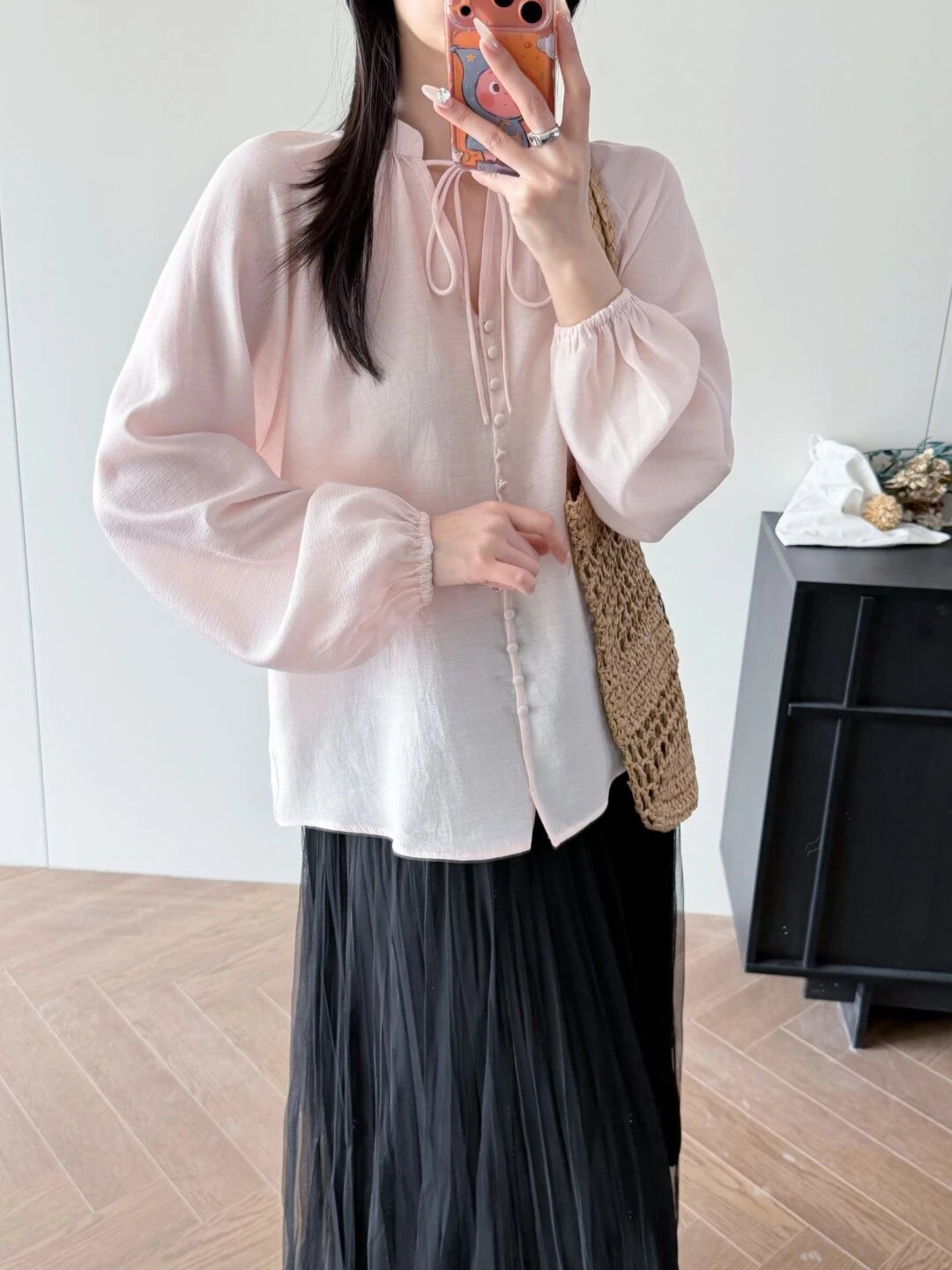 灯笼袖 + 松紧袖口,能完美遮住拜拜肉,袖口做了松紧收束,既保留了松弛感,又不会显得邋遢,还能显手腕纤细,下摆自然垂坠,自带飘逸感,走路带风的氛围感直接拉满~