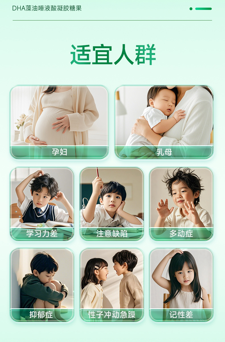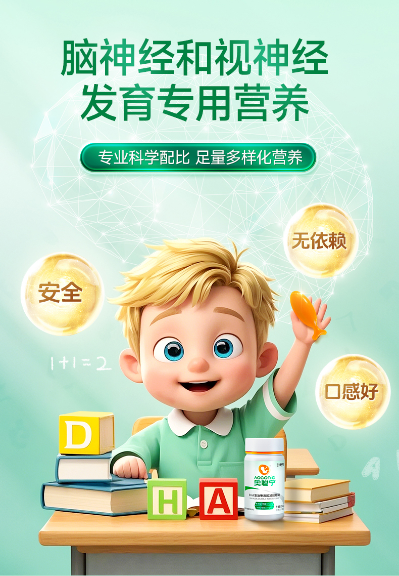 F005 奥利优升级强脑配方DHA唾液酸凝胶糖果孕妇胎儿婴童眼脑神经发育0.5g*30粒/盒