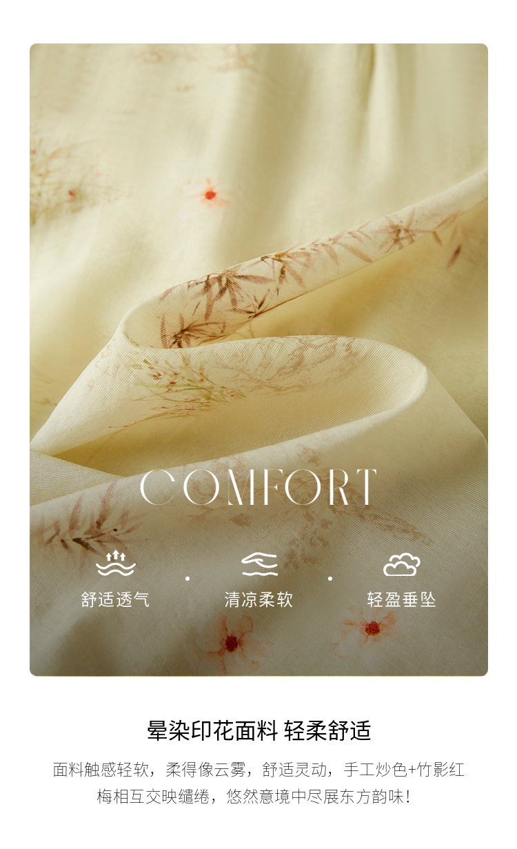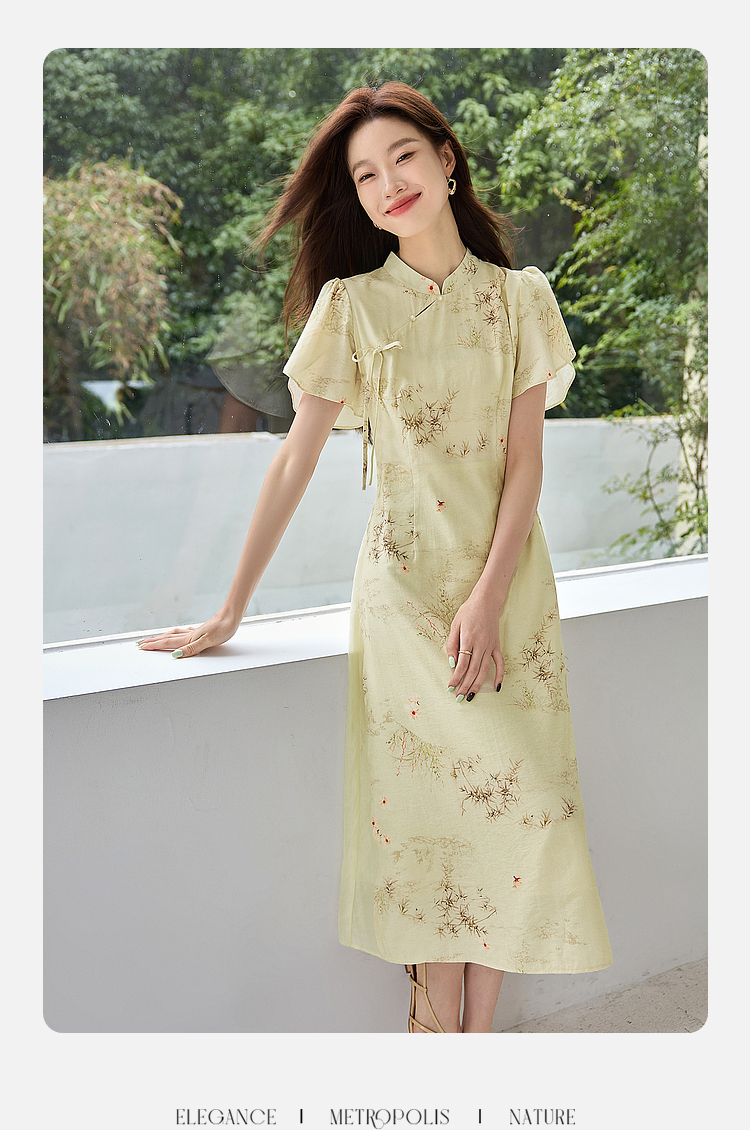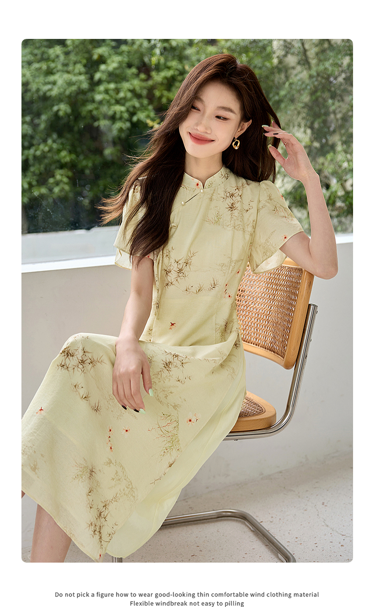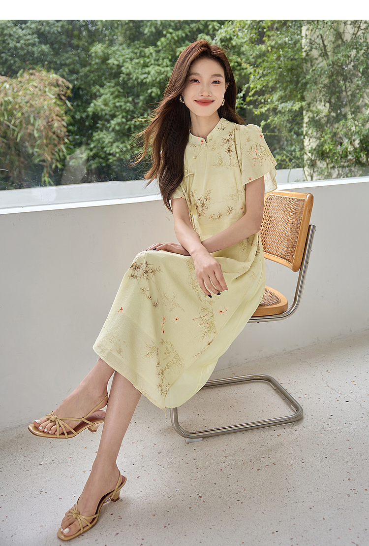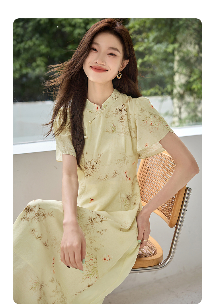 【五折购】熙世界《墨竹红梅》改良旗袍裙女2025夏季新中式国风印花连衣裙