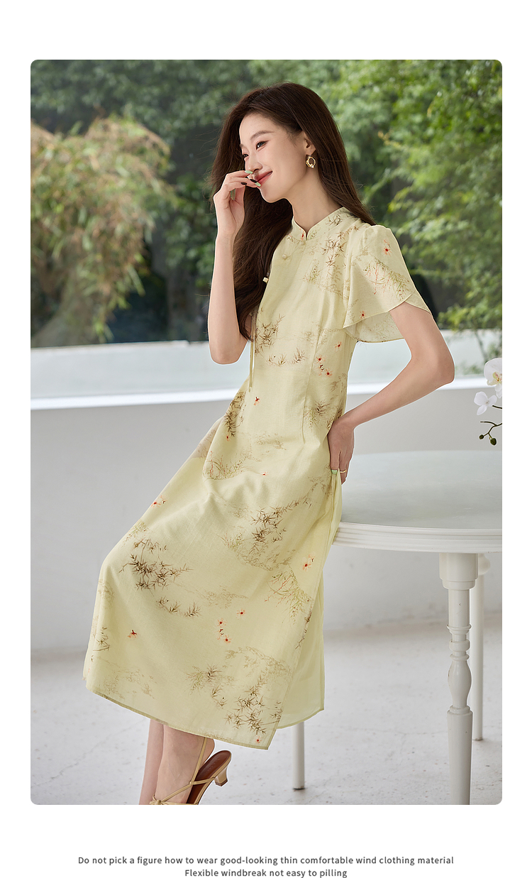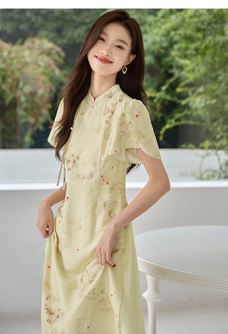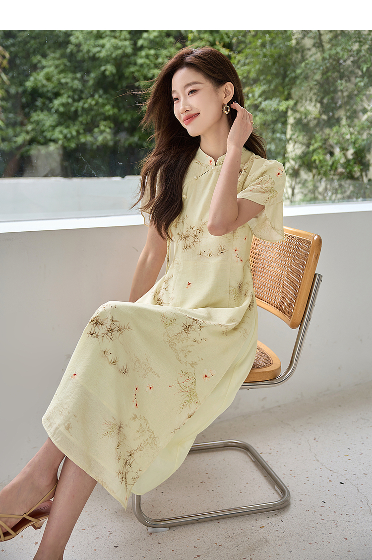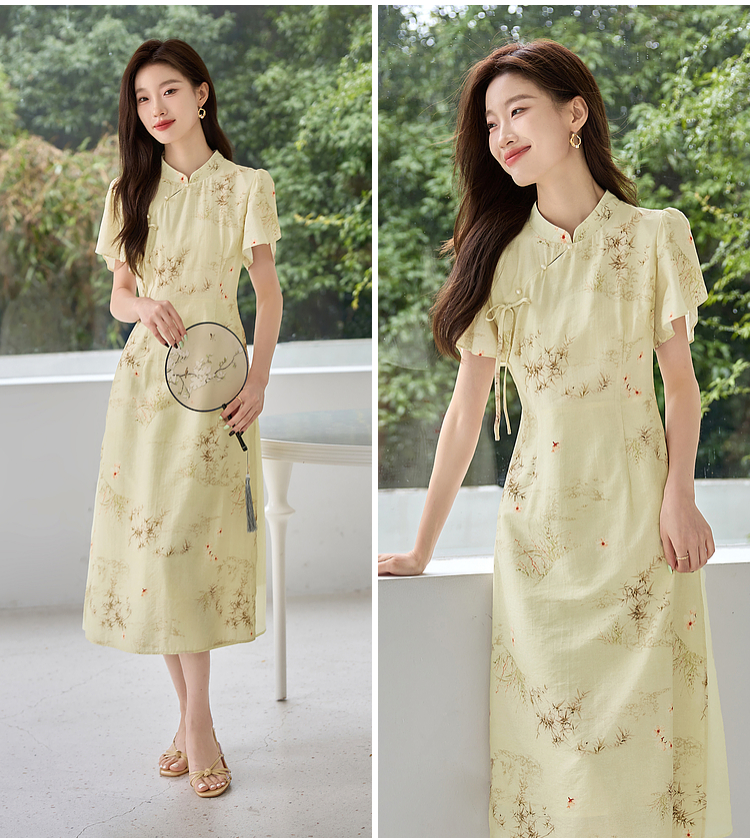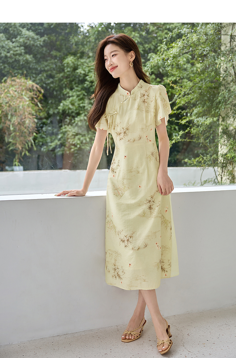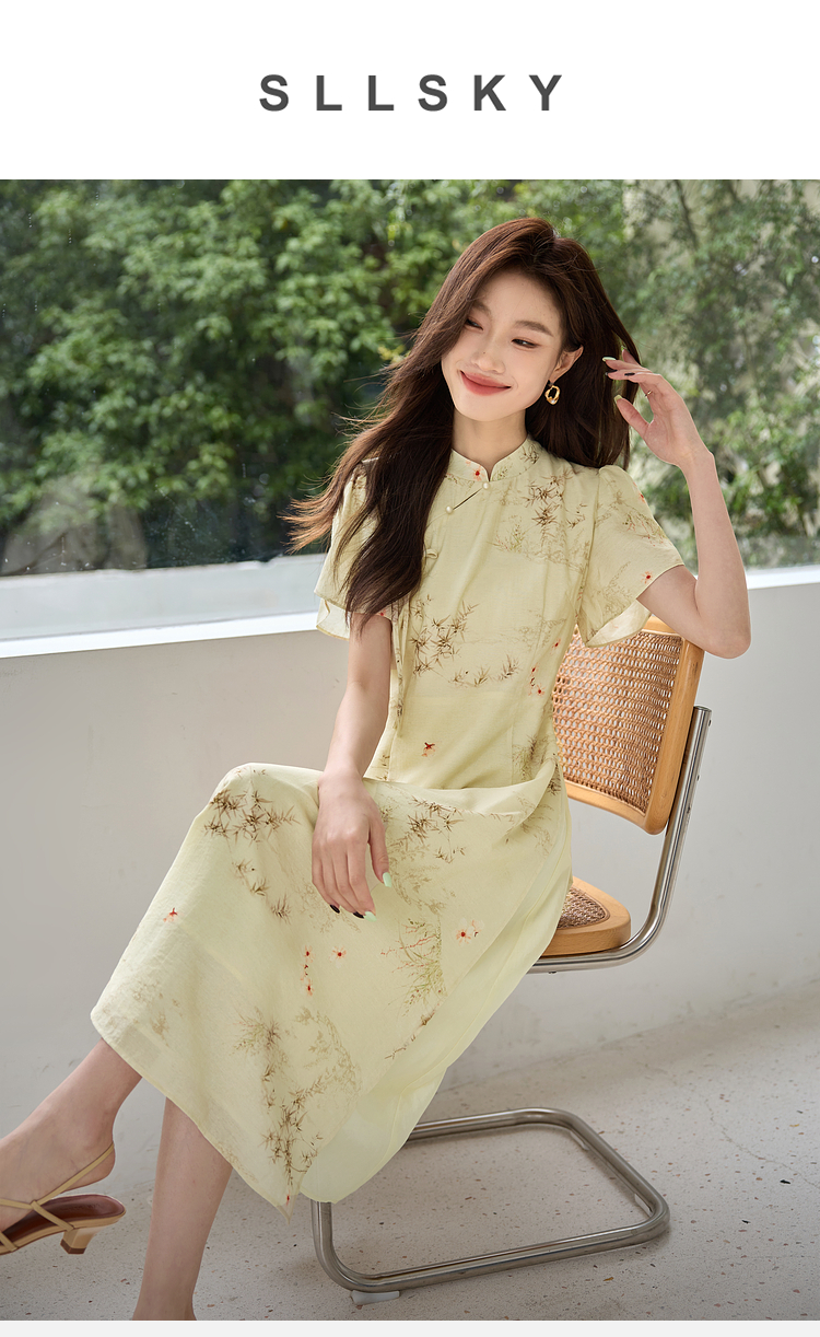 【五折购】熙世界《墨竹红梅》改良旗袍裙女2025夏季新中式国风印花连衣裙