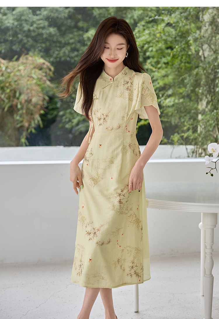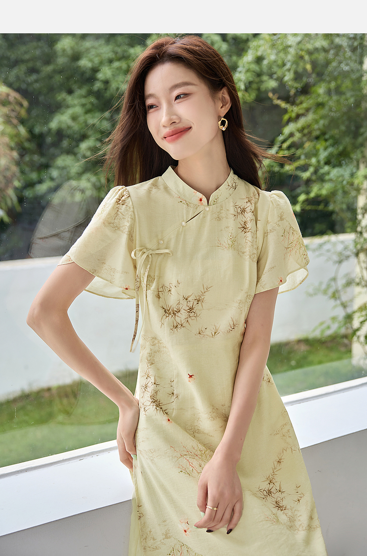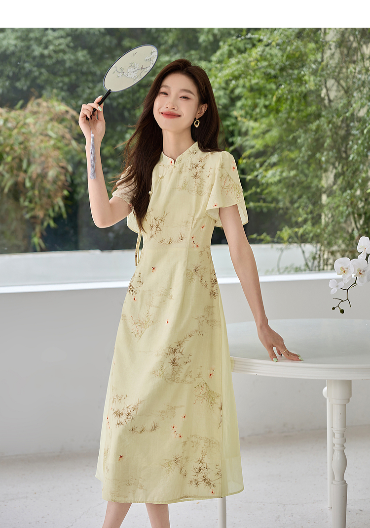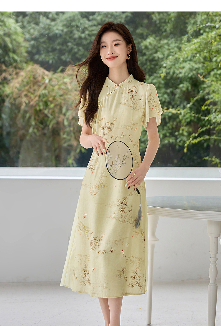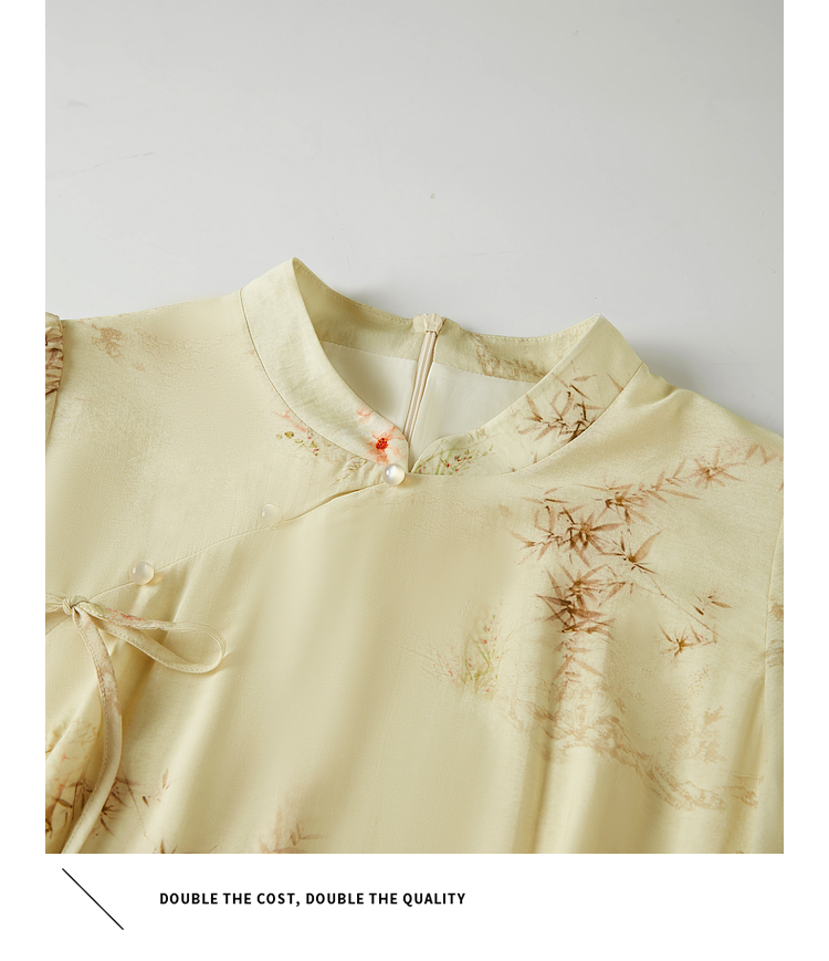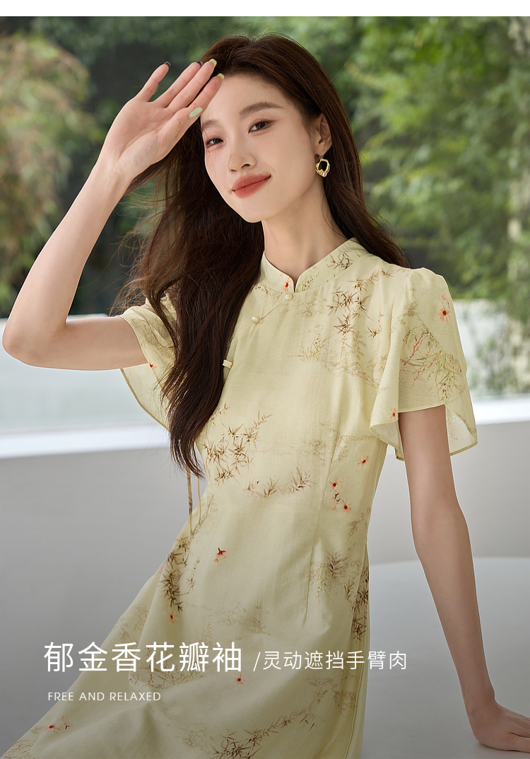 【五折购】熙世界《墨竹红梅》改良旗袍裙女2025夏季新中式国风印花连衣裙