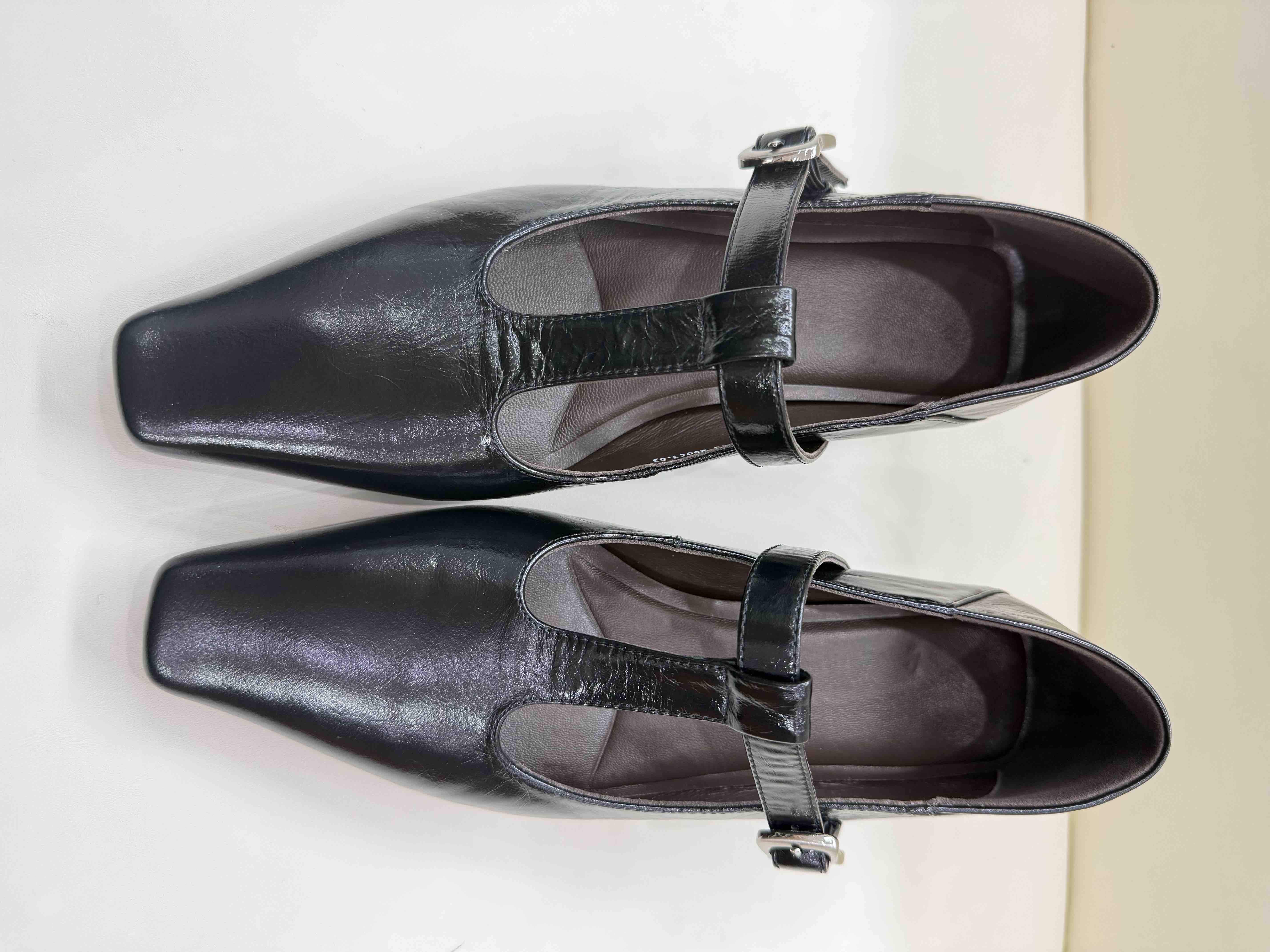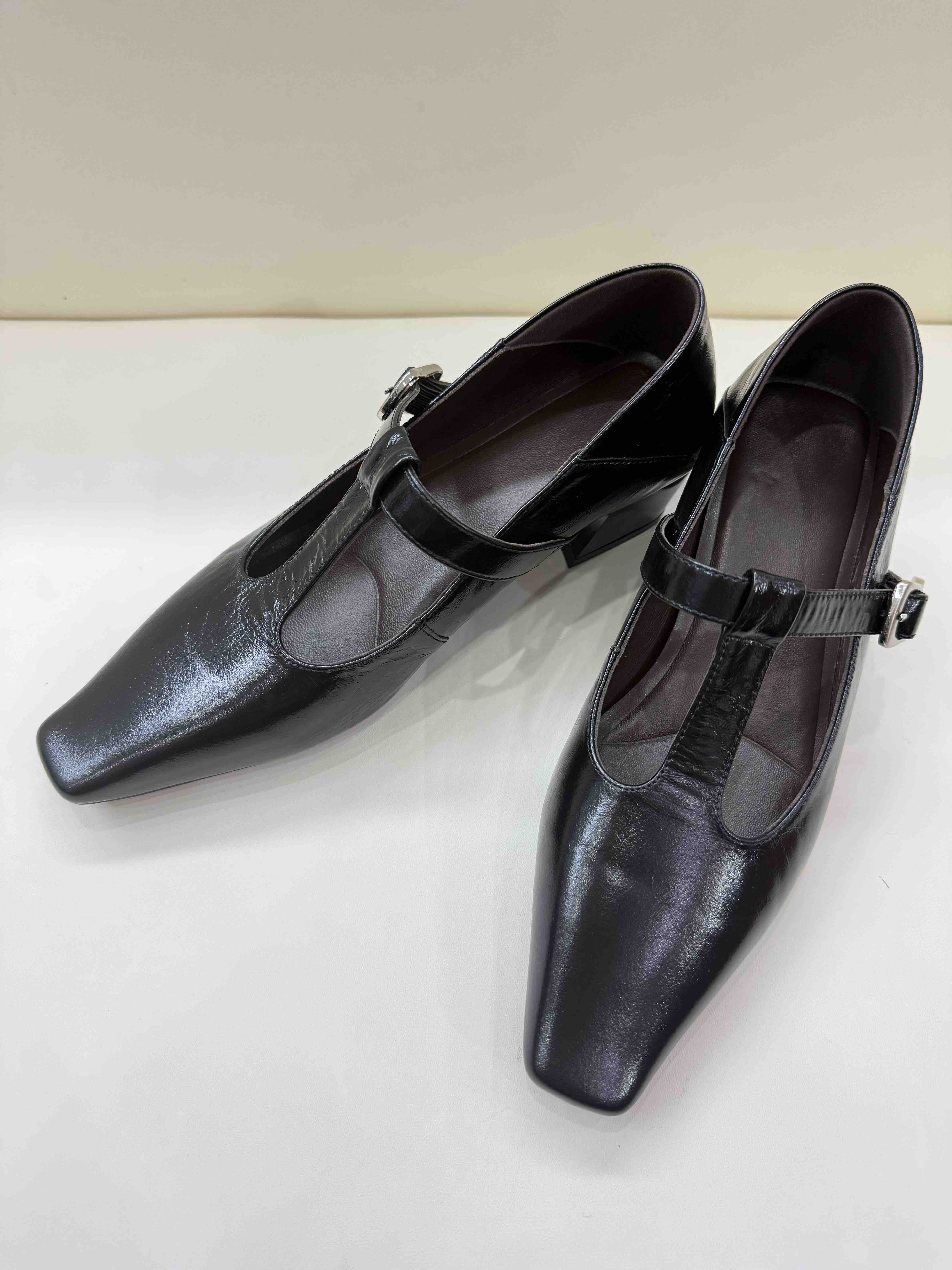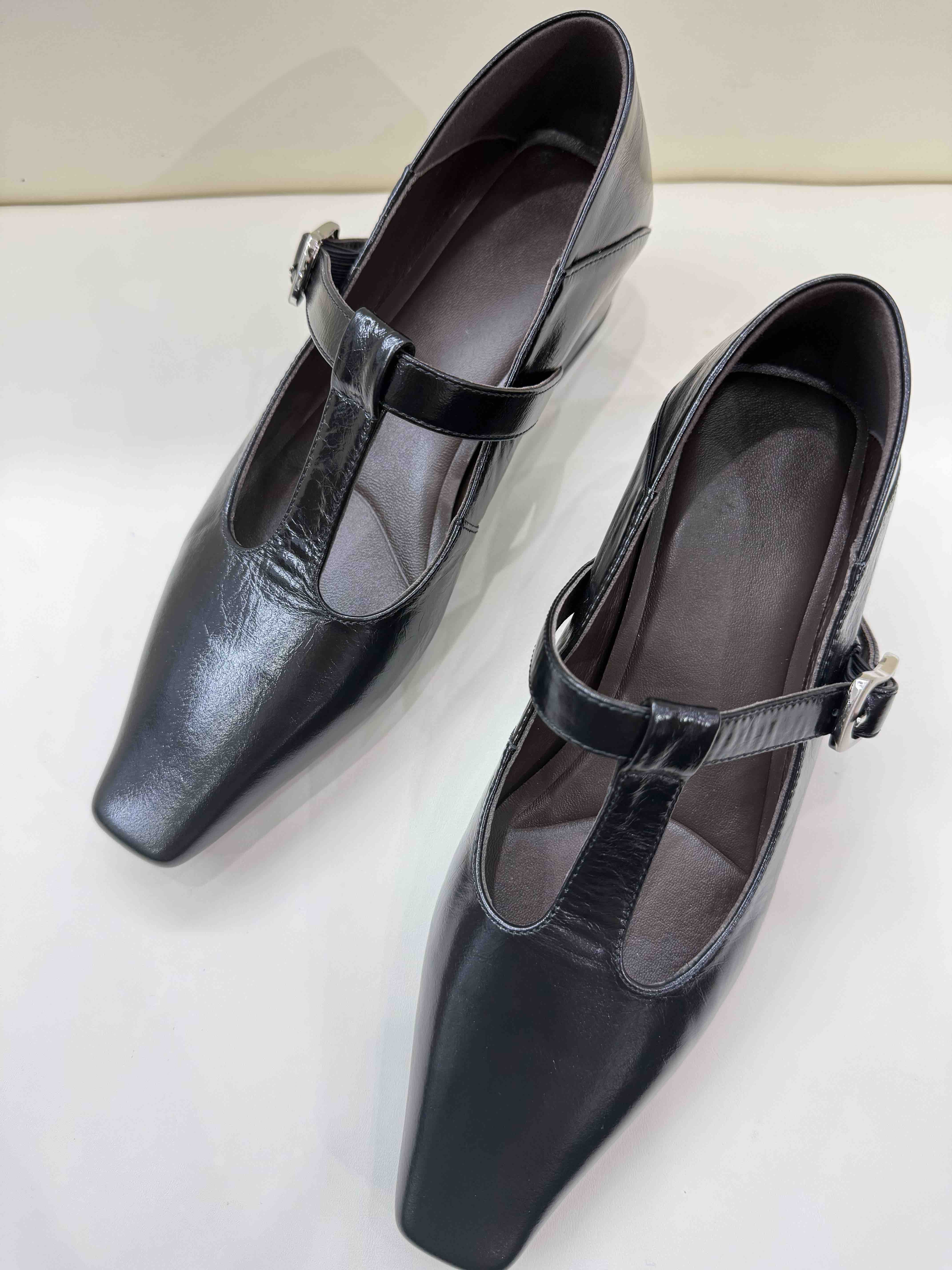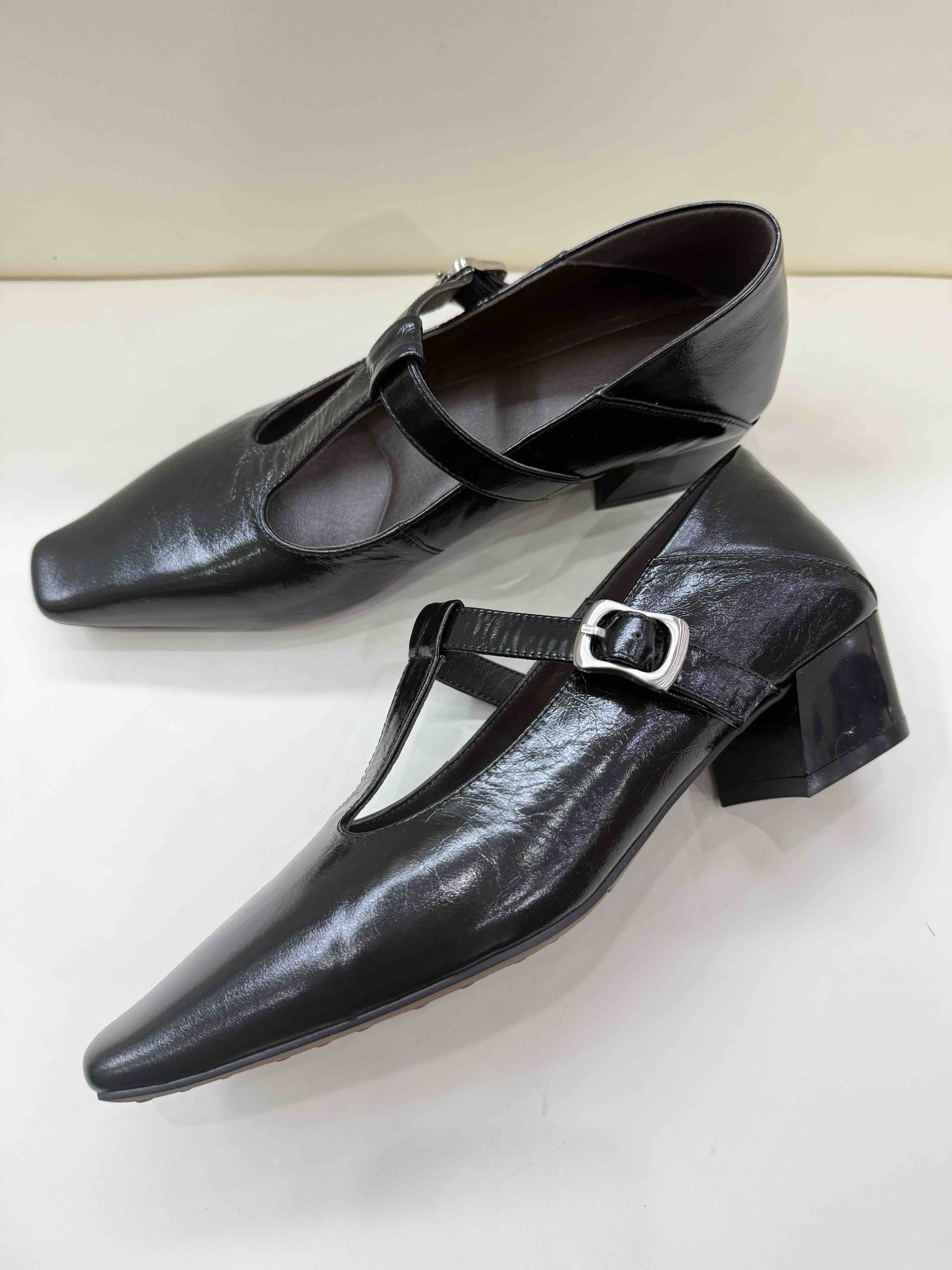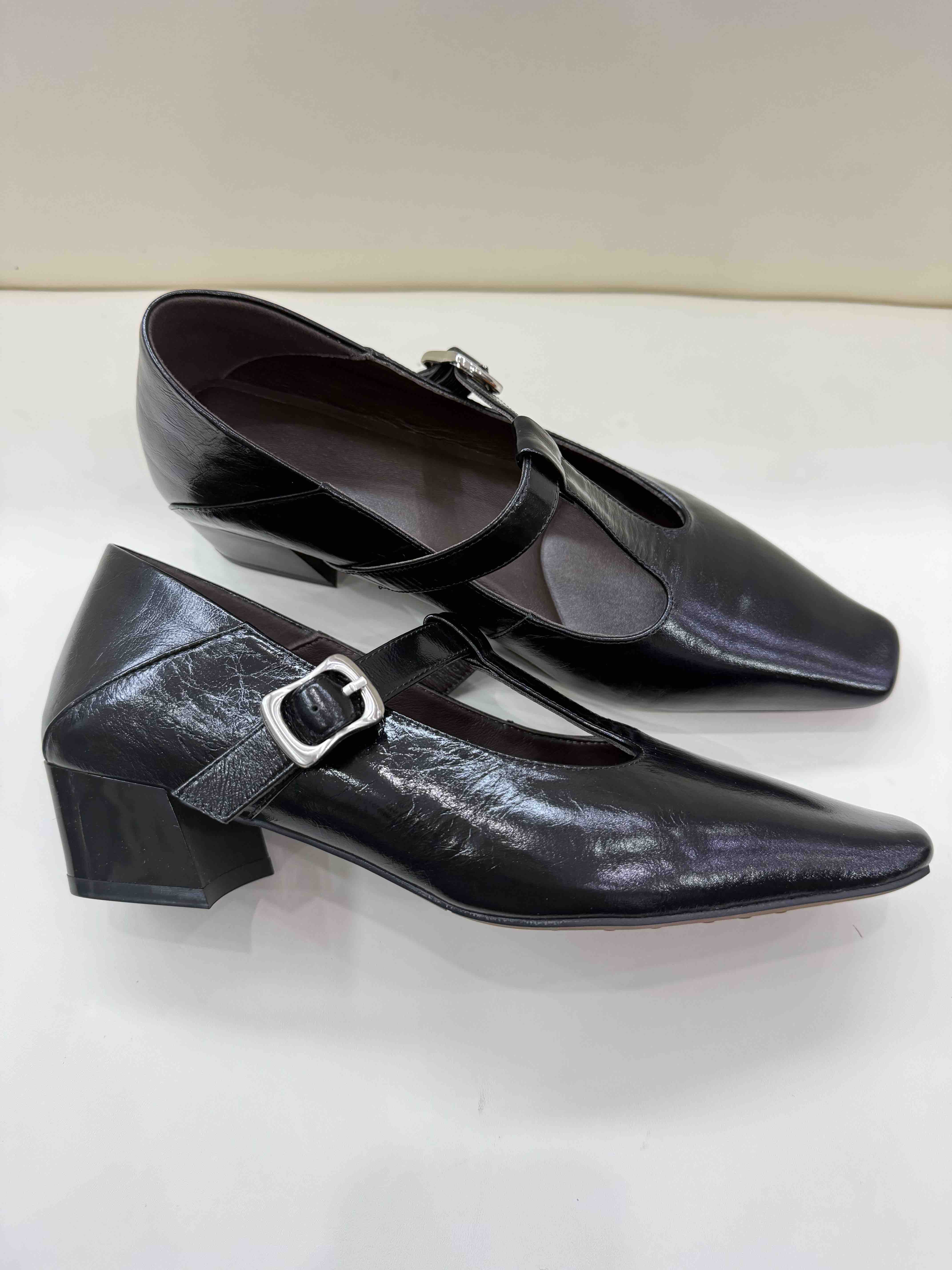 胎牛皮中跟鞋