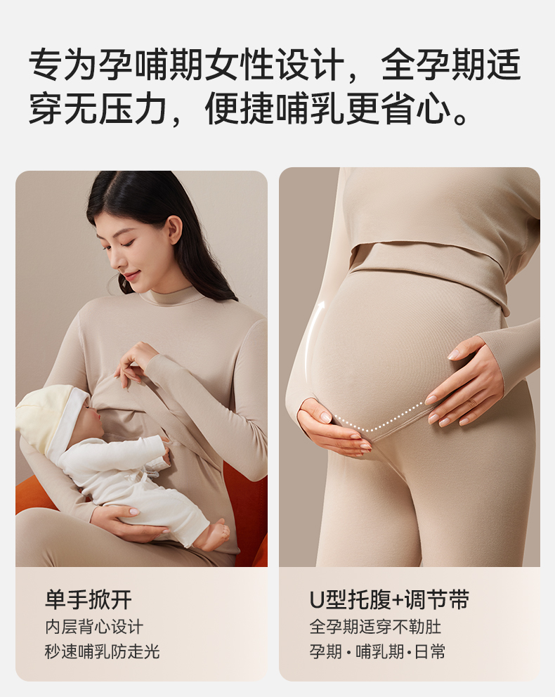 孕妇绒朵秋衣裤套装暖皮衣哺乳抗菌保暖内衣打底衫秋冬季