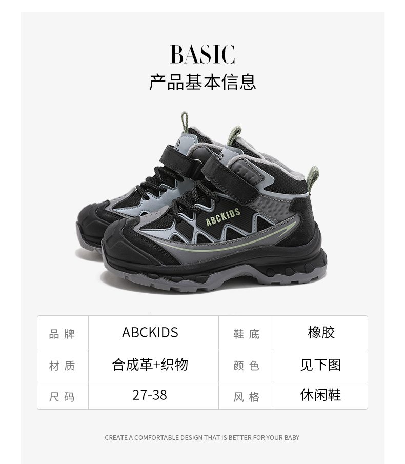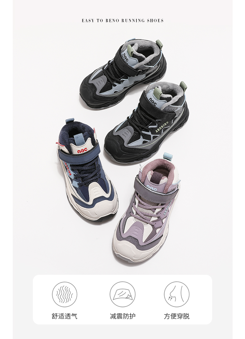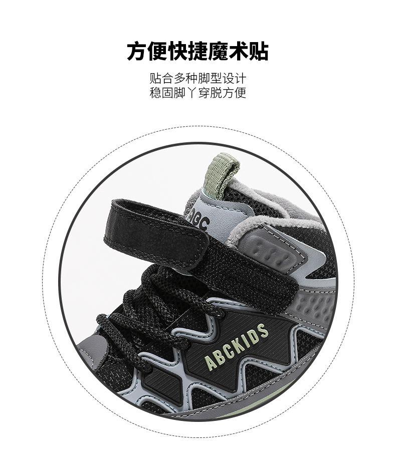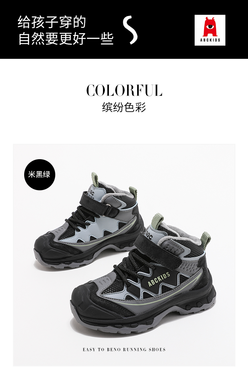 abckids童鞋加绒二棉鞋男童女童2024冬季新款儿童高帮防滑保暖运动鞋