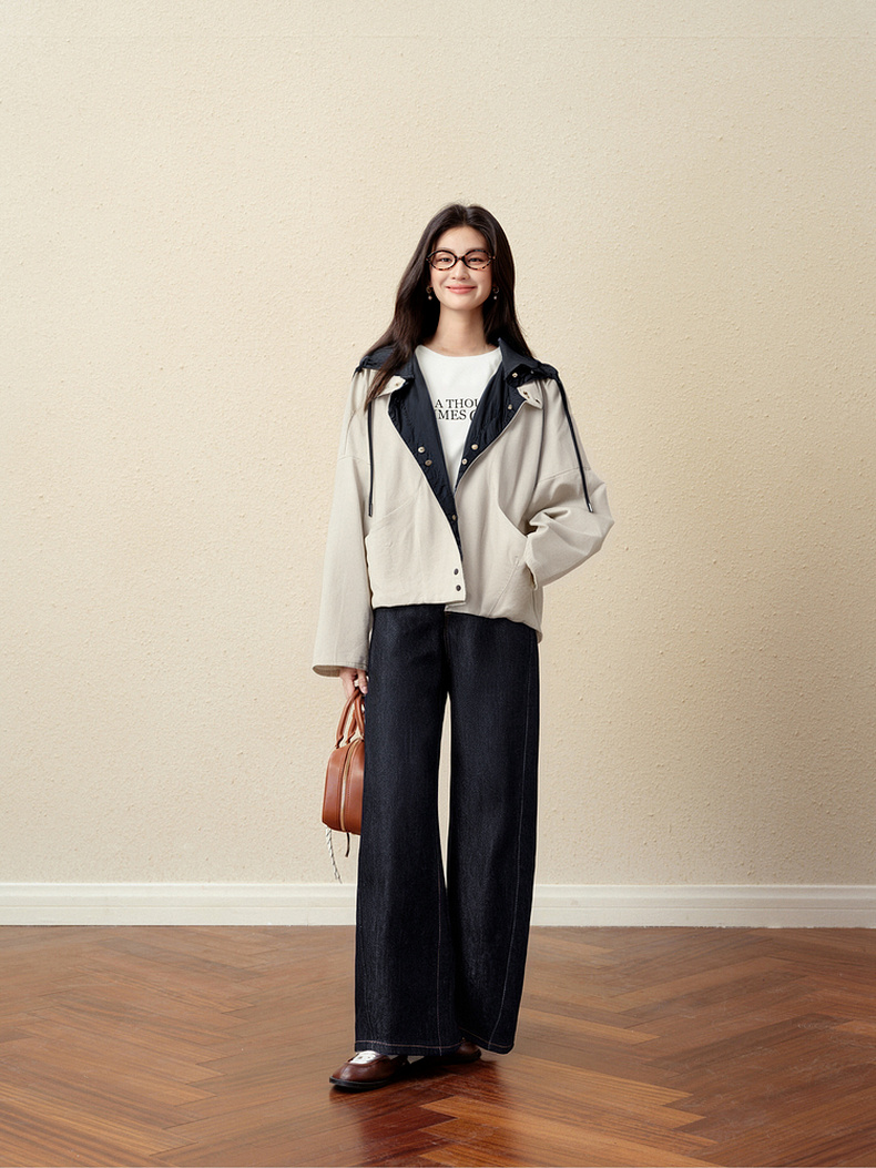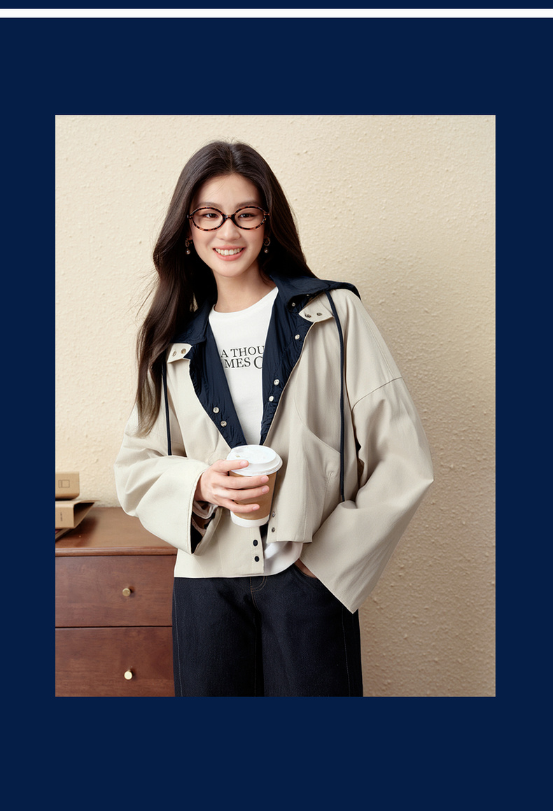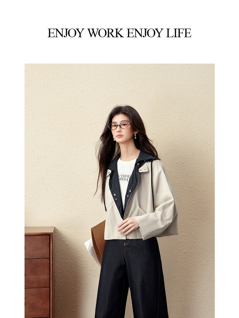 【严选】诗凡黎经典MIU系巴恩风连帽风衣2025秋新款气质百搭宽松夹克外套7G8260351