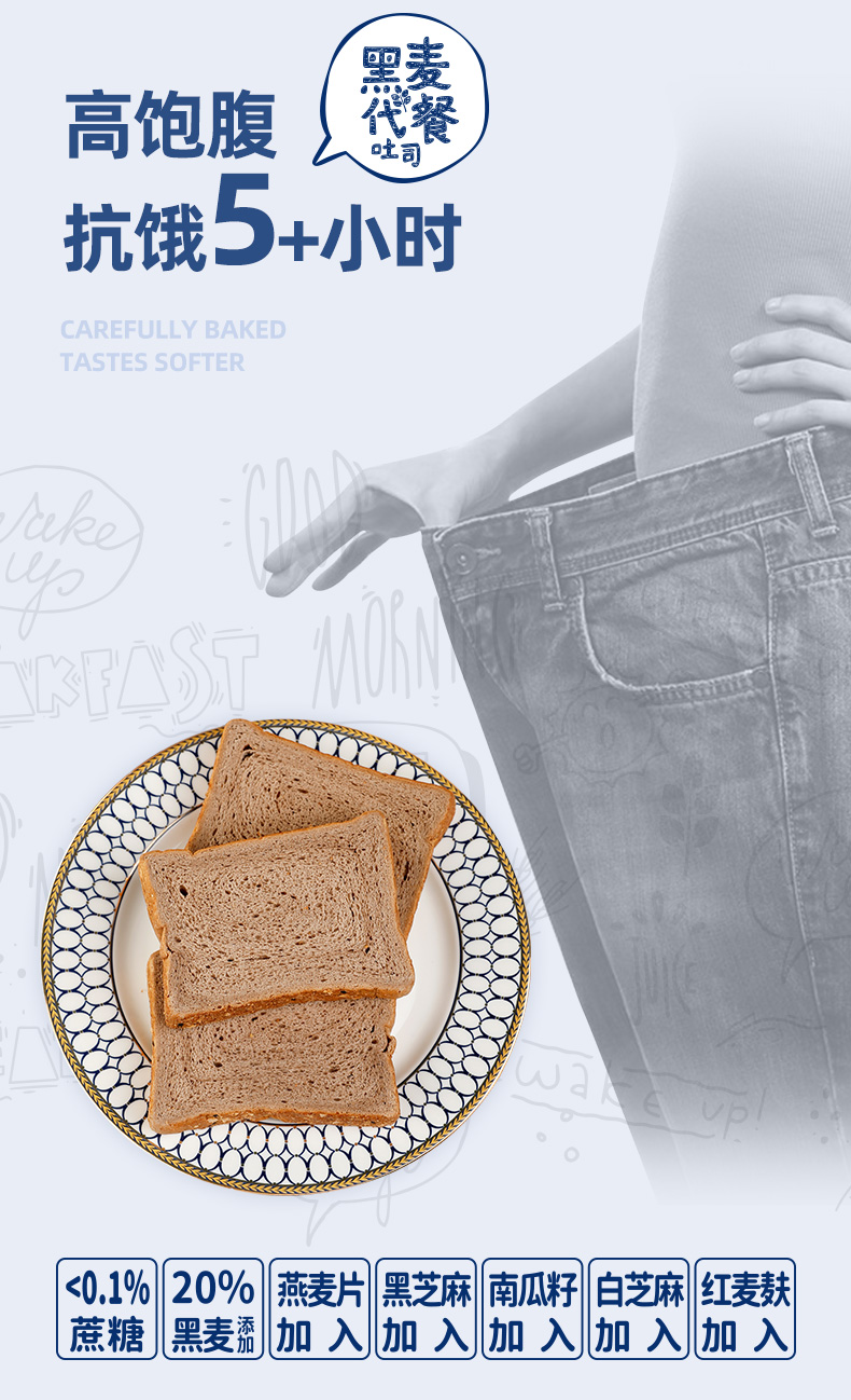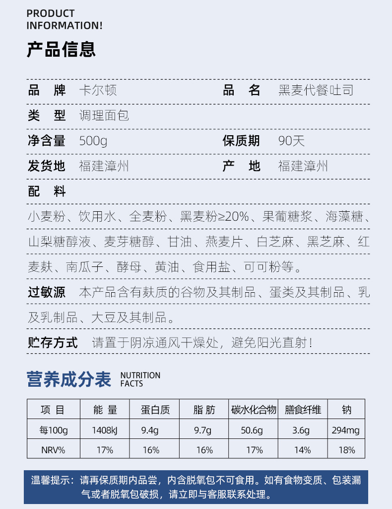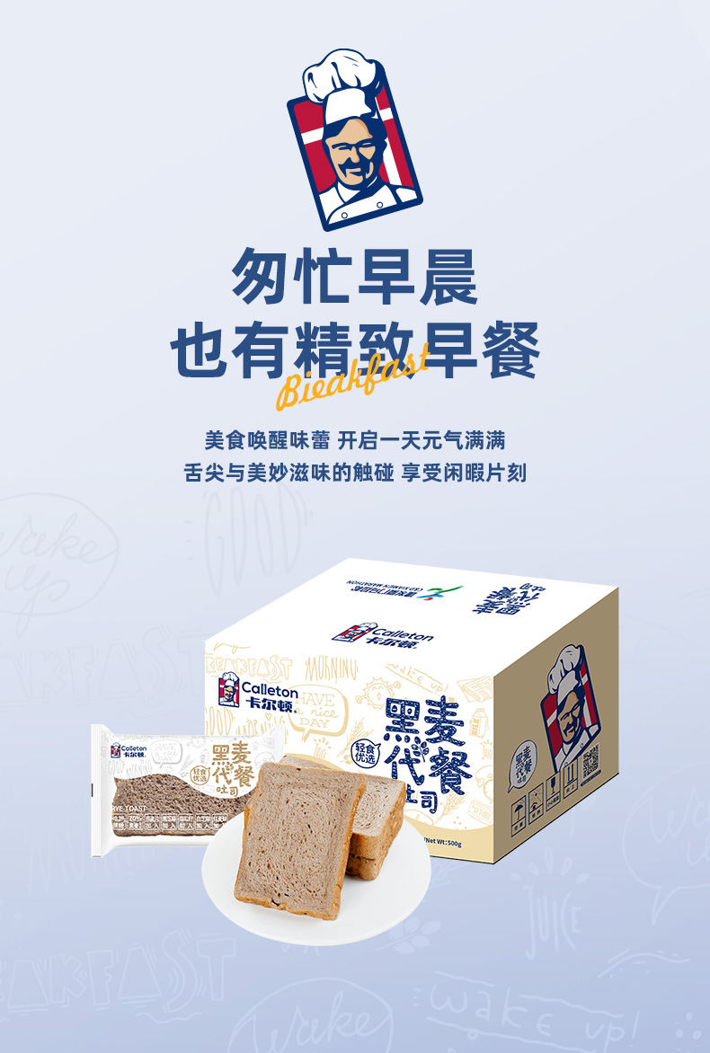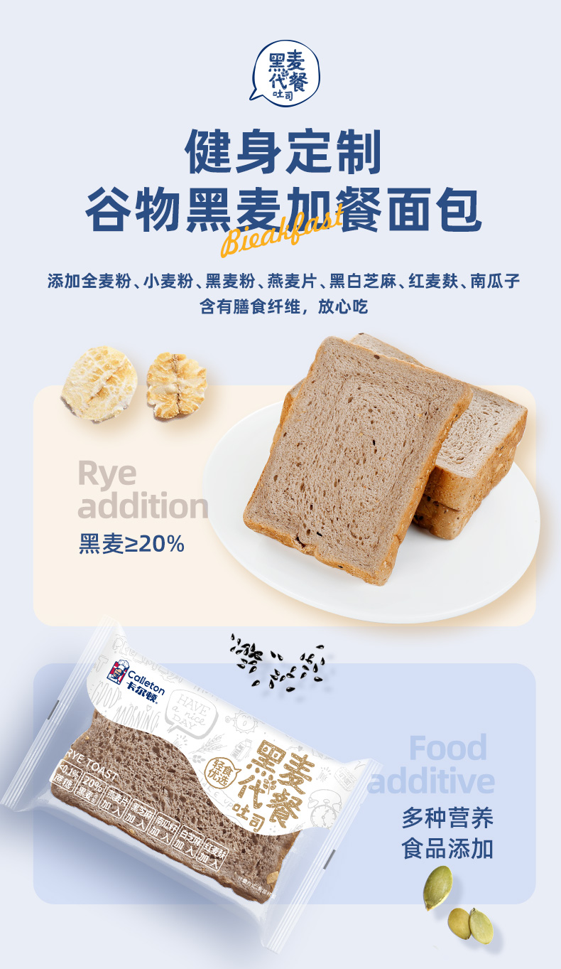 【卡尔顿】黑麦面包粗粮早餐代餐吐司食品整箱土司零食小吃500g箱 高饱腹感更抗饿