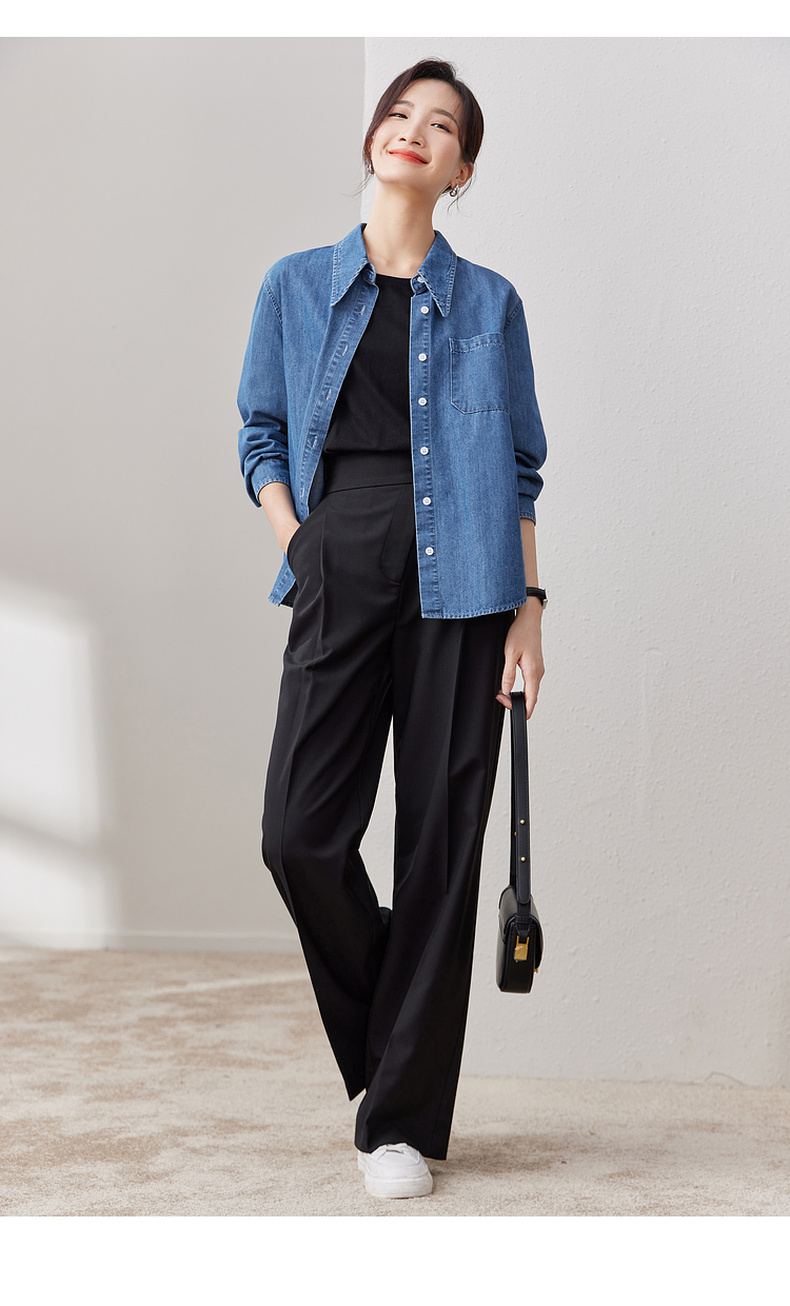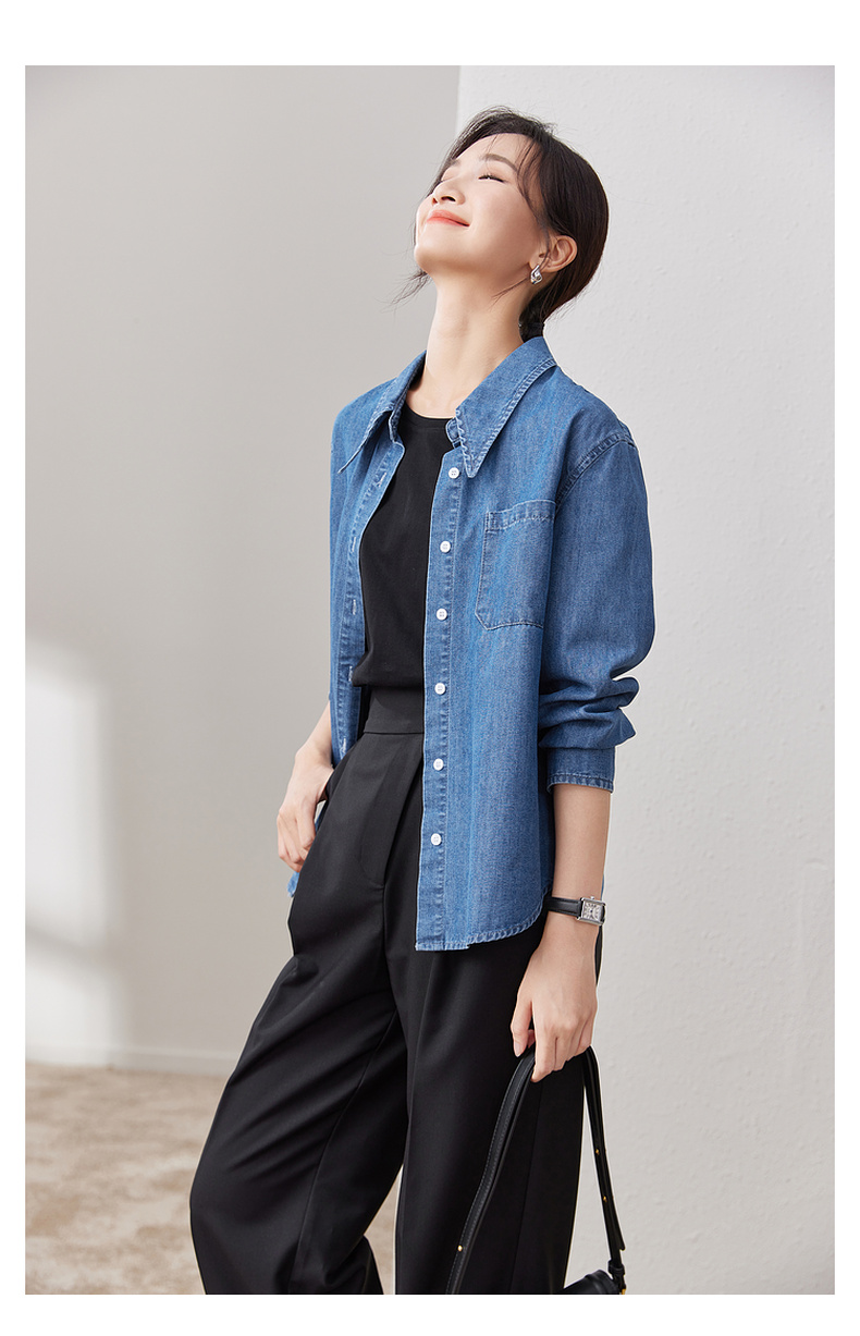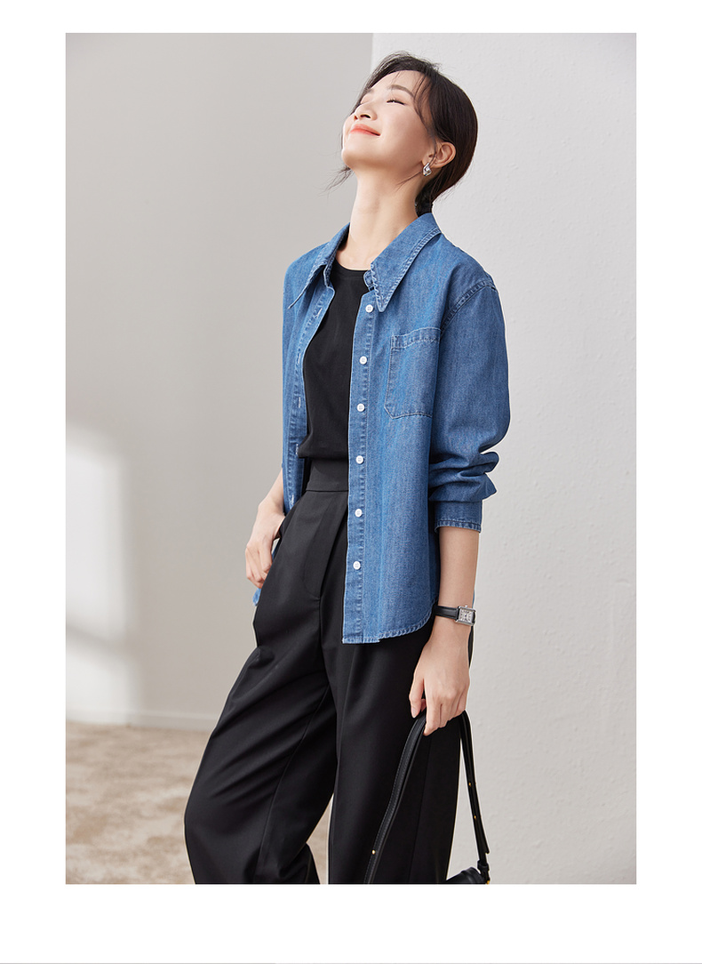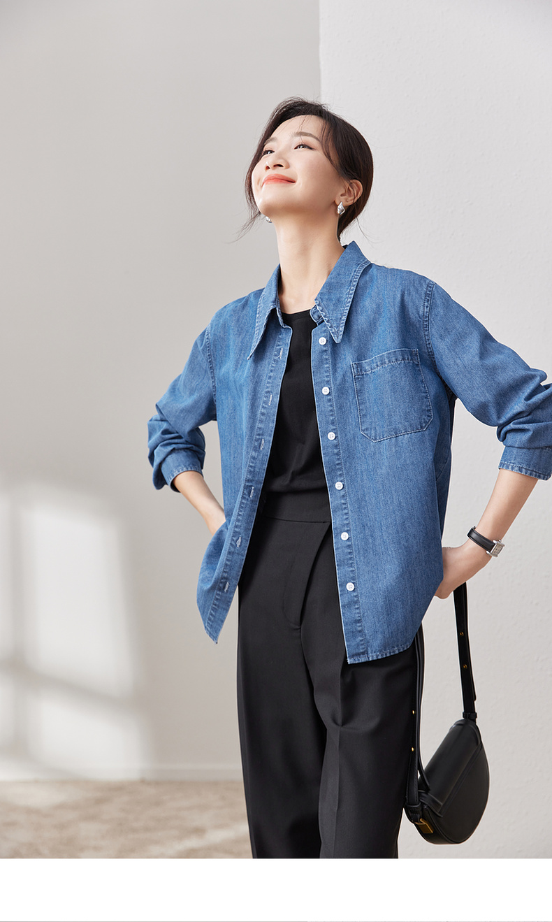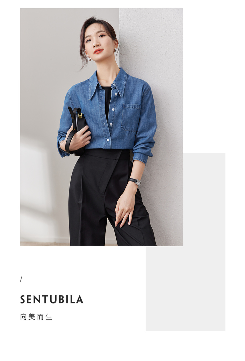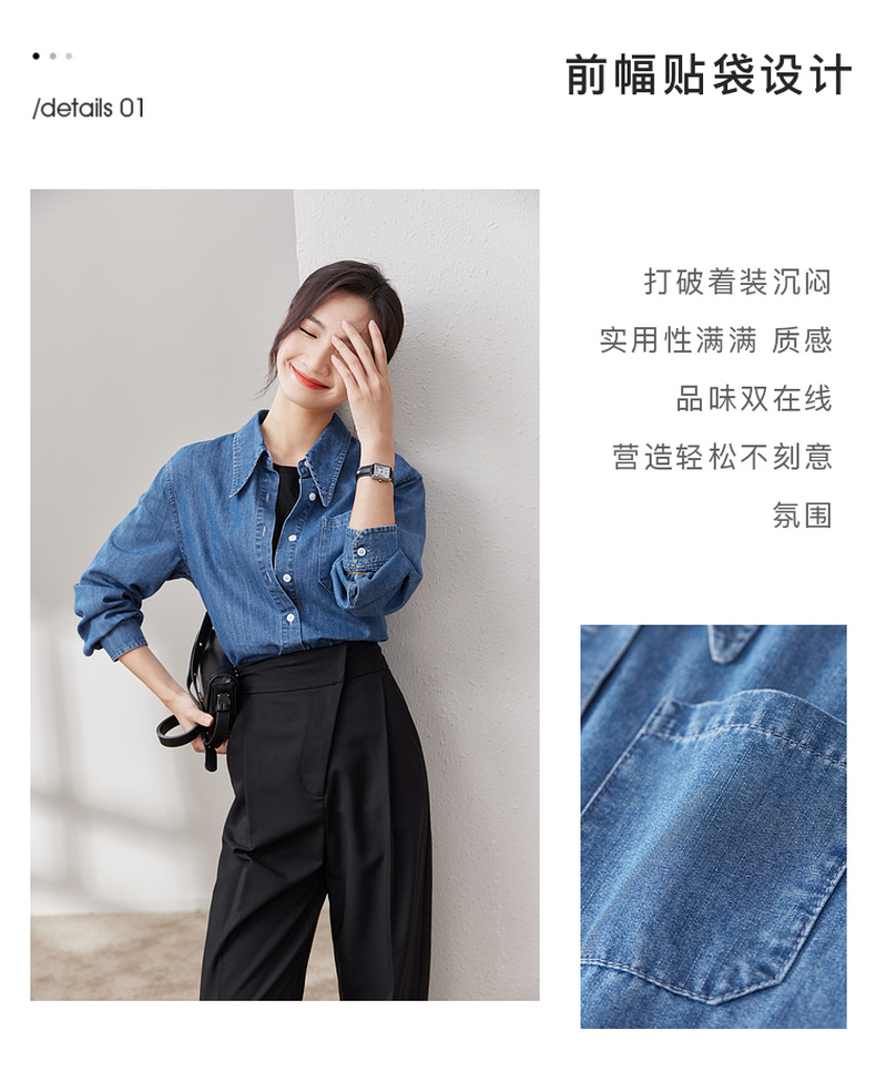 【内购】气质通勤牛仔衬衫文艺氛围感简约佰搭时髦复古风-W53CD3614X