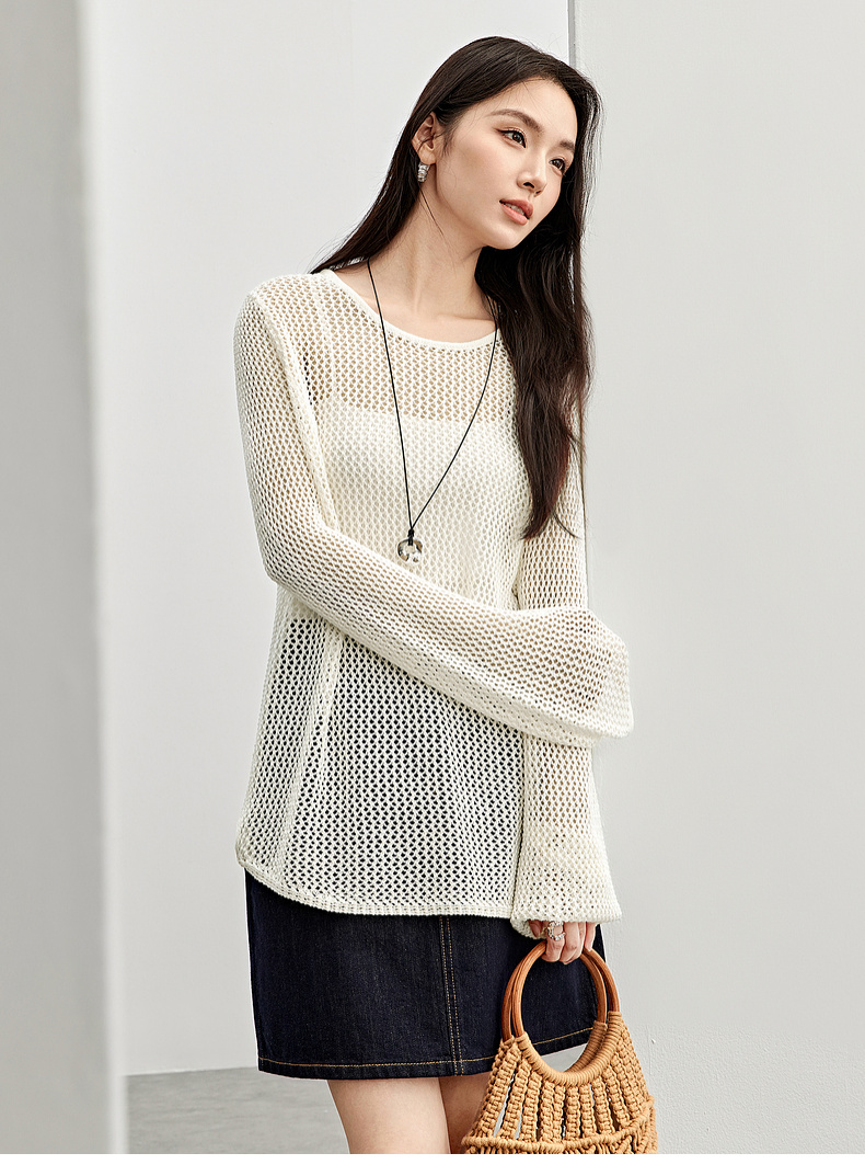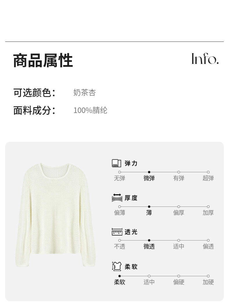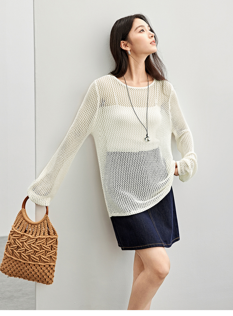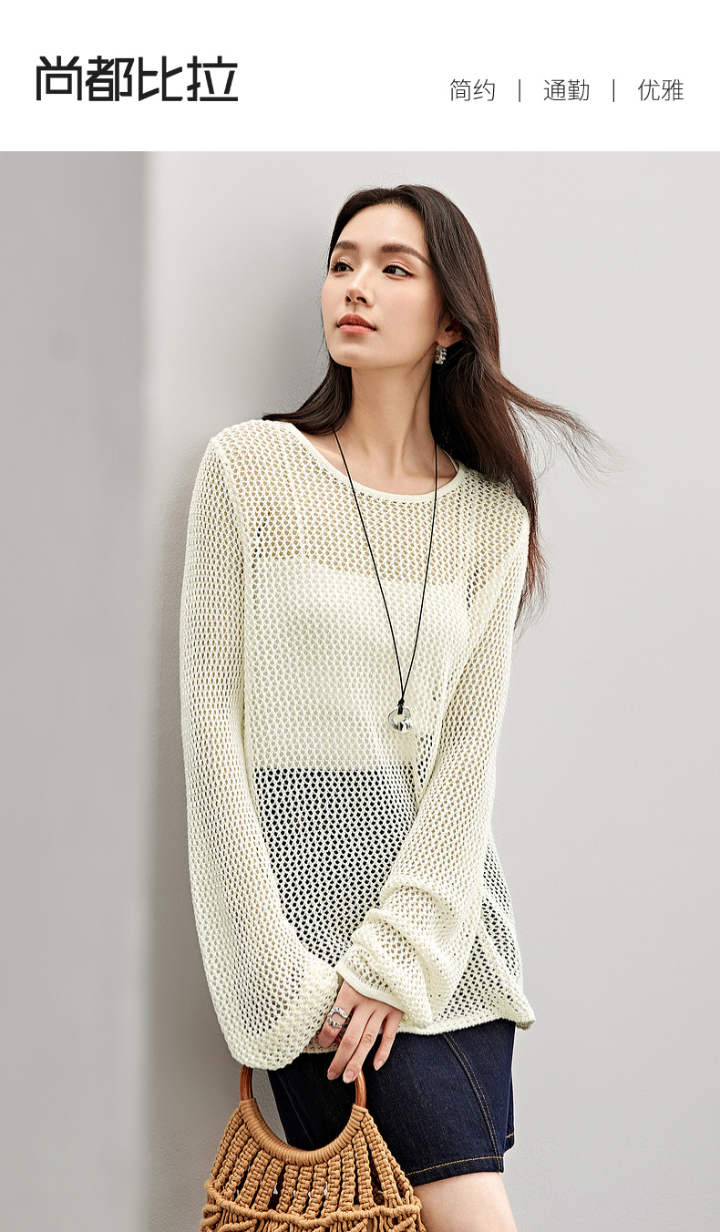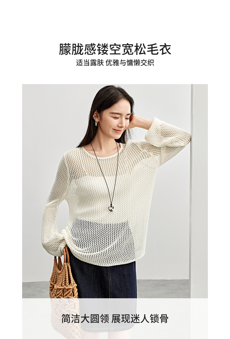 【内购】【云纱蜜语】简约通勤度假大圆领落肩朦胧感镂空微弹柔软薄毛衣-W53EA3289X