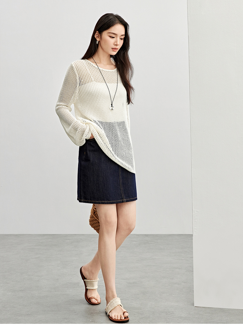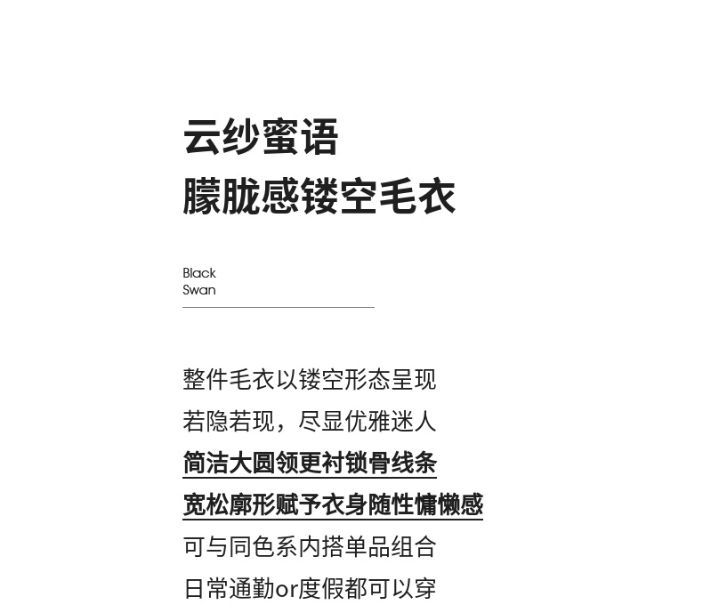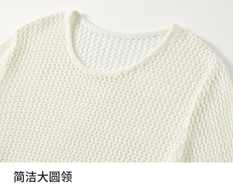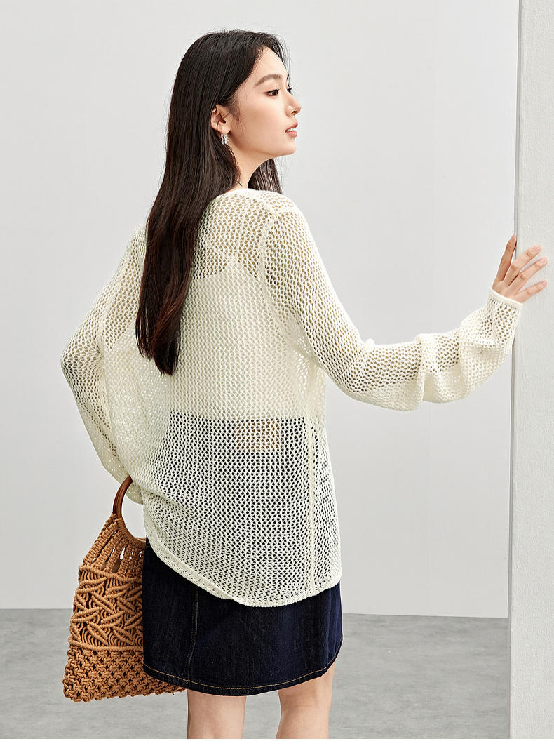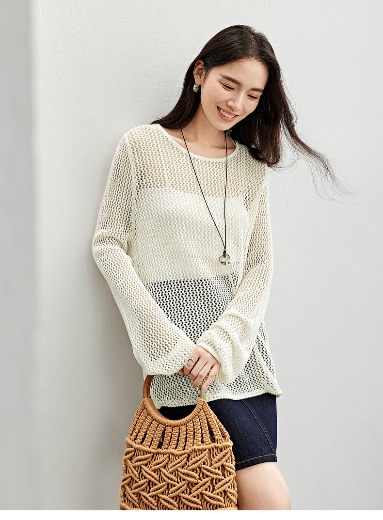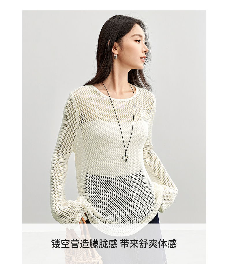 【内购】【云纱蜜语】简约通勤度假大圆领落肩朦胧感镂空微弹柔软薄毛衣-W53EA3289X