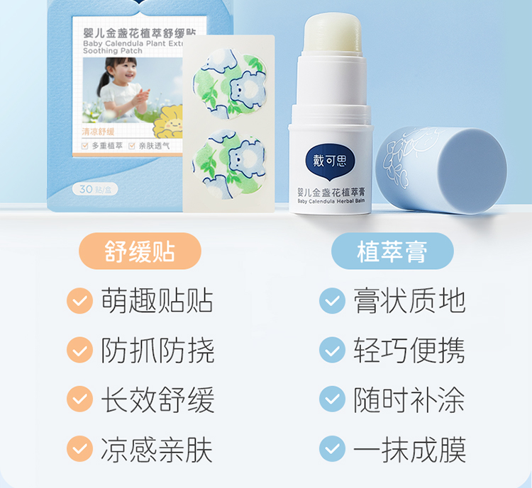 戴可思婴儿金盏花植萃舒缓贴舒叮舒包夏季户外宝宝非紫草膏♥