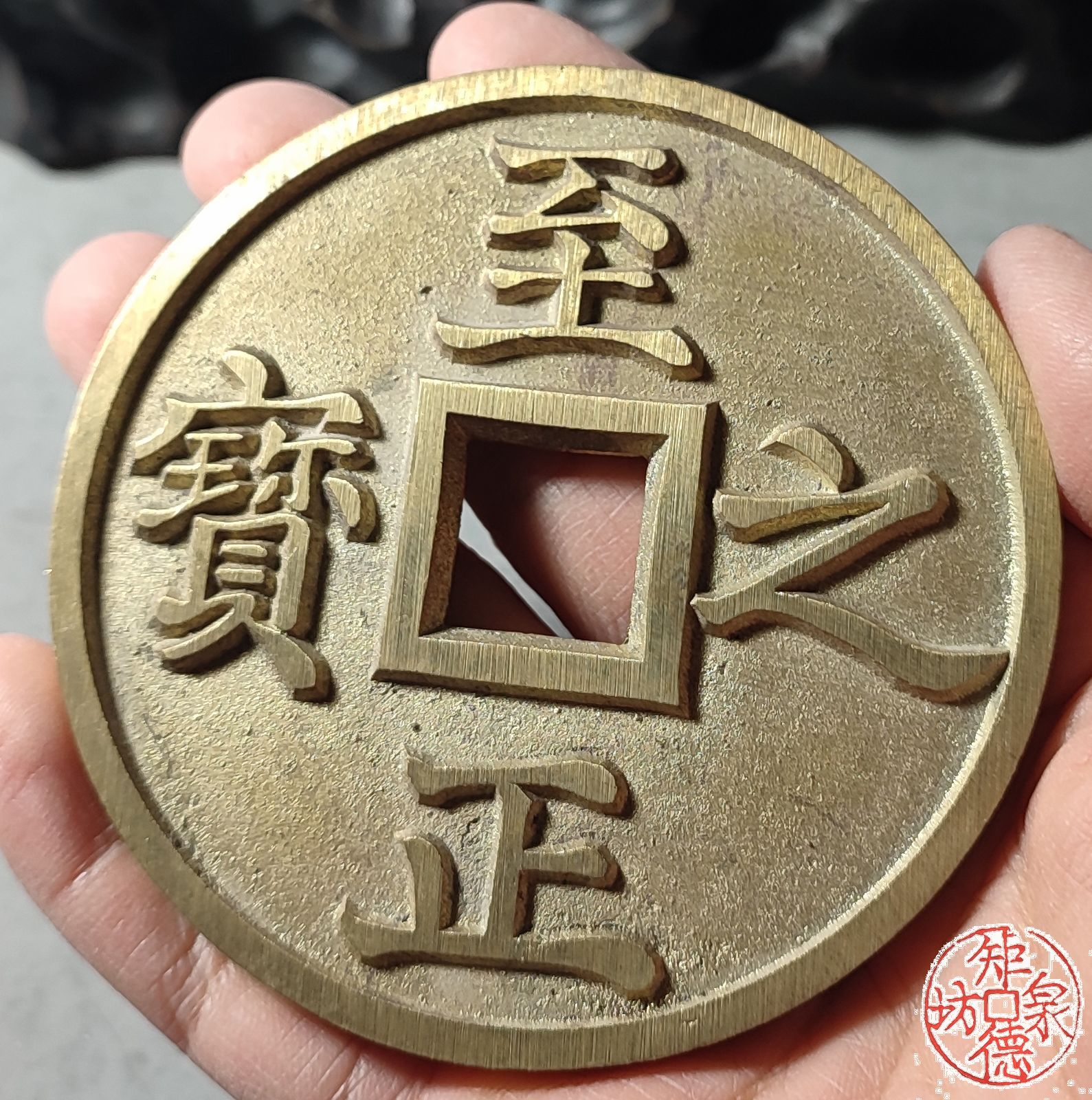 古法文创铸币 至正之宝背吉 文房铜镇 QQH34
