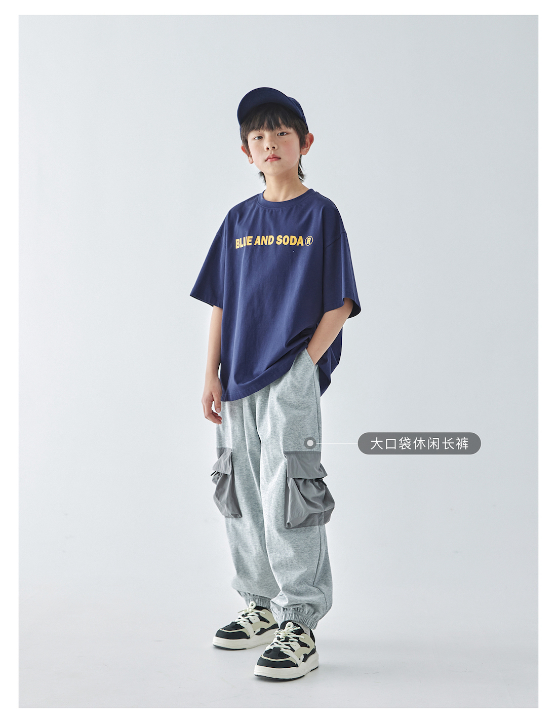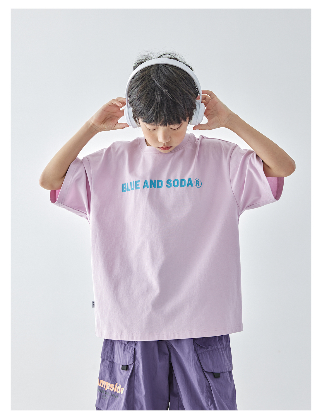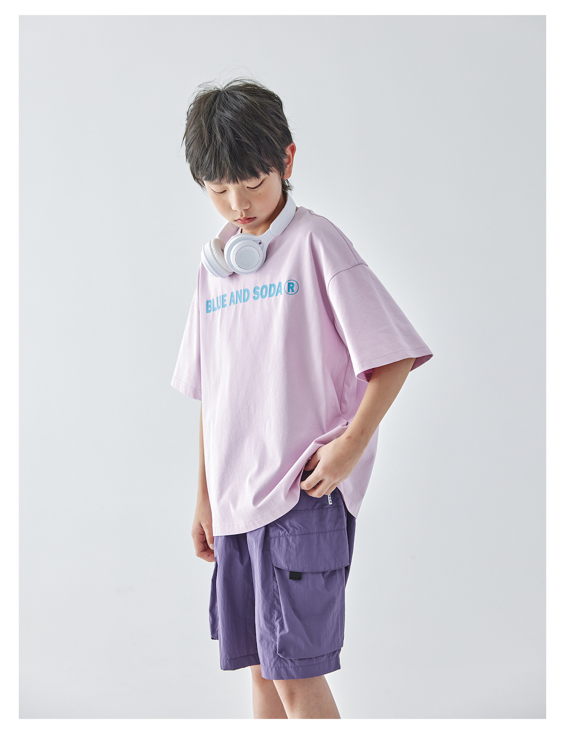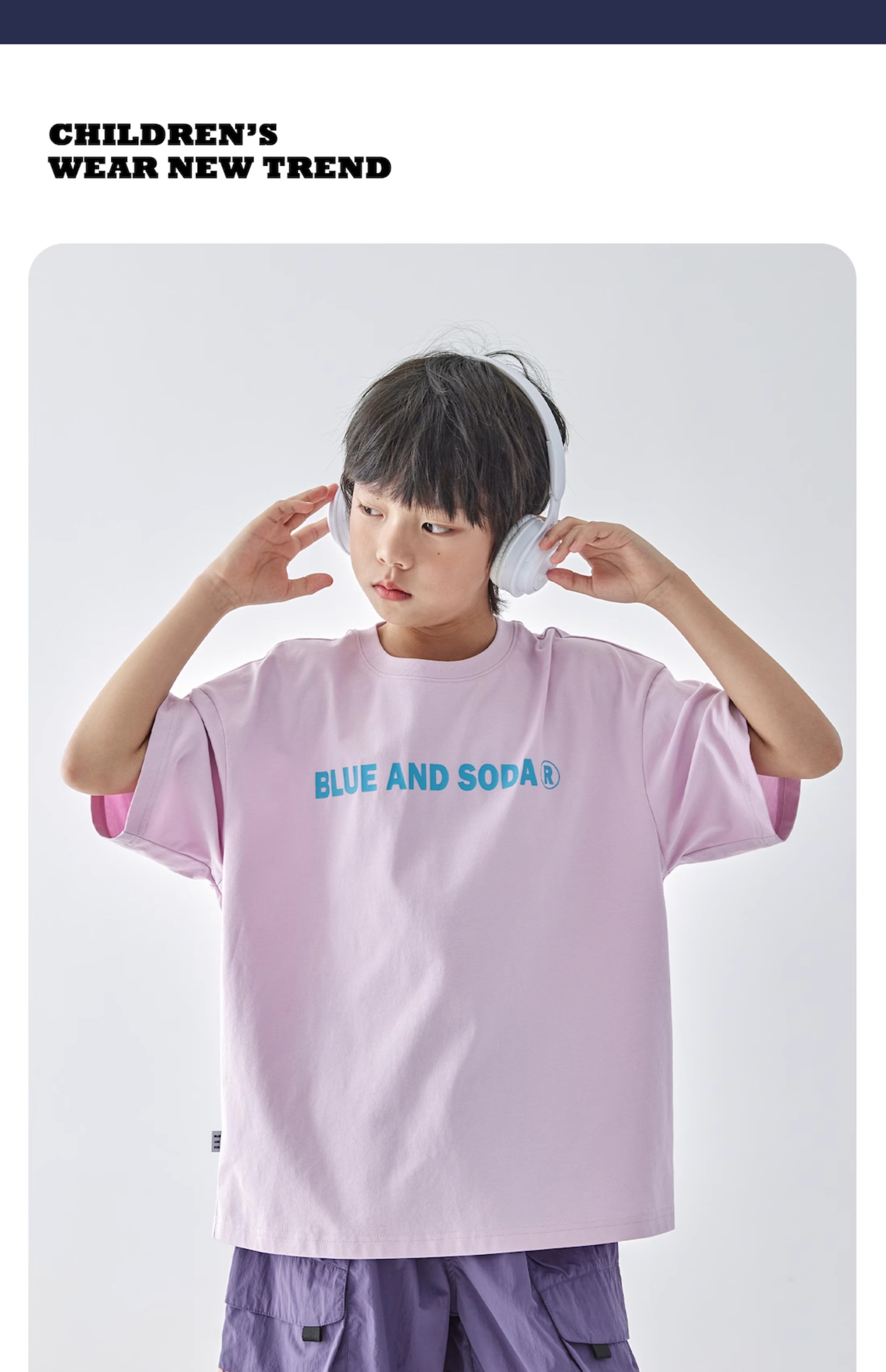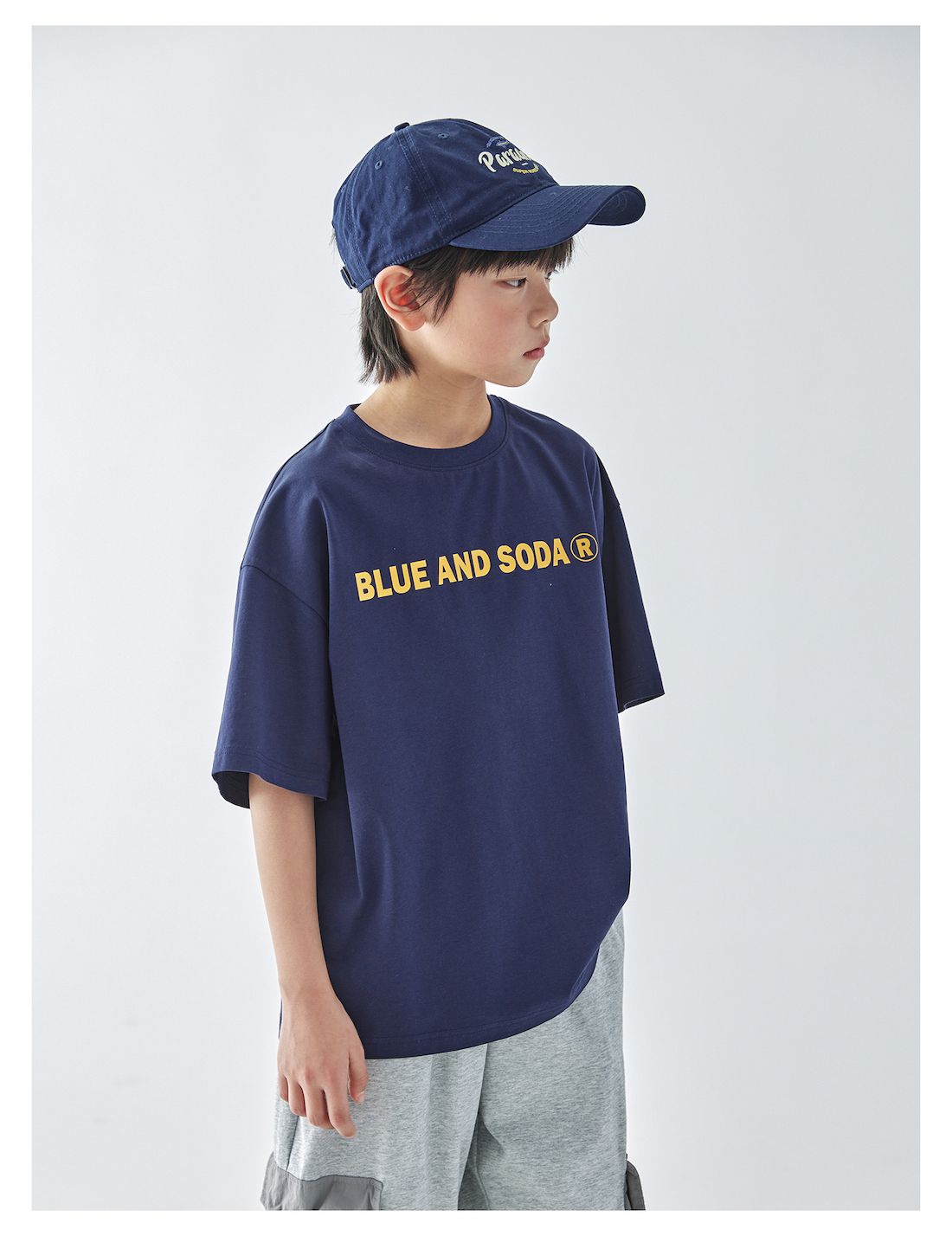 【代发】男童撞色LOGOT恤 蓝汽水简约字母印花短袖夏季上衣藏青/白色/粉色/蓝色