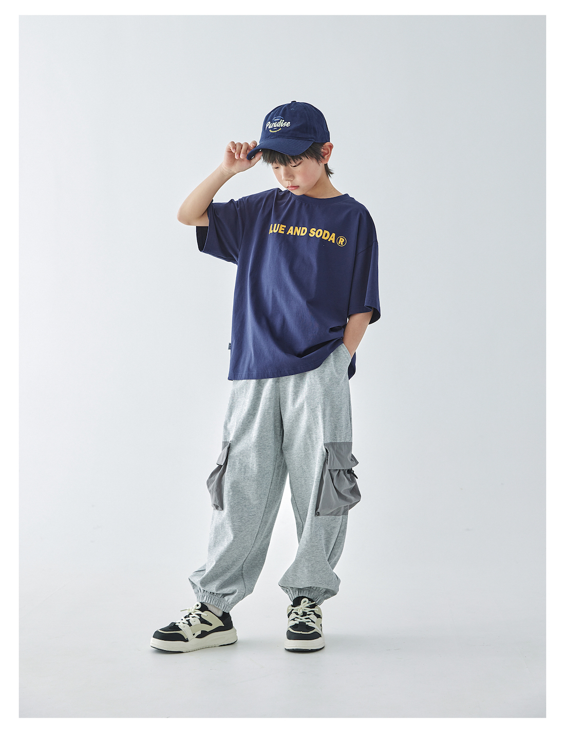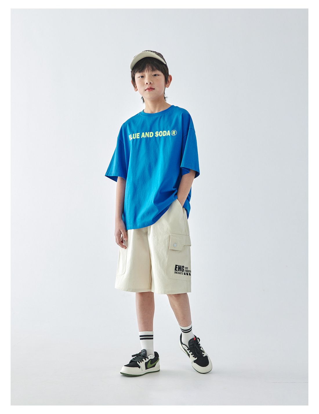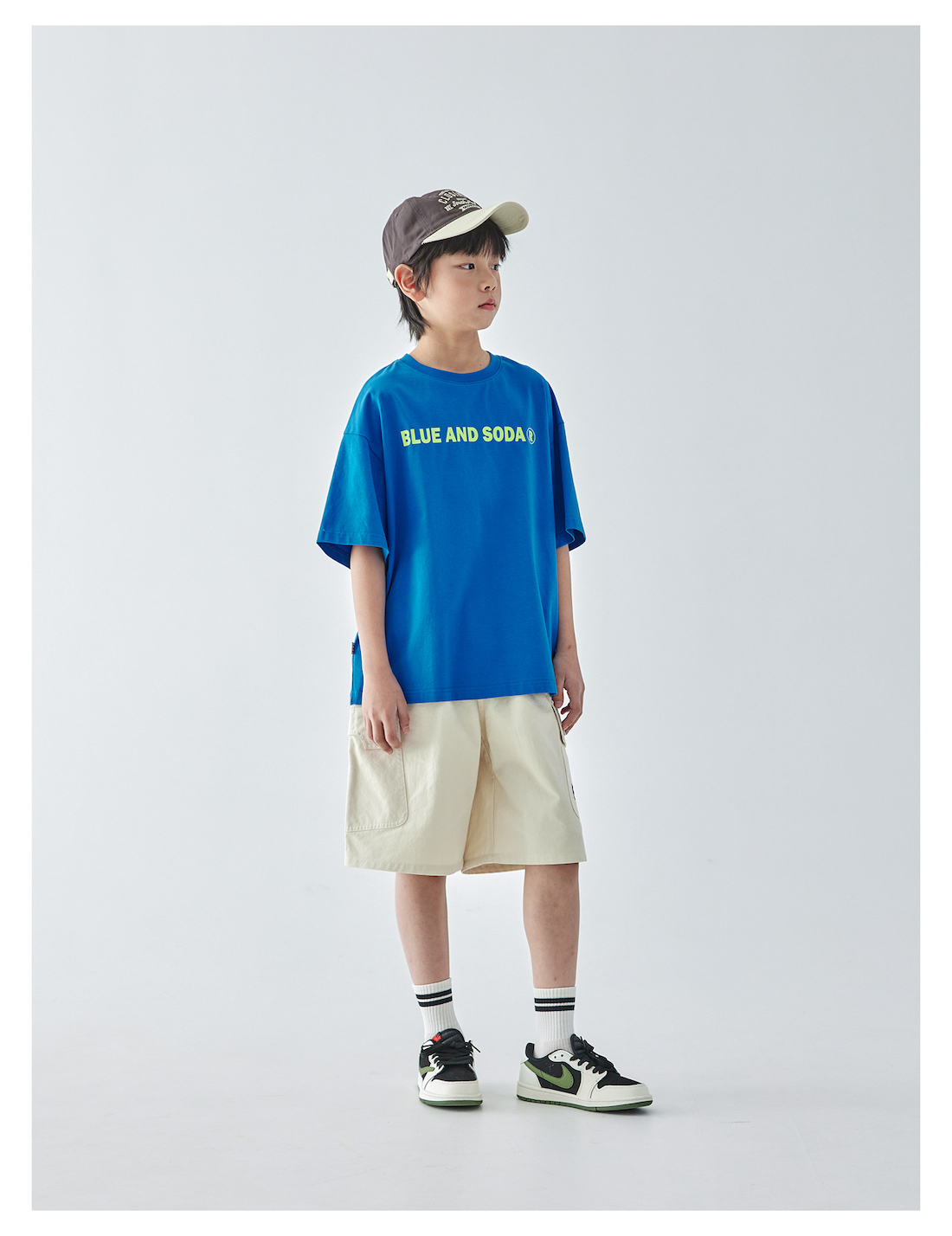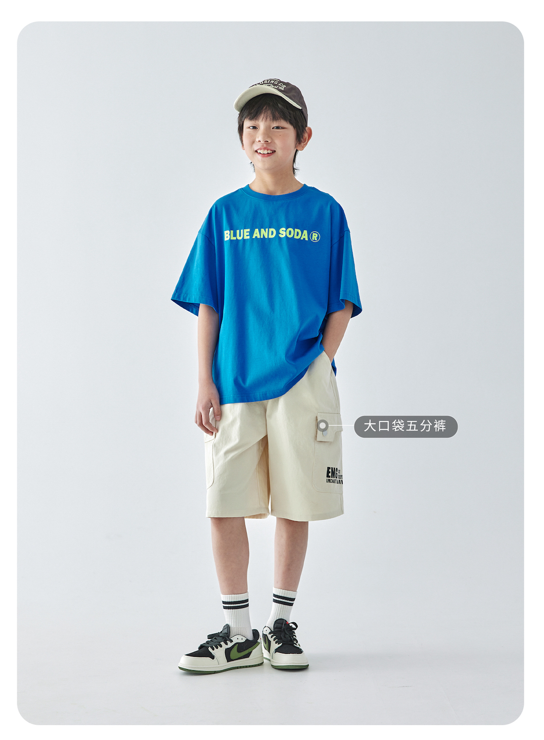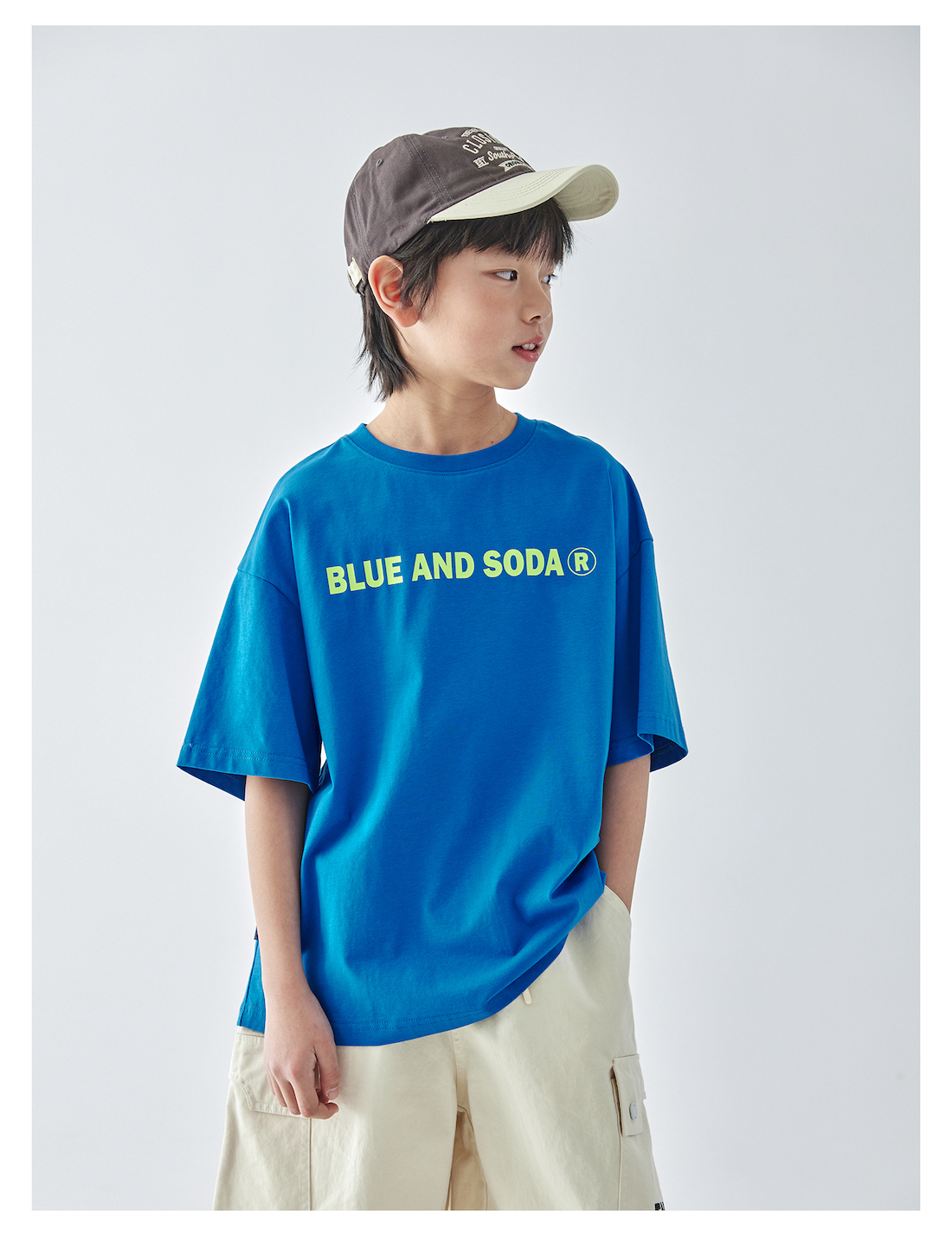 【代发】男童撞色LOGOT恤 蓝汽水简约字母印花短袖夏季上衣藏青/白色/粉色/蓝色