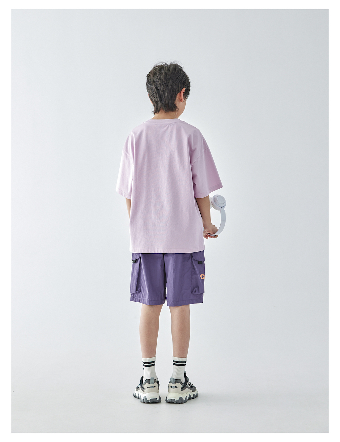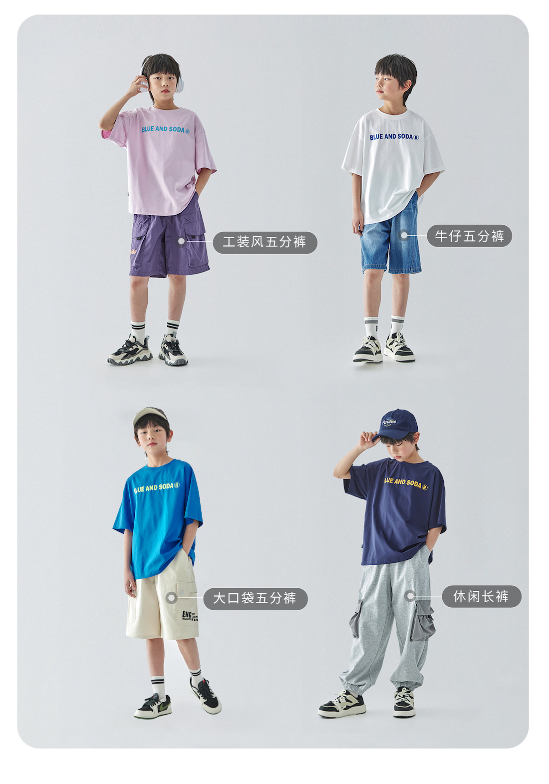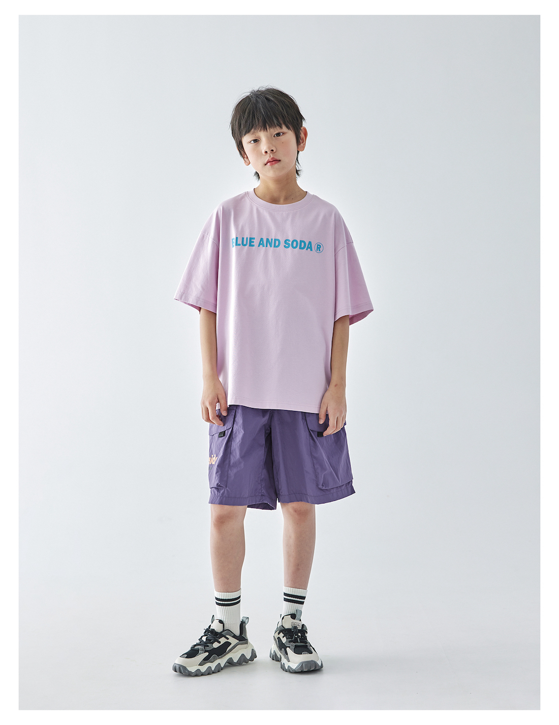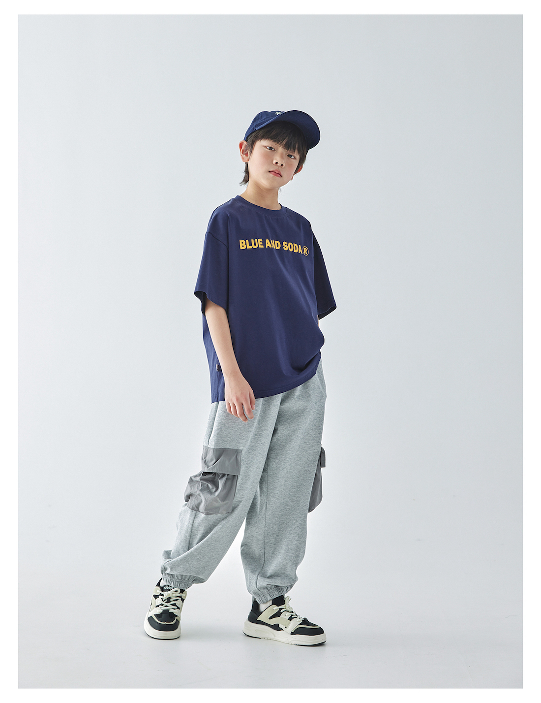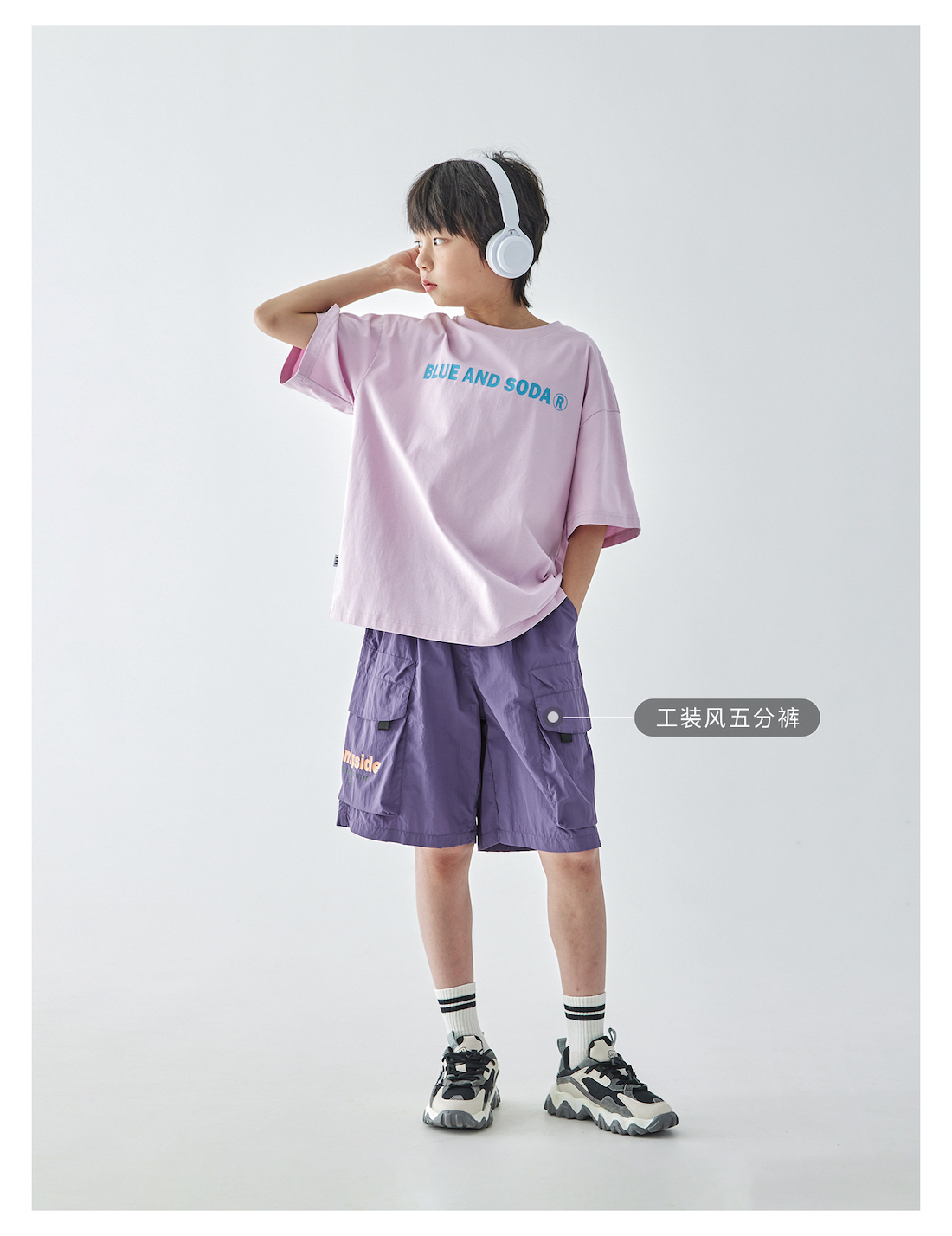 【代发】男童撞色LOGOT恤 蓝汽水简约字母印花短袖夏季上衣藏青/白色/粉色/蓝色