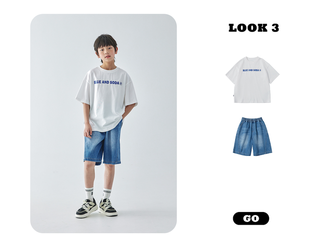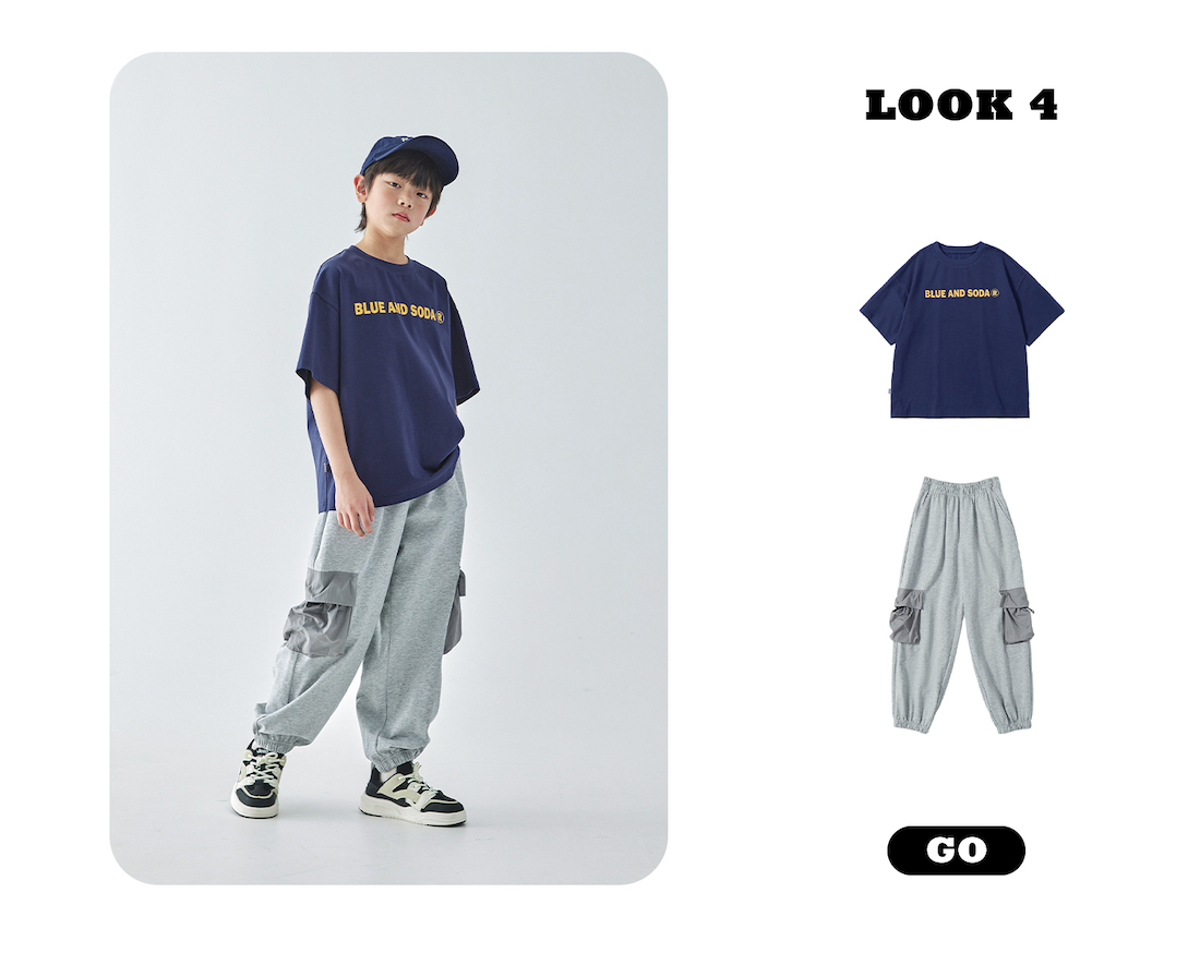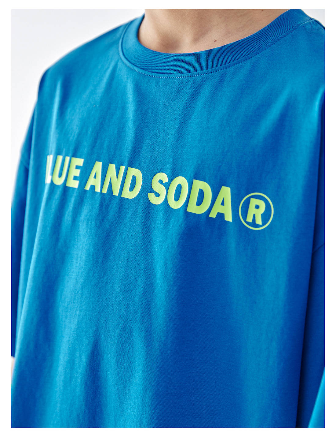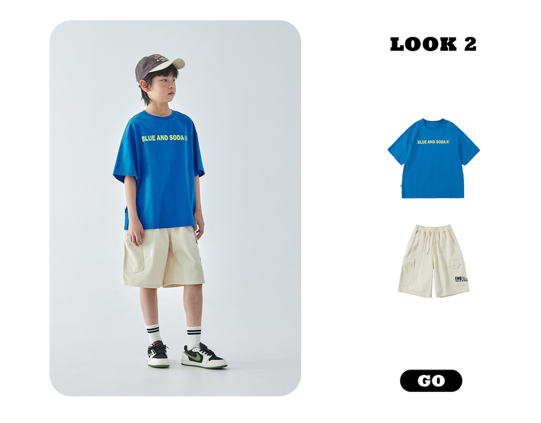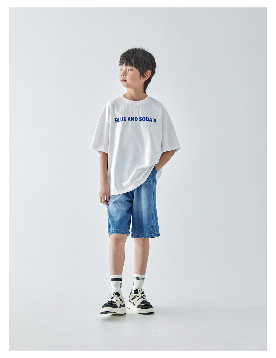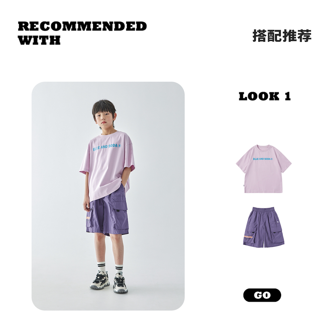 【代发】男童撞色LOGOT恤 蓝汽水简约字母印花短袖夏季上衣藏青/白色/粉色/蓝色