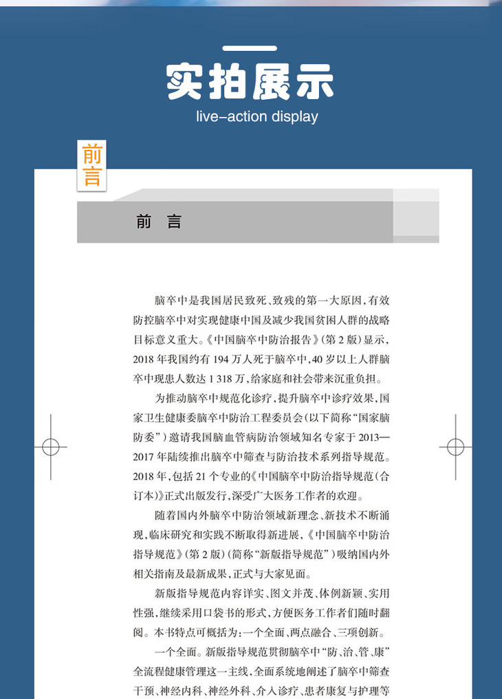《脑卒中防治指导规范(第2版)》是内容涉及脑卒中不同病种、诊疗技术、相关学科内容、管理流程等多个方面。撰写专家为目前国内神经病学、神经外科学、介入、神经康复学、内分泌学、放射影像学、超声医学、护理学、康复、中西医结合、流行病学等多学科、多领域的知名专家,专家组经过多次讨论,整合国内外各相关指南及进展,系统完成修订。《脑卒中防治指导规范》*一版后发行后,为我国各级医生和医疗卫生机构开展脑卒中筛查与防治工作提供技术帮助,深受广大临床医务工作者,尤其是临床一线医生的欢迎。值得从事脑卒中防治事业的医务工作者和管理者阅读和学。