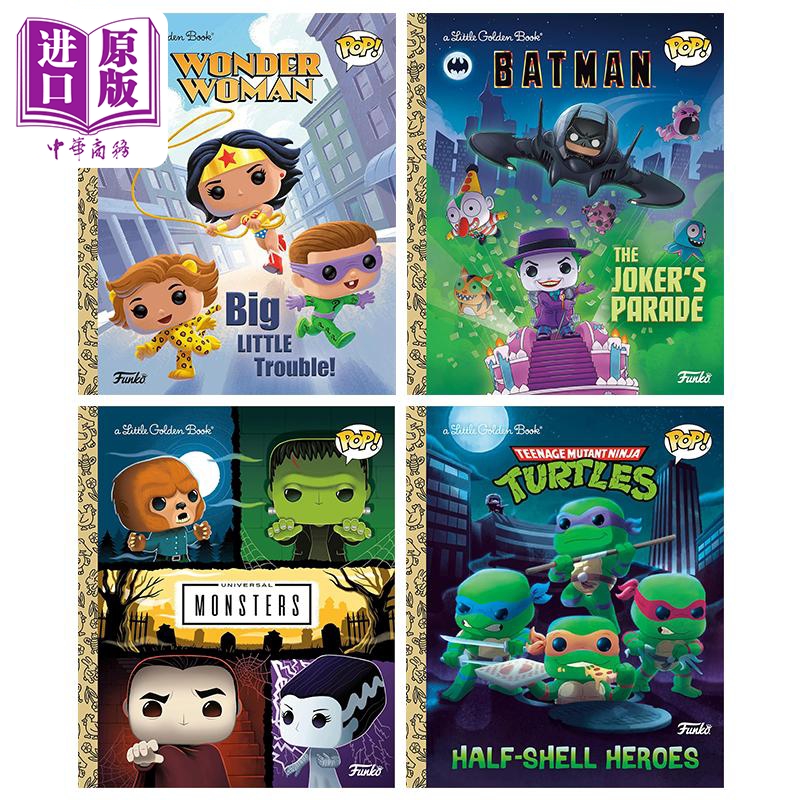 【中商原版】Funko Pop英文原版大眼仔系列小金书4册 Little Golden Book 蝙蝠侠大战小丑DC Batman 神奇女侠 忍者神龟Ninja