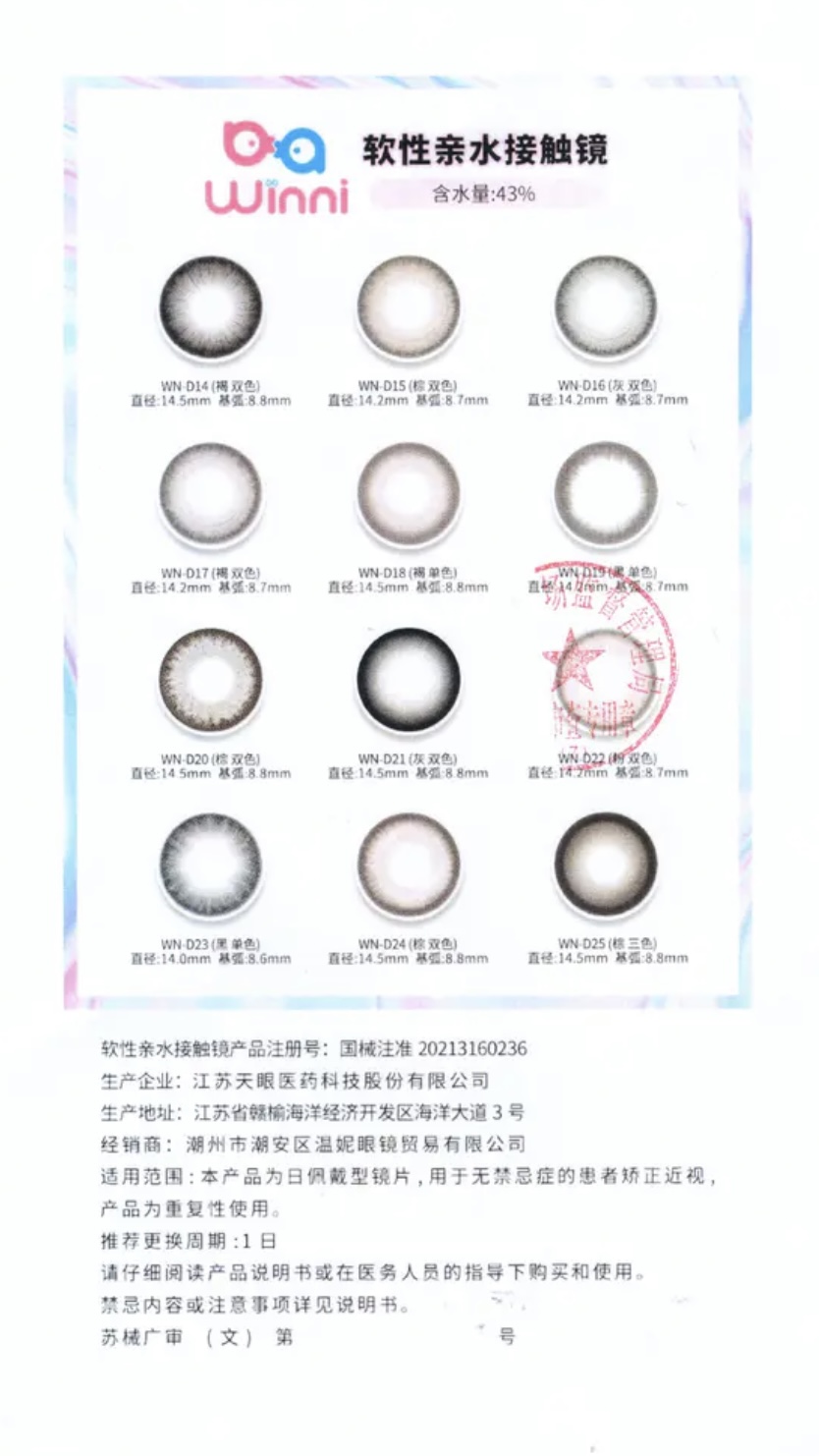 winni日抛 D29银光海星 14.5mm 一盒十片 日抛无售后!! 非离子 黑灰