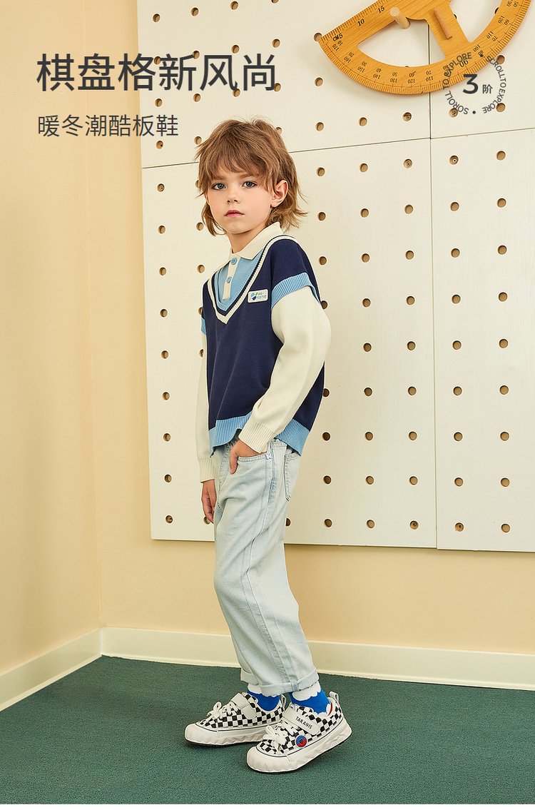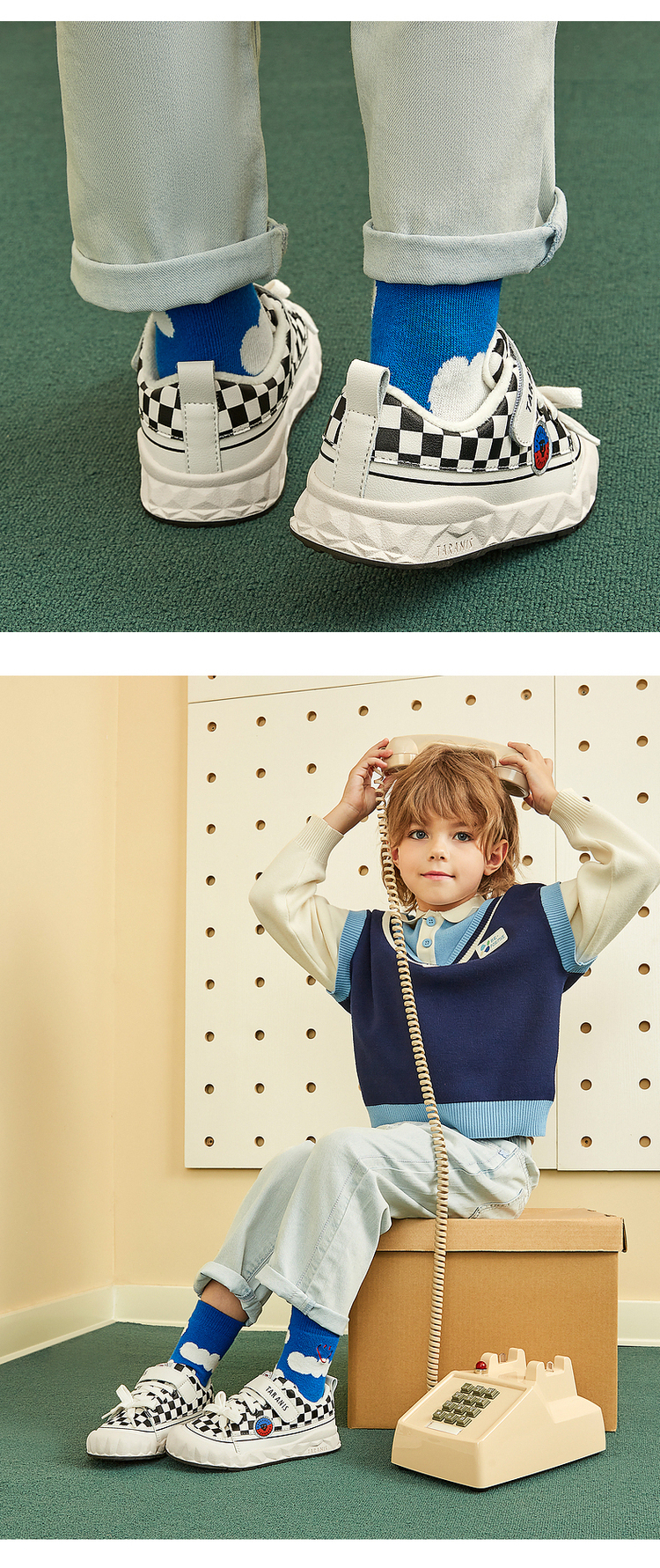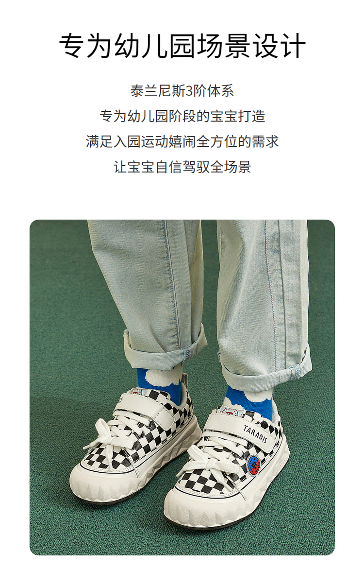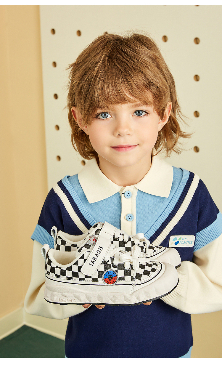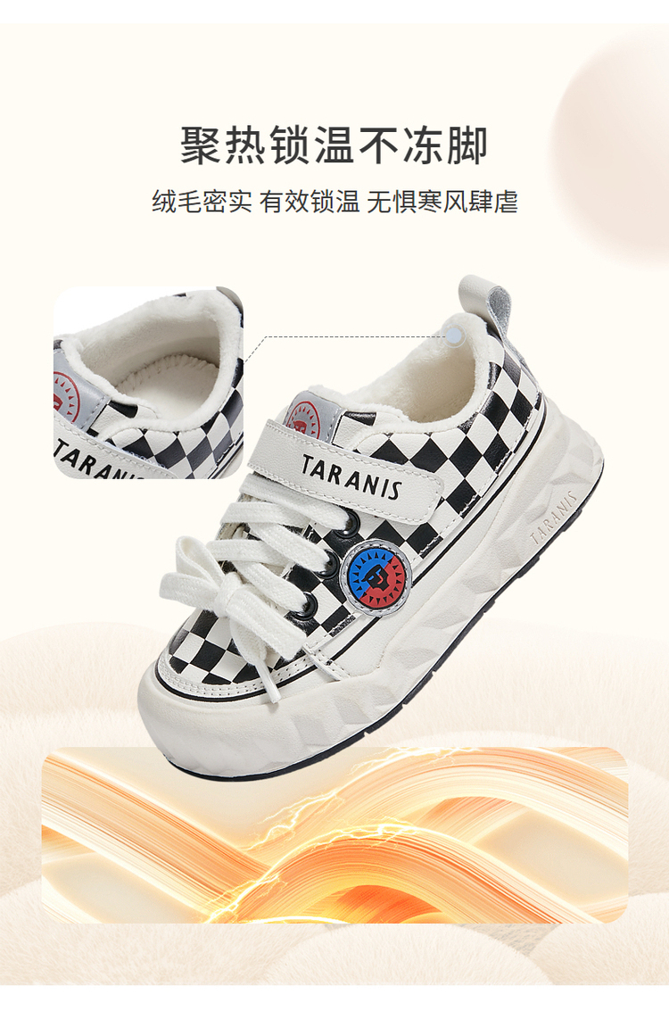 泰兰尼斯小童段冬款加绒棋盘格运动板鞋T02X3D3280