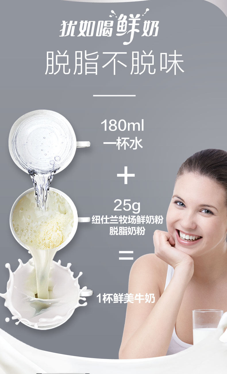 纽仕兰脱脂鲜奶粉1000g/025772 学生成人中老年早餐