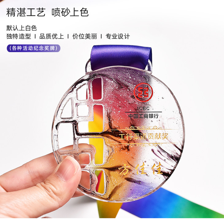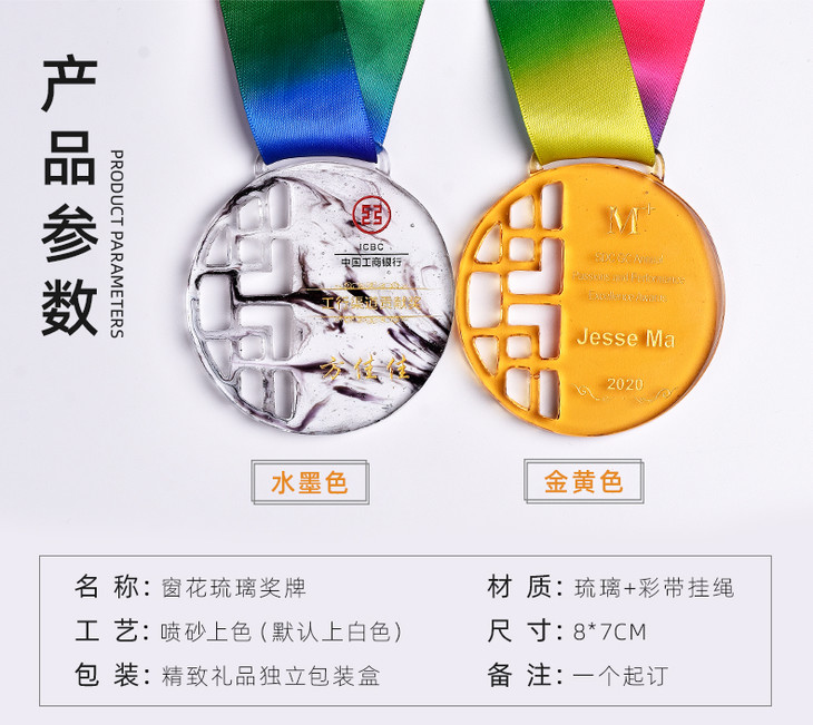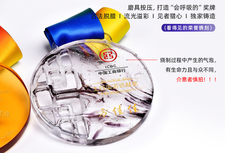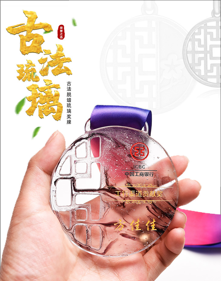 奖牌定制定做荣誉纪念品优秀员工奖章比赛奖品中国风琉璃刻字制作