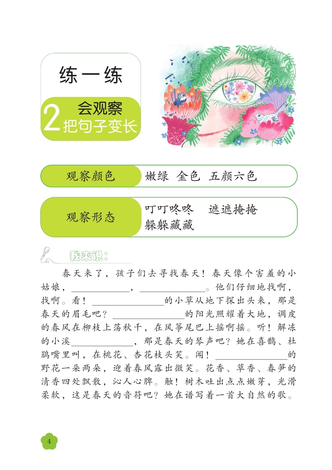 立小言: 仔细观察图片中事物或景物的颜色、形状,就能让句子变得更加生动,读起来也很真实。