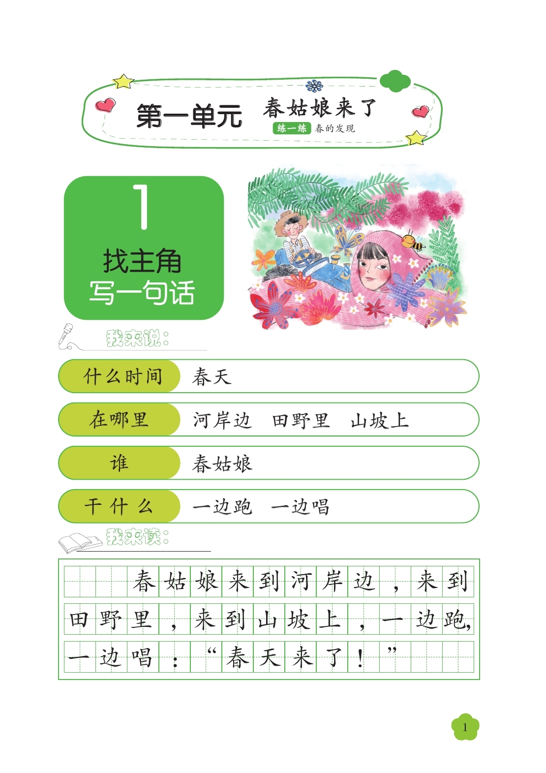 立小言: 嗯 , 我观察了第一单元的图,发现主角是春姑娘。