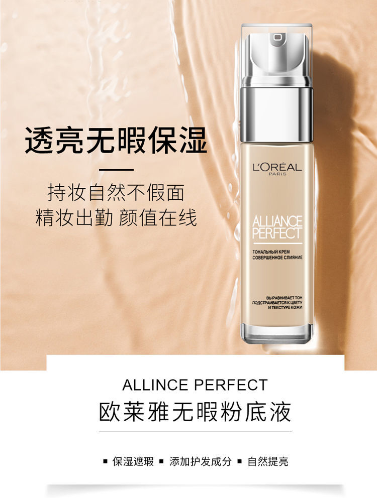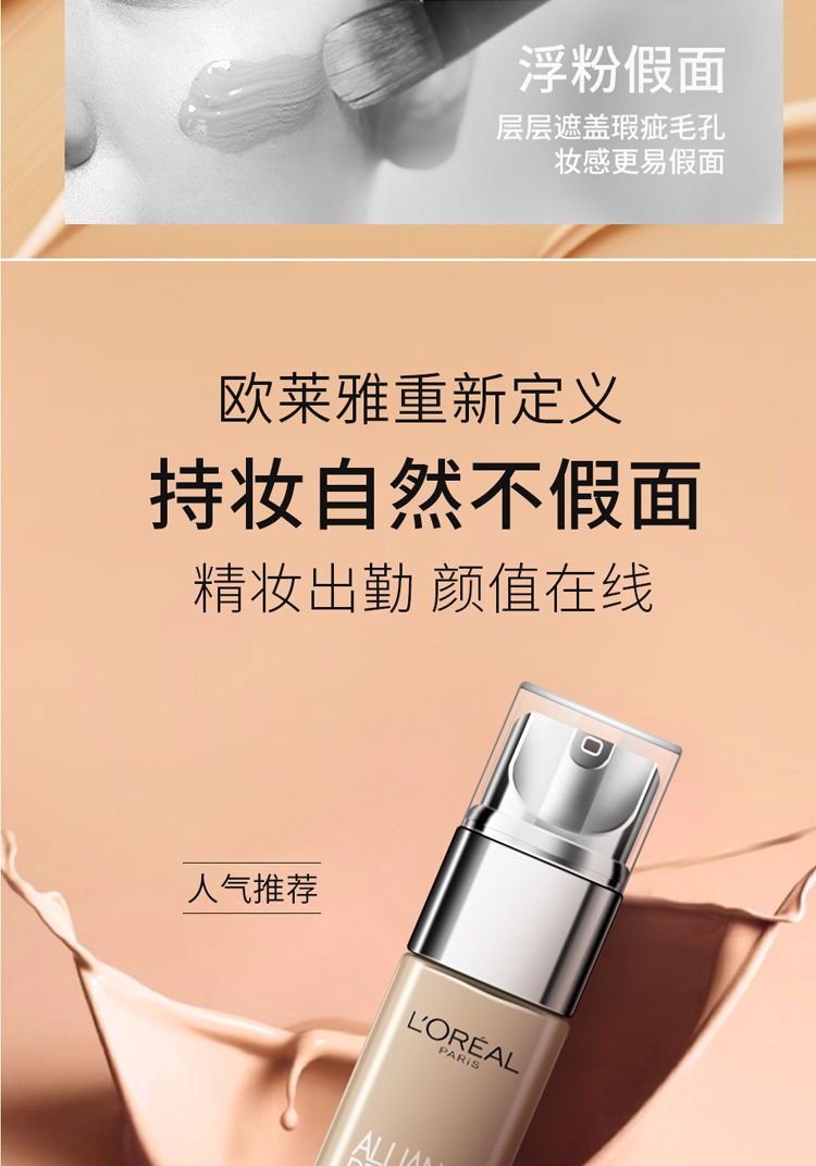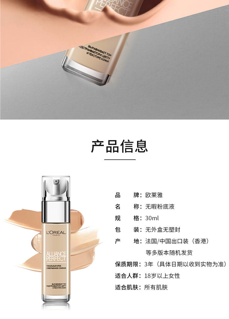 【预售 急单慎拍】欧莱雅绝配无瑕粉底液30ML 保湿遮瑕粉底轻薄滋润干皮可用