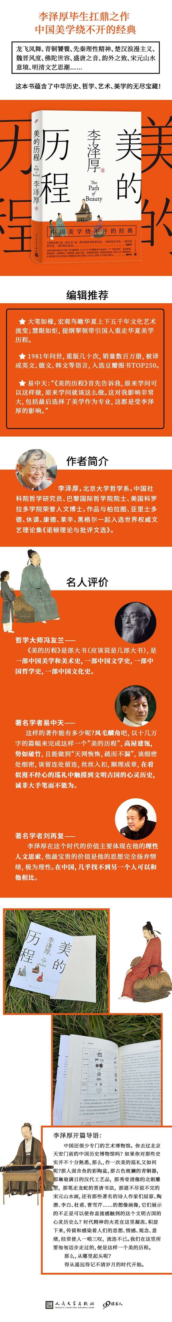 《美的历程》从宏观角度鸟瞰中国数千年的艺术、文学,并作了描述概括和整体美学把握。其中提出了诸如原始远古艺术的“龙飞凤舞”和殷周青铜器艺术的“狞厉的美”,先秦理性精神的“儒道互补”,楚辞、汉赋、汉画像石之“浪漫主义”,“人的觉醒”的魏晋风度,六朝、唐、宋佛像雕塑,宋元山水绘画以及诗、词、曲各具审美三品类,明清时期小说、戏曲由浪漫而感伤而现实之变迁等等重要观念,多发前人之所未发。