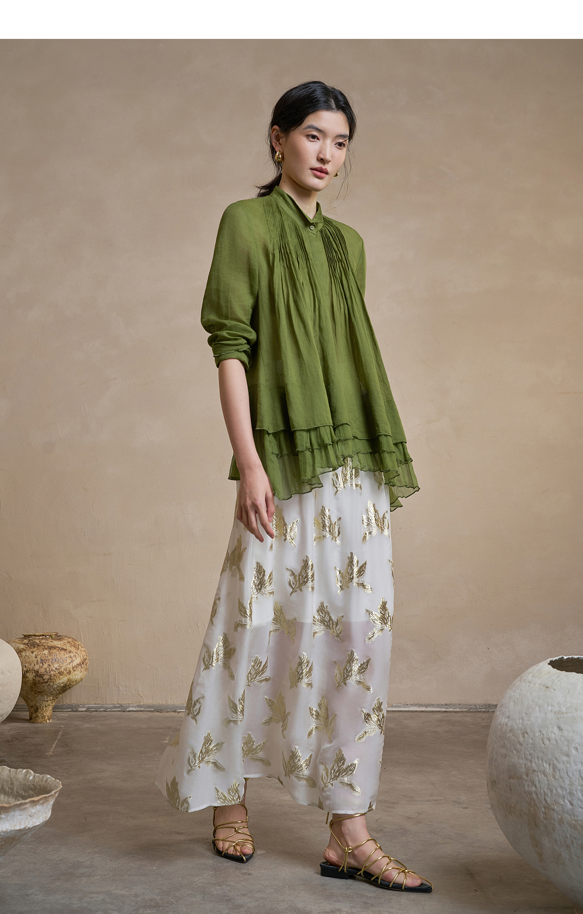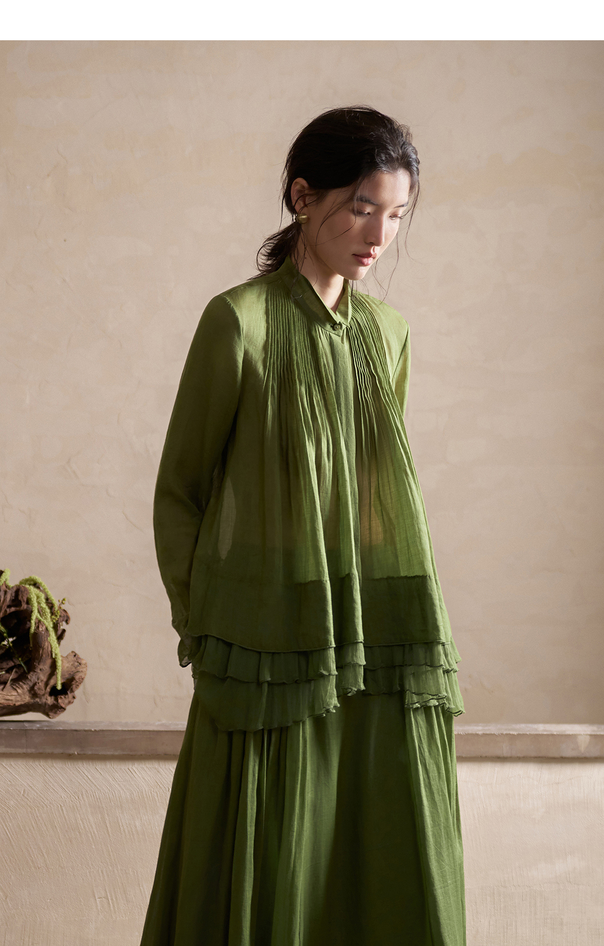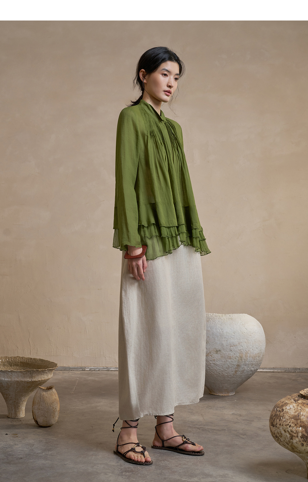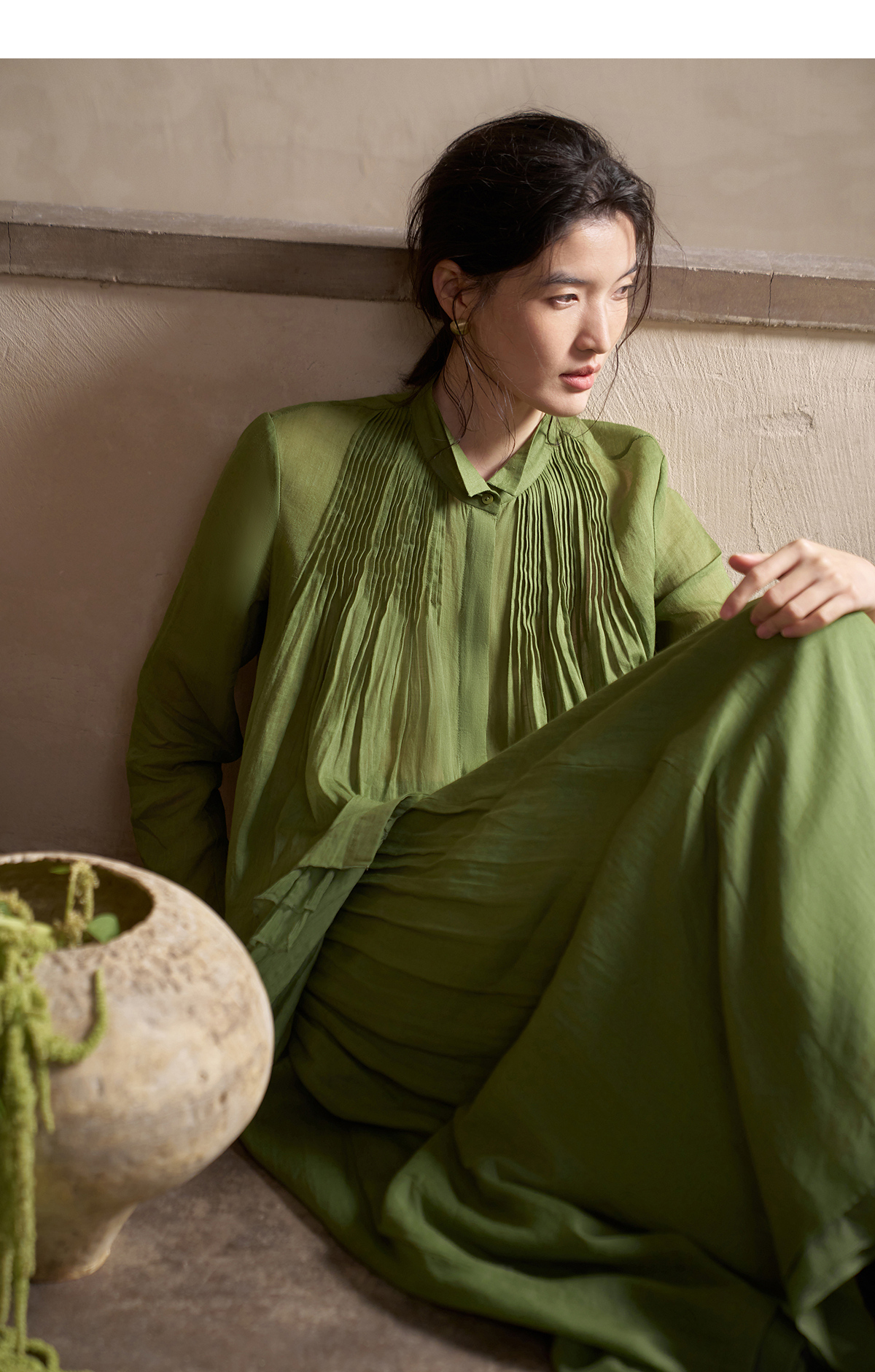 【林栖设计小店】 山谷绿意|苎麻衬衣褶皱真丝肌理感2026早春新款衬衫女1961105