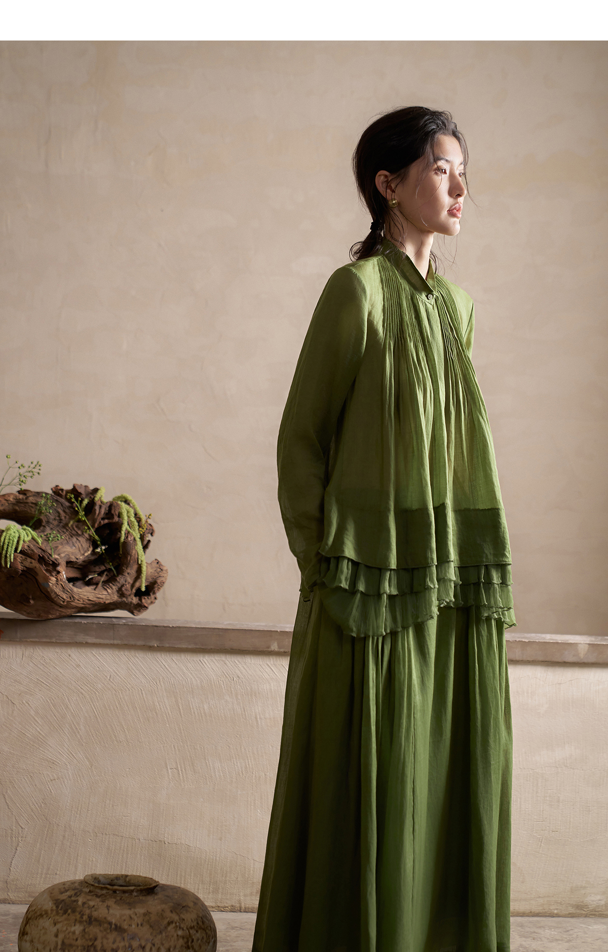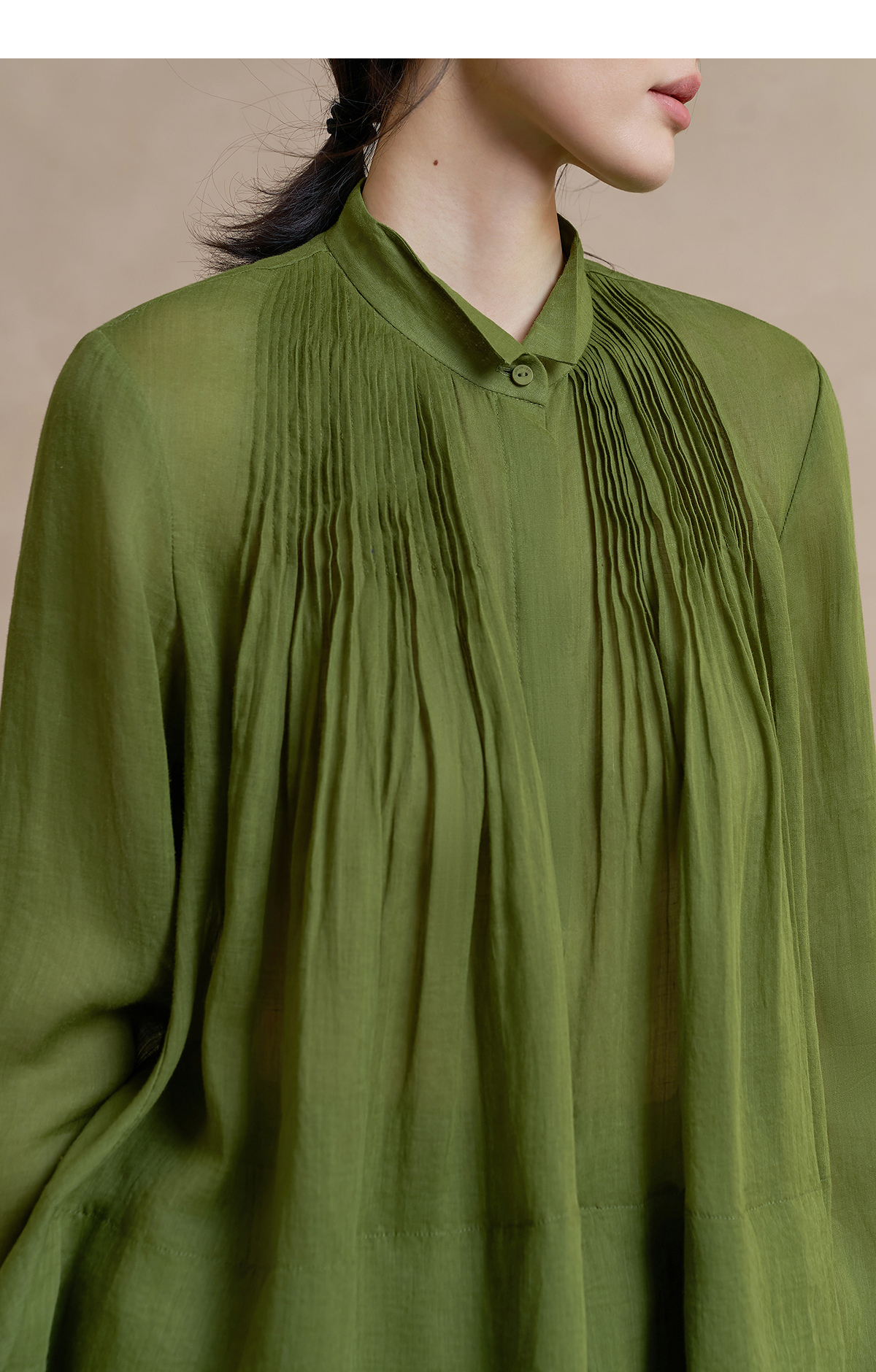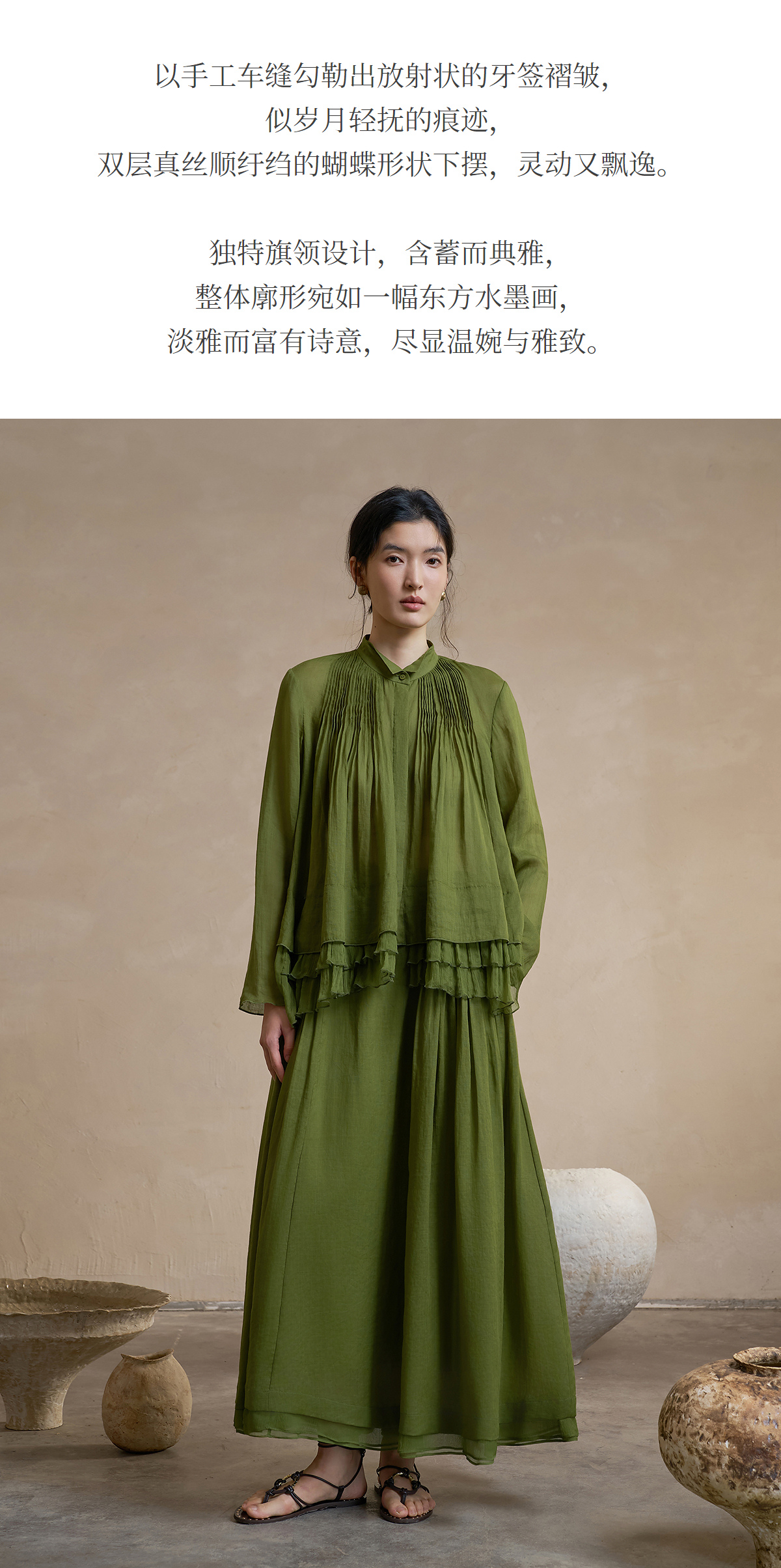 【林栖设计小店】 山谷绿意|苎麻衬衣褶皱真丝肌理感2026早春新款衬衫女1961105