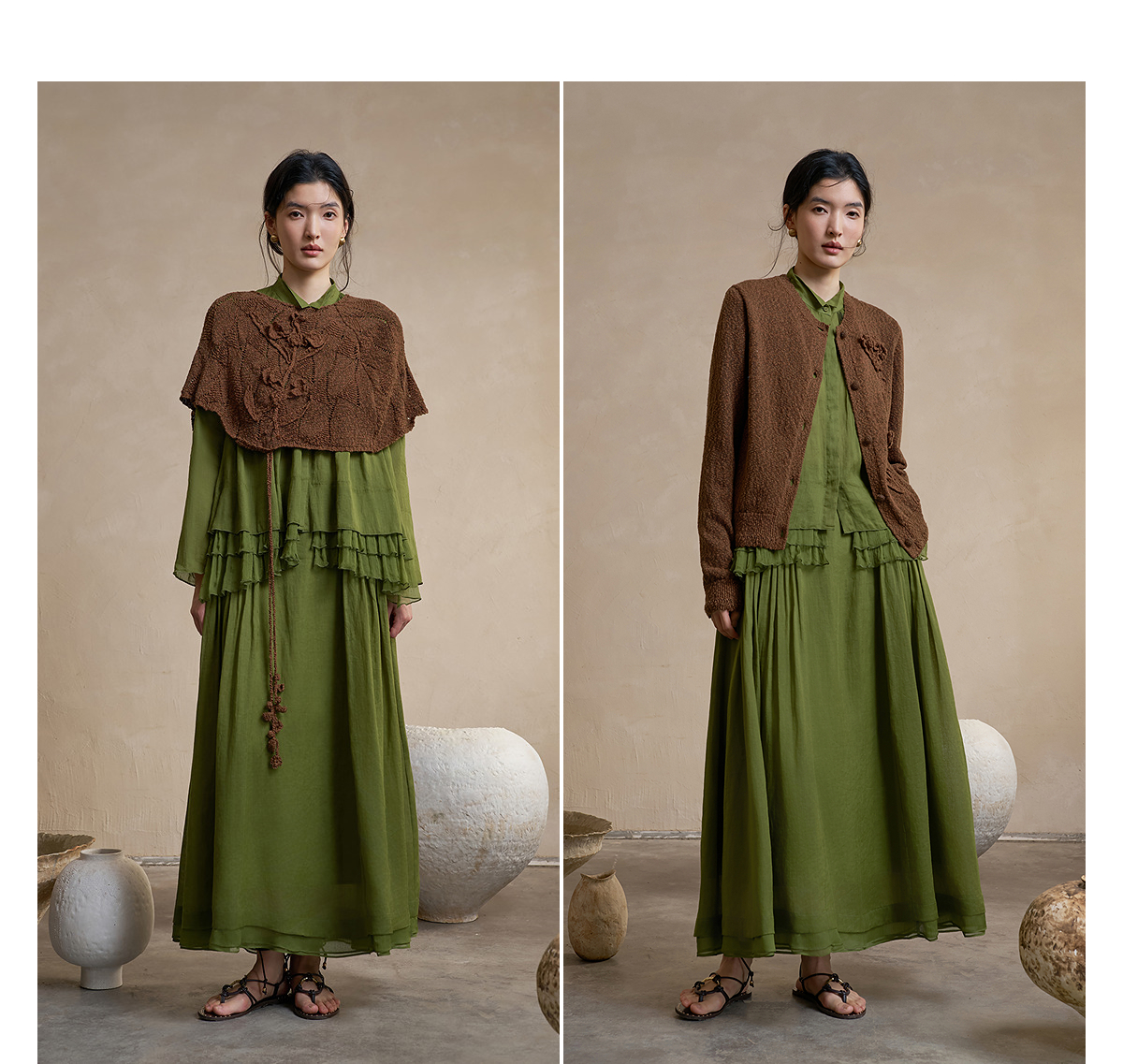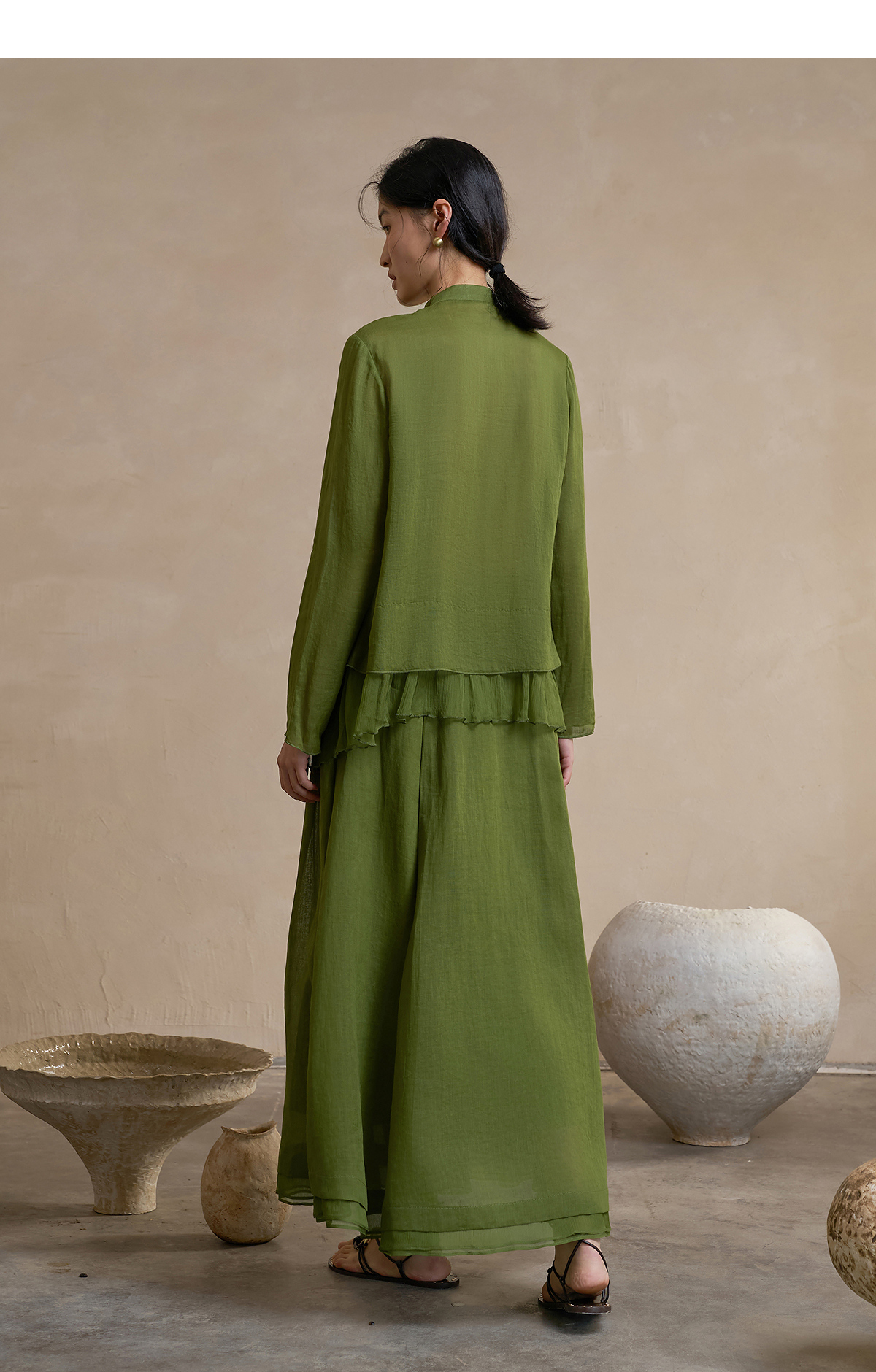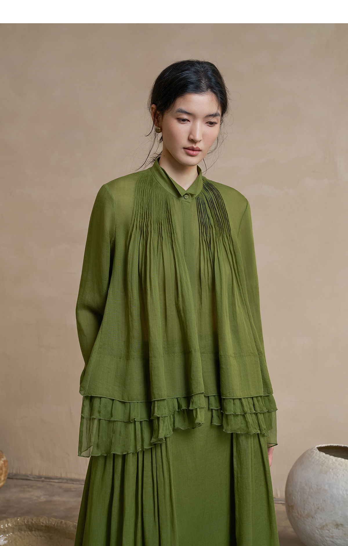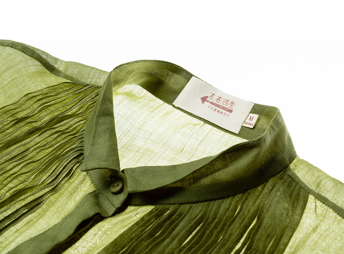 【林栖设计小店】 山谷绿意|苎麻衬衣褶皱真丝肌理感2026早春新款衬衫女1961105