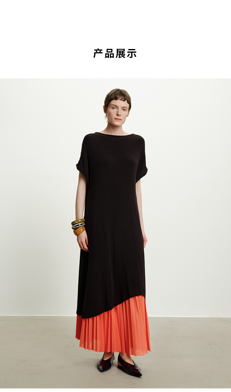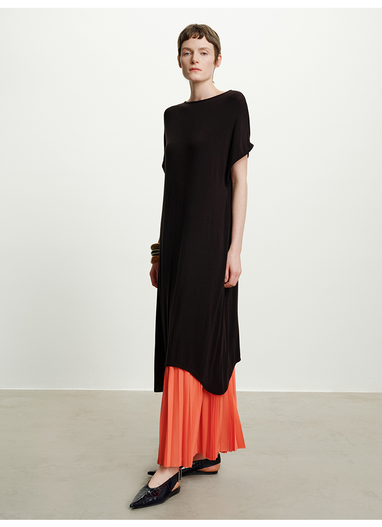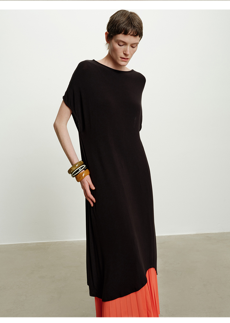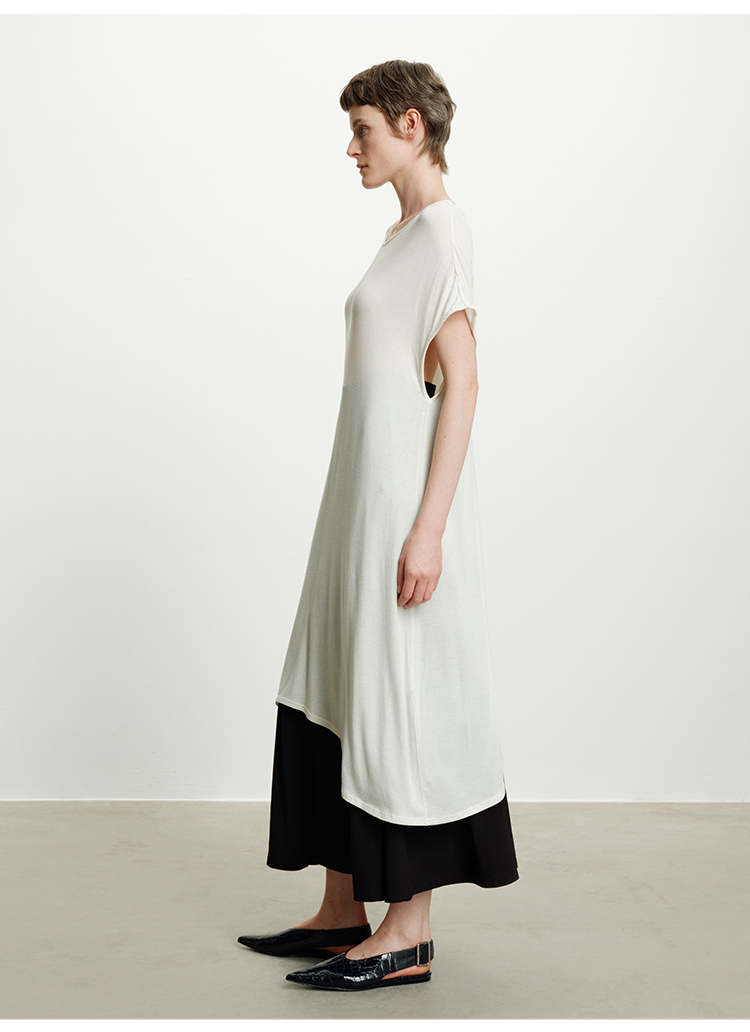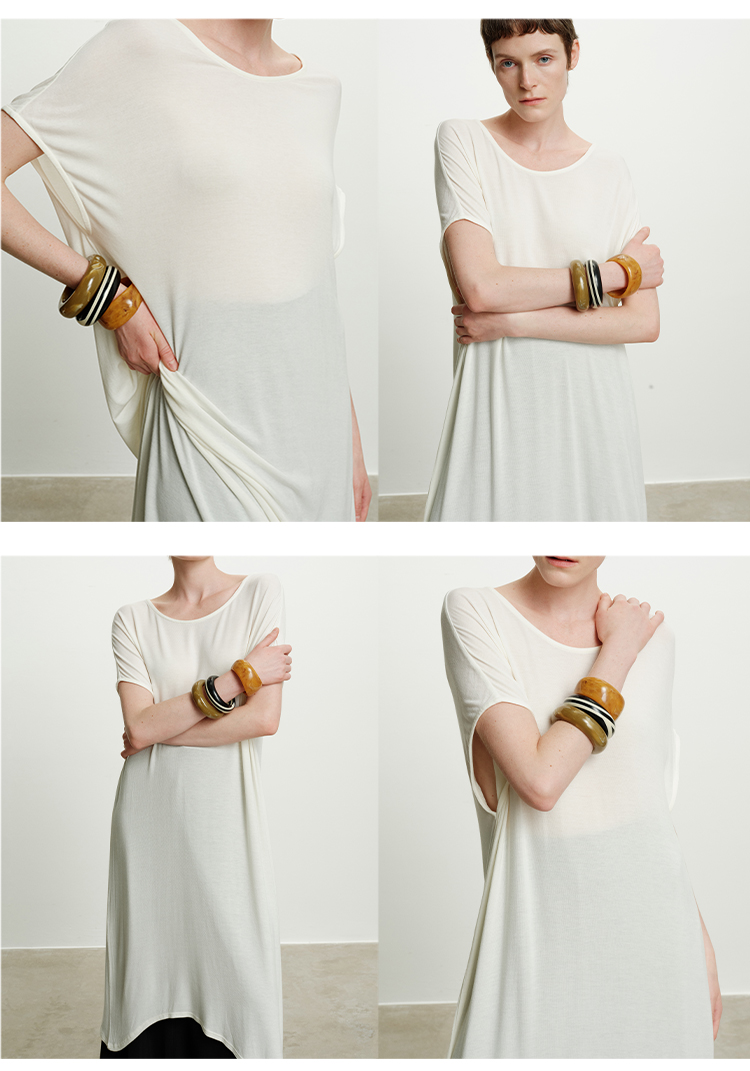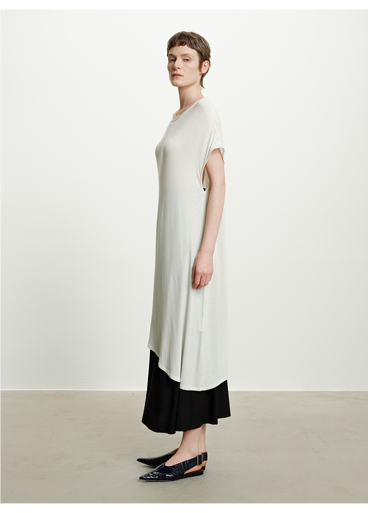 HIDEMI 度假系列极简圆领廓形云朵薄针织T恤连衣裙 黑色/白色/豆乳色