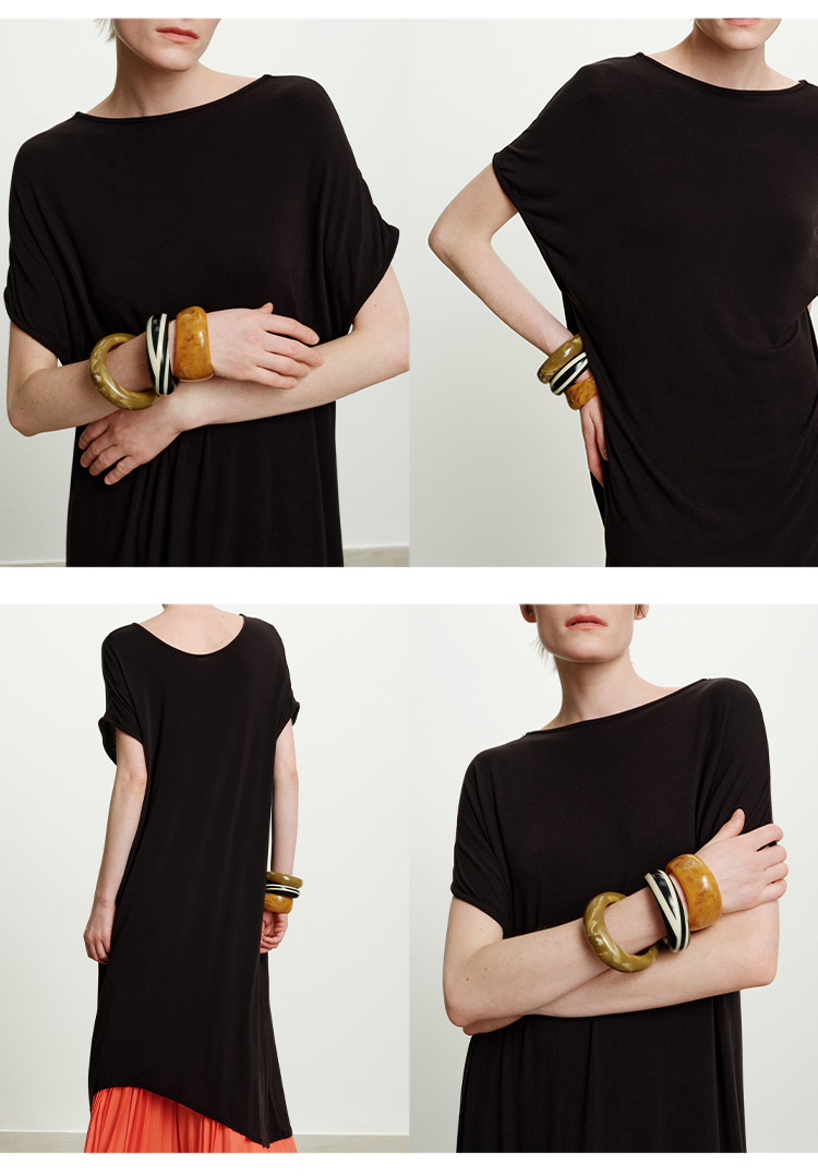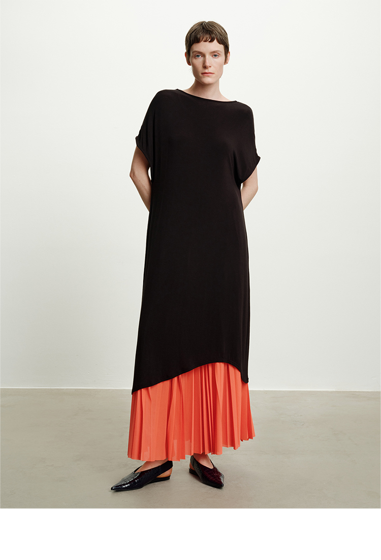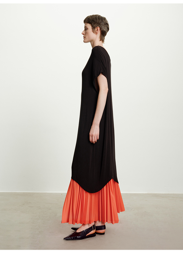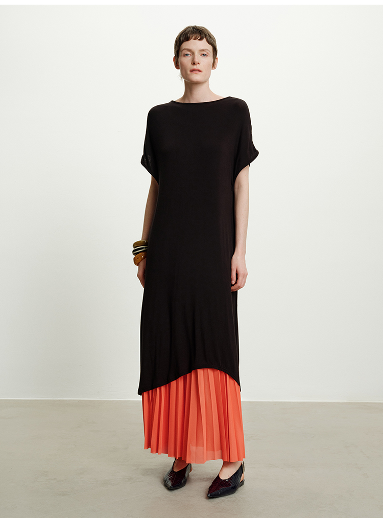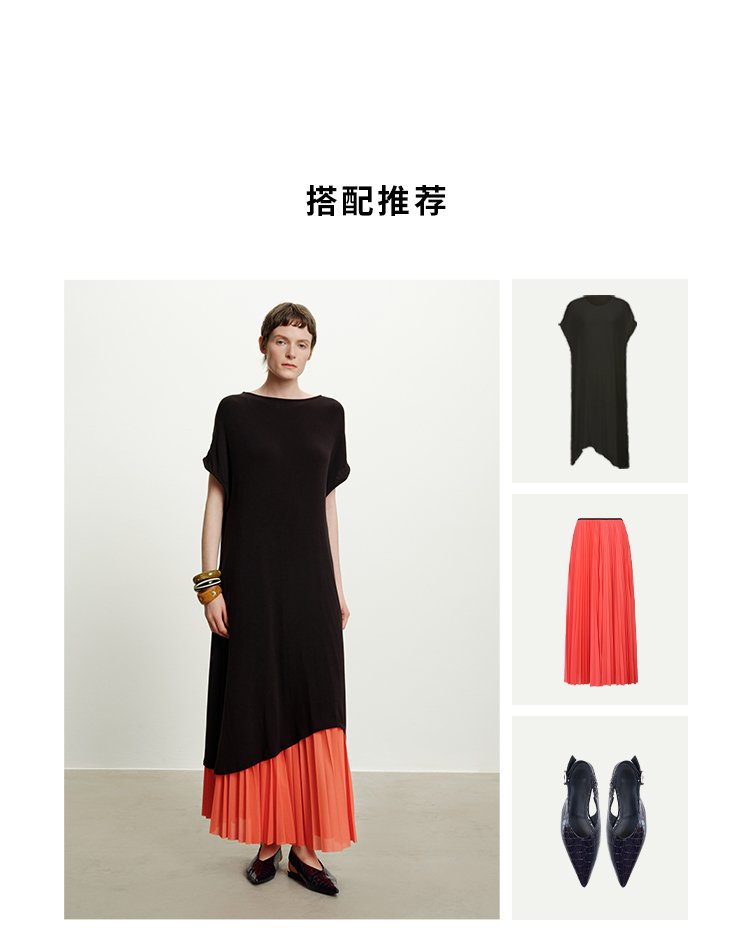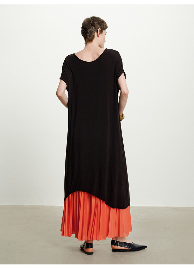 HIDEMI 度假系列极简圆领廓形云朵薄针织T恤连衣裙 黑色/白色/豆乳色