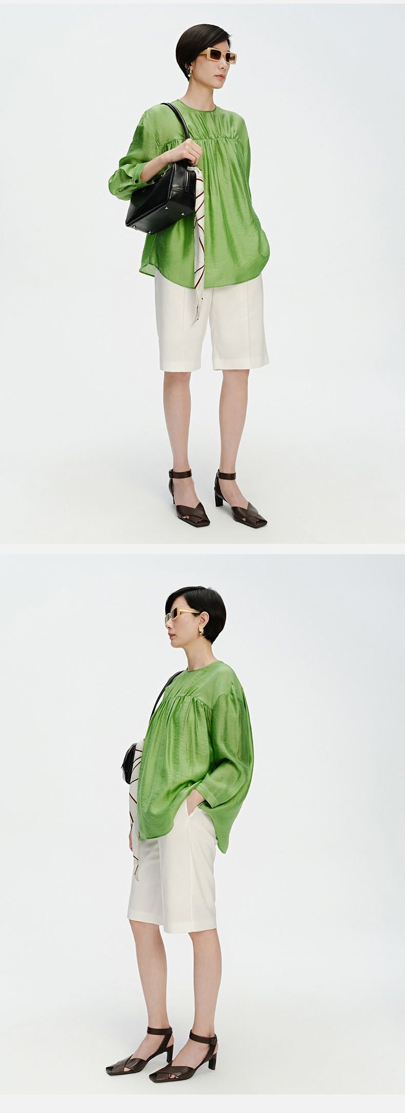 HIDEMI花苞几何设计感衬衫 白色/藏蓝色