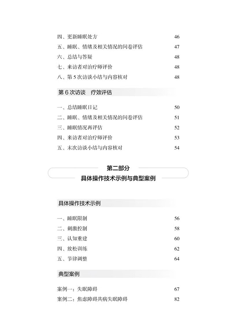 本手册慢性失眠一线疗法失眠认知行为治疗(CBT-I),结合国内人群特点和国际标准,为失眠患者带来新希望。深度解析CBT-I五大 技术,精准针对失眠认知与行为根源,从根本解决睡眠问题。理论与实践结合,系统梳理CBT-I 技术,通过案例展示应用技巧,助力从业者应对复杂临床情境。针对药物依赖风险,提供非药物认知行为干预方案,帮助患者改善睡眠,减停镇静催眠药。通过标准化手册,降低CBT-I对治疗师和环境的高要求,打破疗程长、费用高的瓶颈,让更多失眠患者受益。