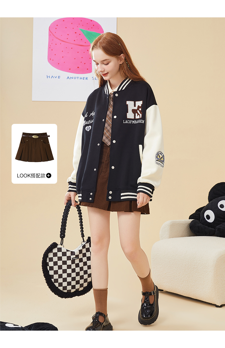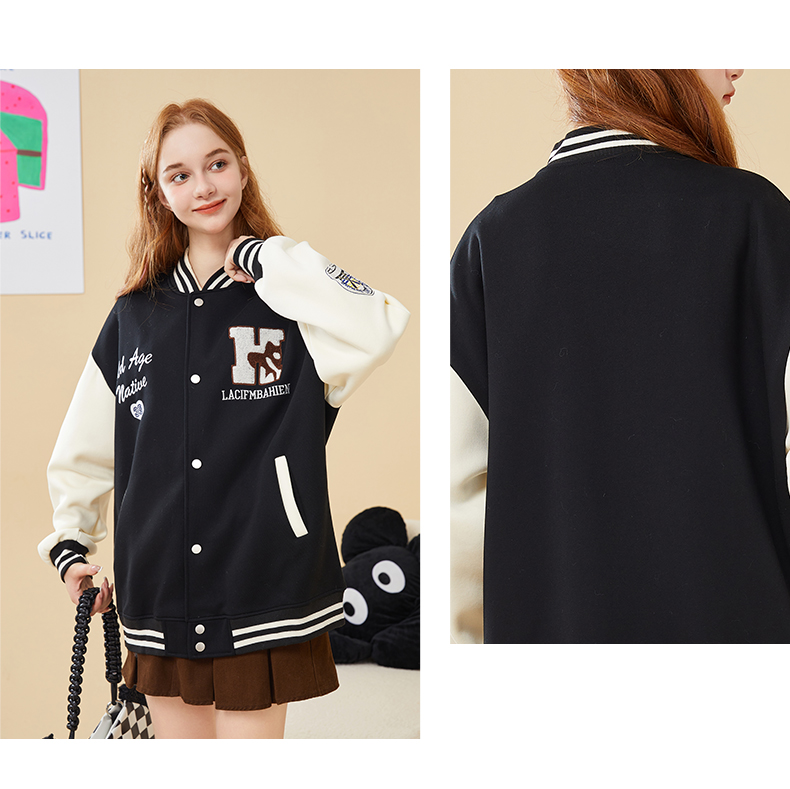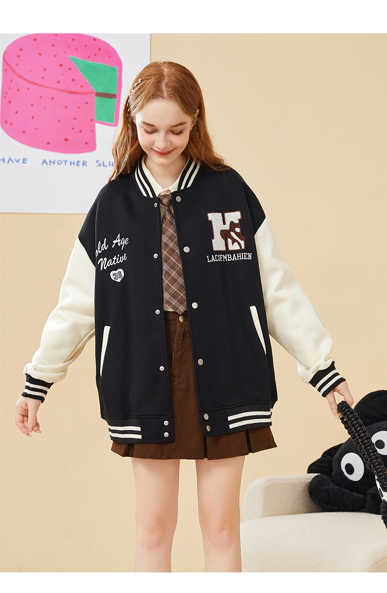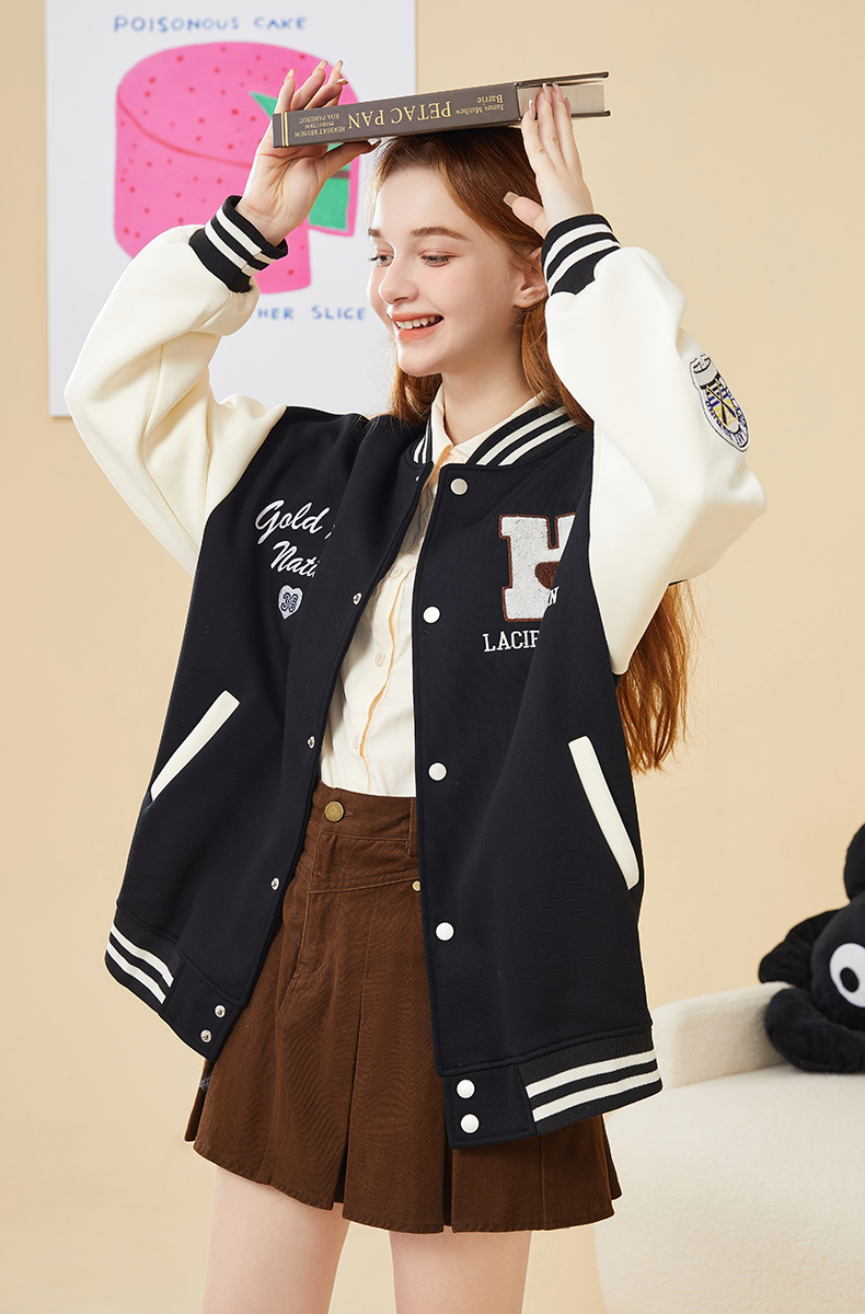 mc2加绒棒球领贴标款外套女装春秋新款美式复古学院风棒球服