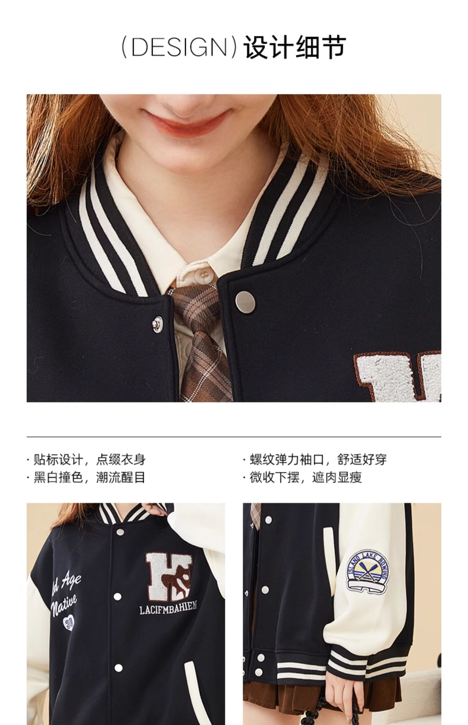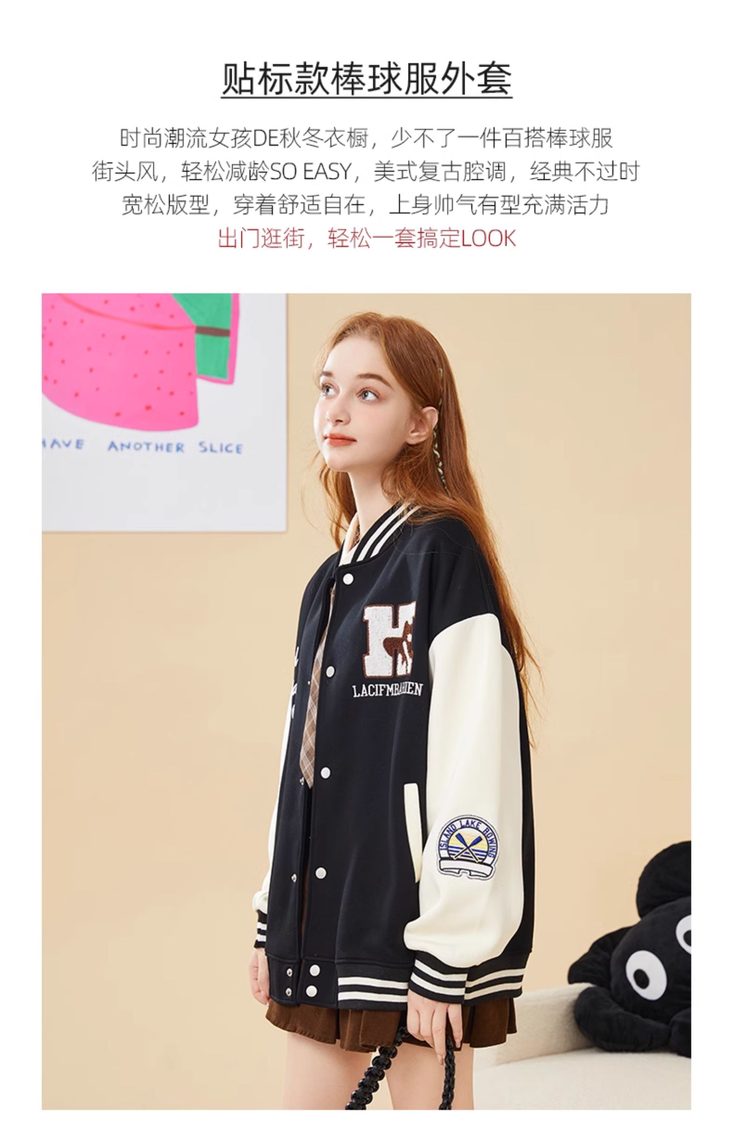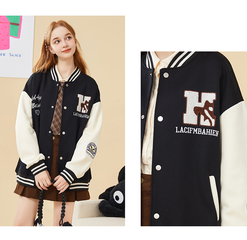 mc2加绒棒球领贴标款外套女装春秋新款美式复古学院风棒球服